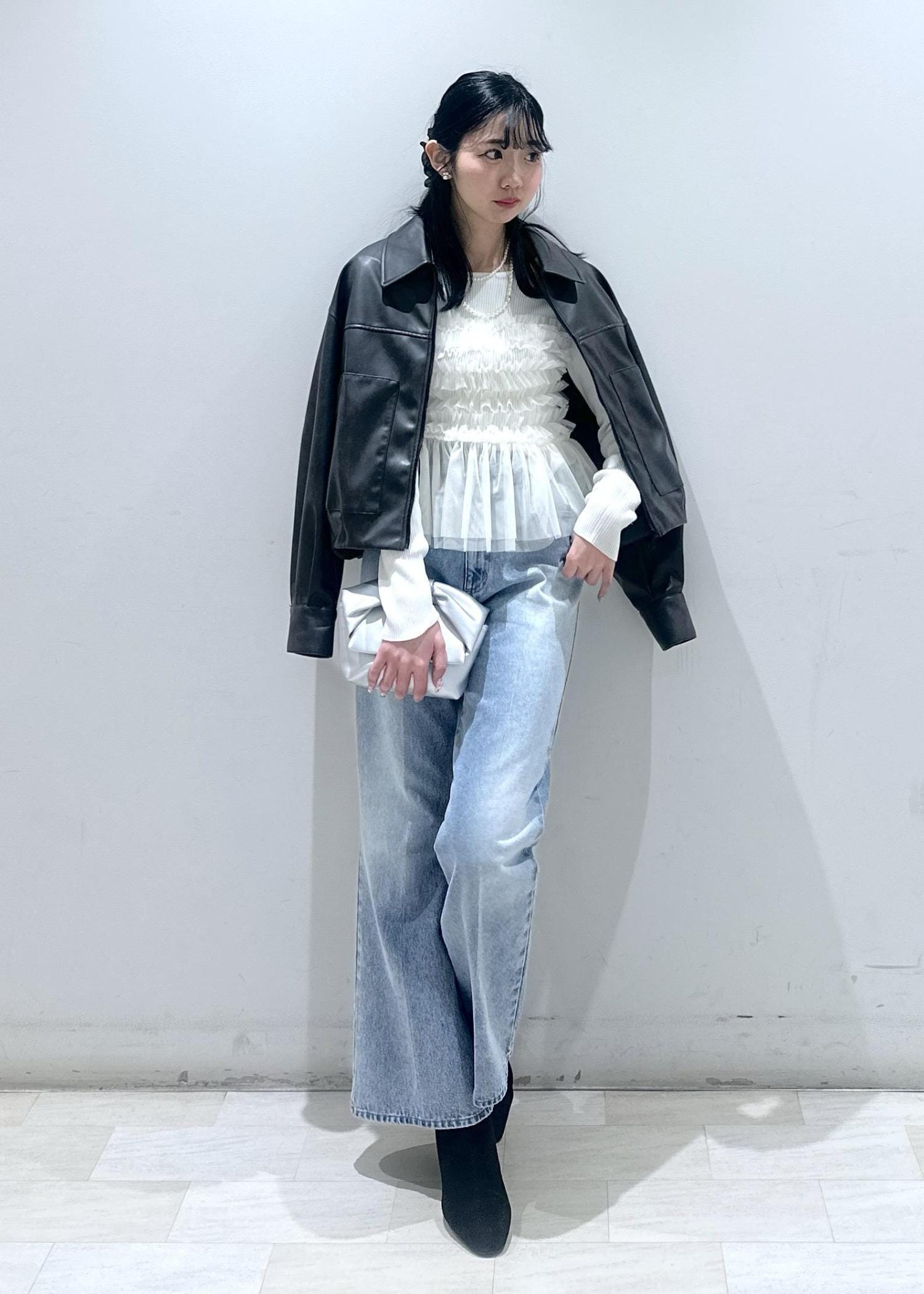ハイウエストで足首辺りぐらいの長さで地面につくことはなかったです。センタープレスが入っているので、縦を意識し脚長効果に見え、またフリンジの部分もとってもおしゃれで可愛いです。デニムの生地は厚すぎず薄すぎずちょうど良い生地感◎なんと言っても形が綺麗でお気に入りです。 -