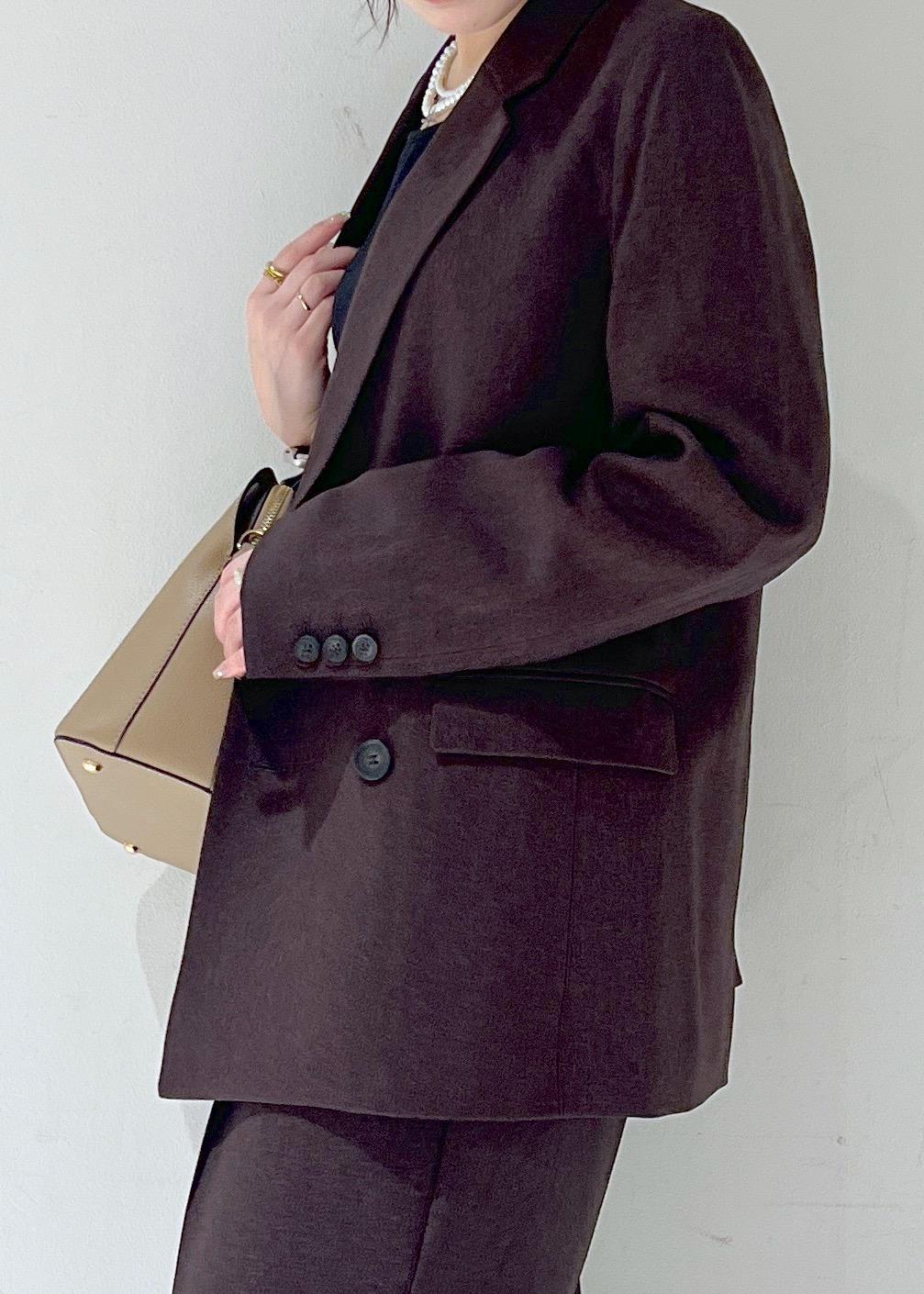 【美easy】ウーリッシュダブルブレストテーラードジャケット【セットアップ対応/洗える】