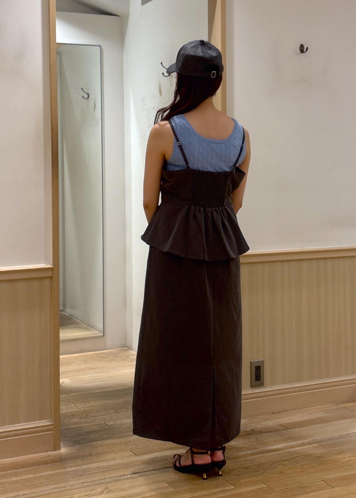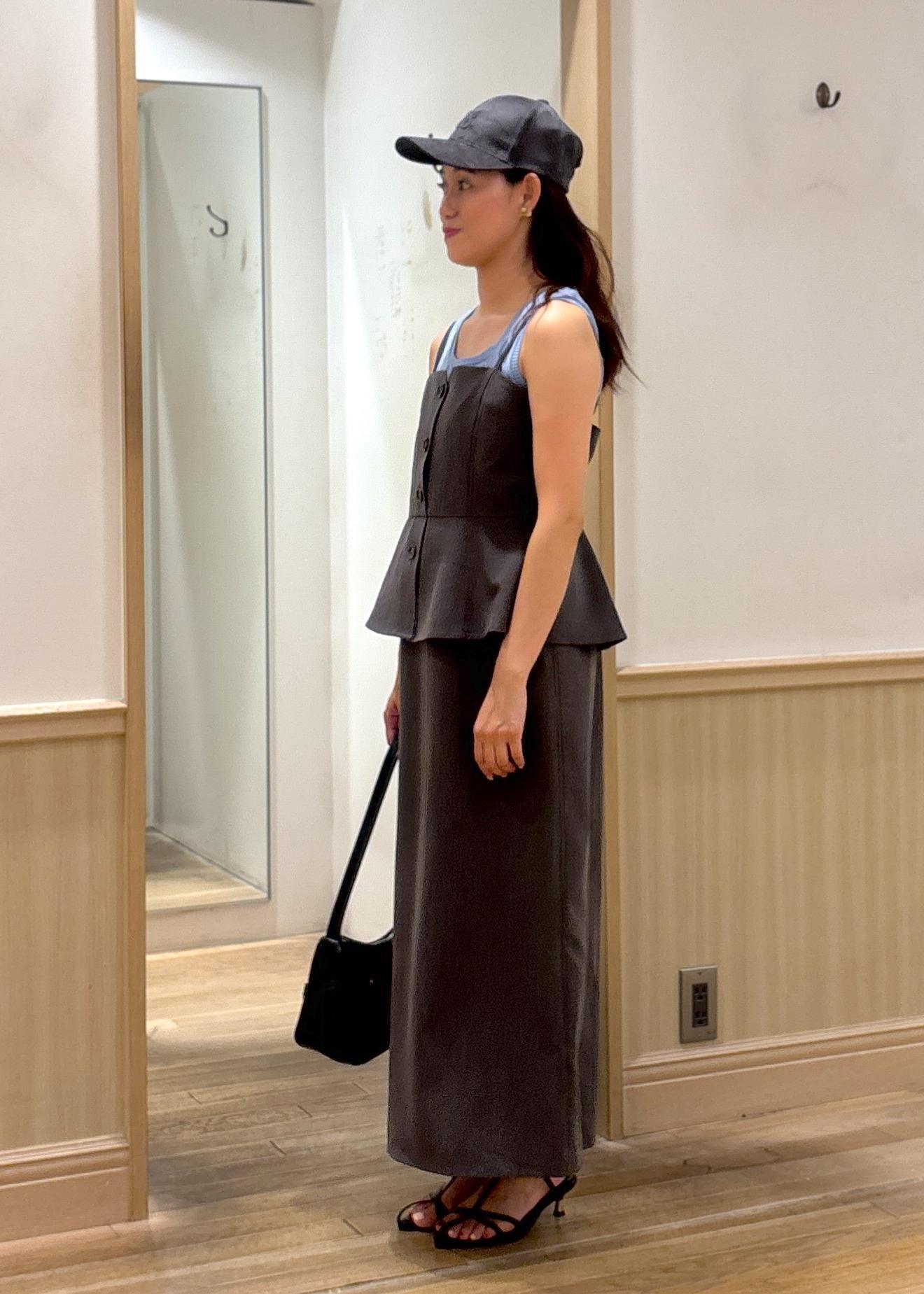 綺麗めなシルエットのワンピースを、キャップでスポーティーなスタイリングに仕上げました♪