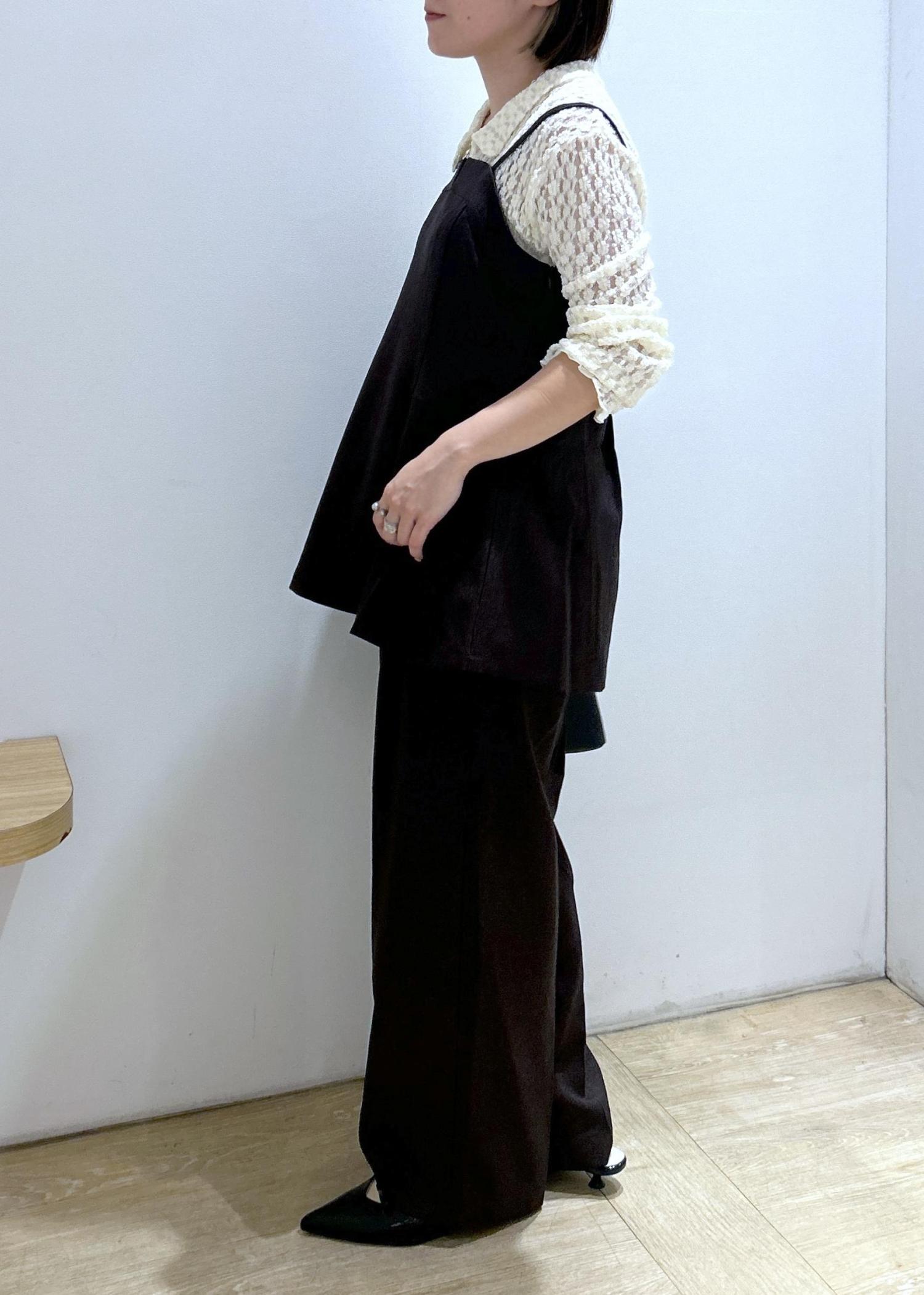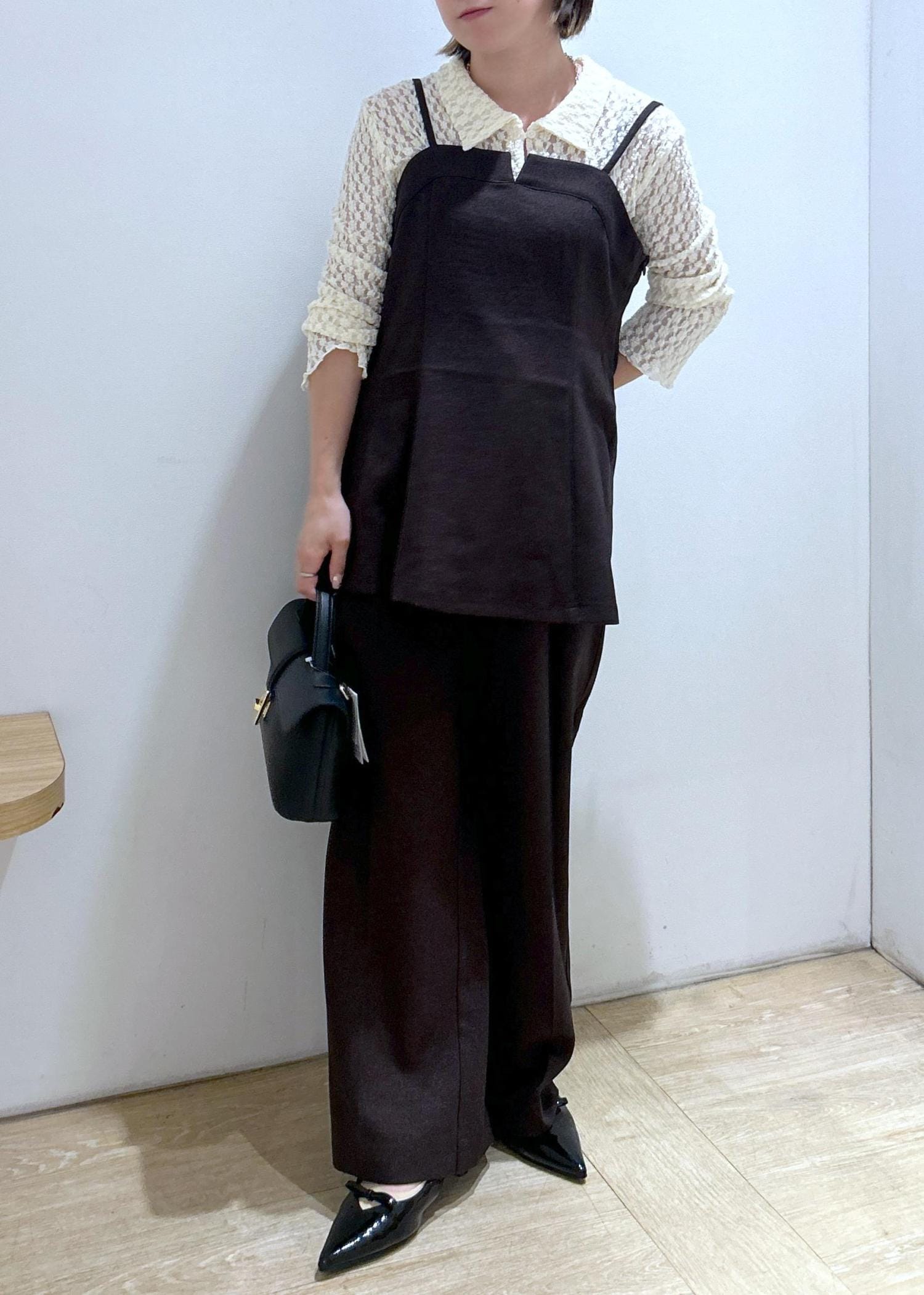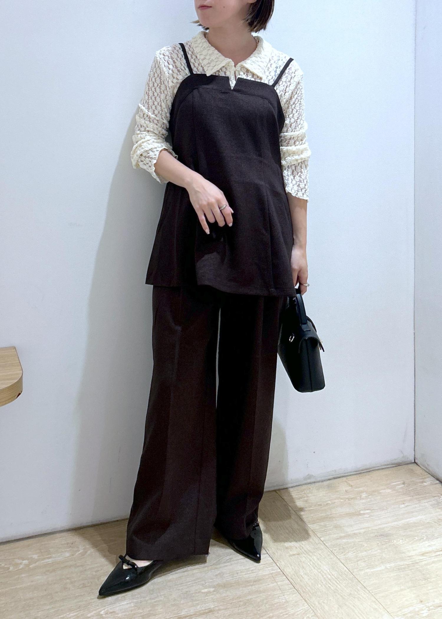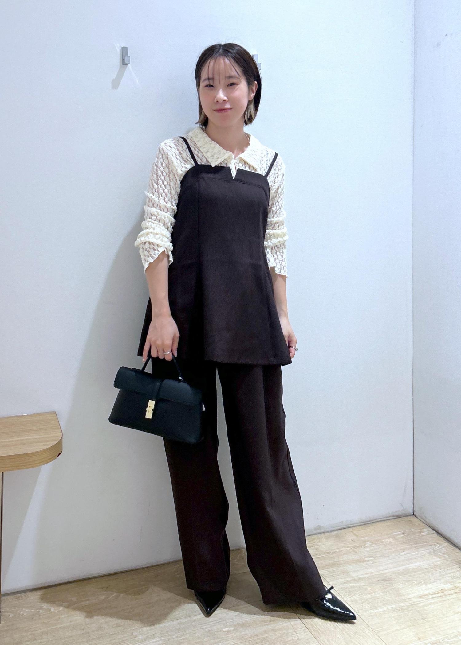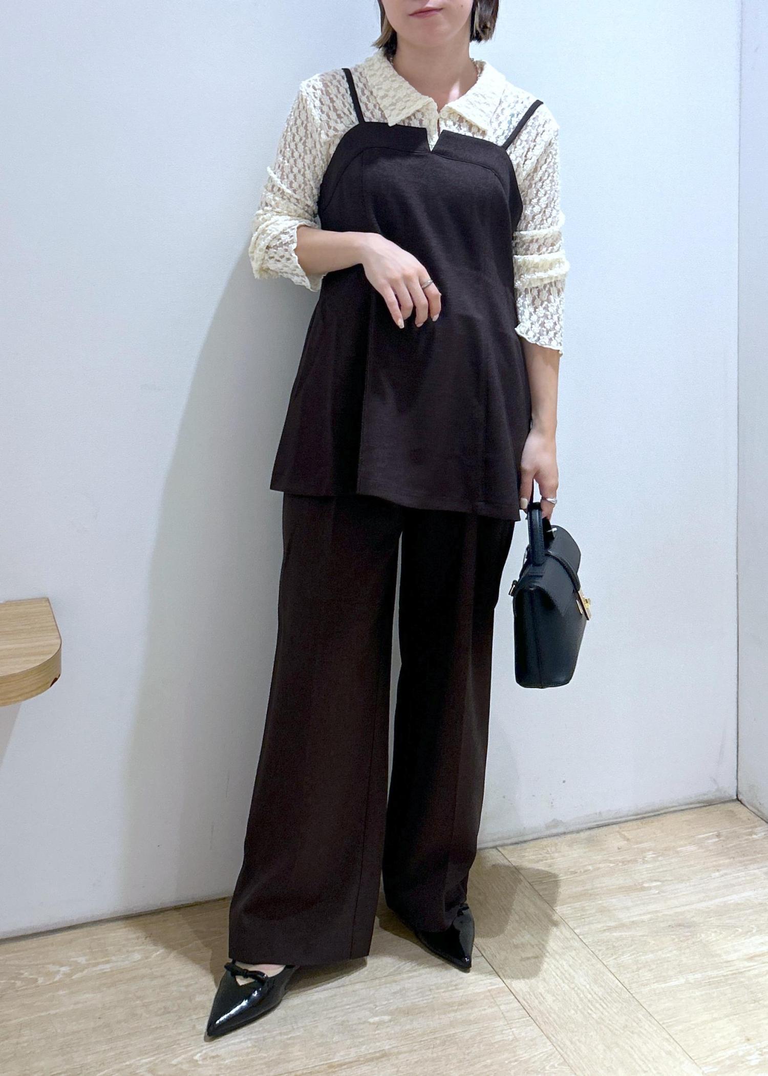 予約VIS【美easy】ウーリッシュワンタックワイドパンツ【セットアップ対応/洗える】ダークブラウン / SS¥6,589レビュー150cmでウエスト、丈のどちらもジャストサイズでした。ウエストが細すぎず、ベルト幅もあるので、お尻や腰骨が目立ちにくいシルエットです。シワになりにくく、お洗濯できます!