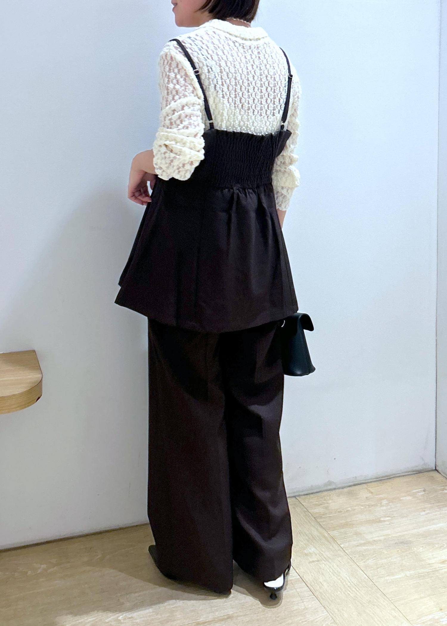 VIS【美easy】ウーリッシュチュニック丈ビスチェ【セットアップ対応/洗える】ダークブラウン / F¥6,589レビュー程よいゆとりがあるので、インナーにニットをきても窮屈感無く着やすかったです。長さのあるフレアシルエットなので腰まわりもカバーできます。