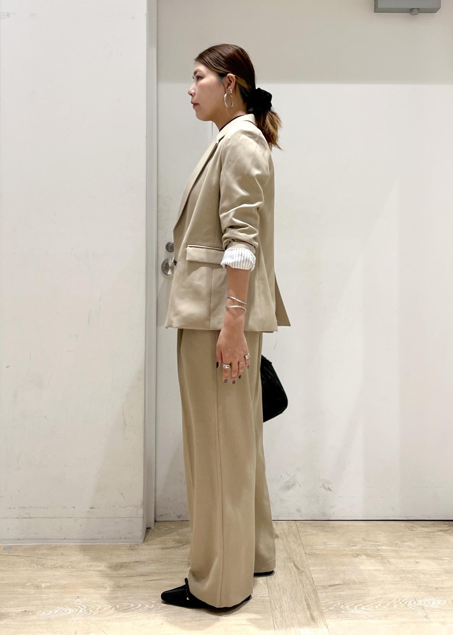 スッキリとしたシルエットでオーバー過ぎないジャケットです。171cm/Mサイズ着用でヒップにかかる着丈がありますが、袖は手首がしっかり見える丈だったので少し短いです。高身長さんはweb限定のLサイズもおすすめです。