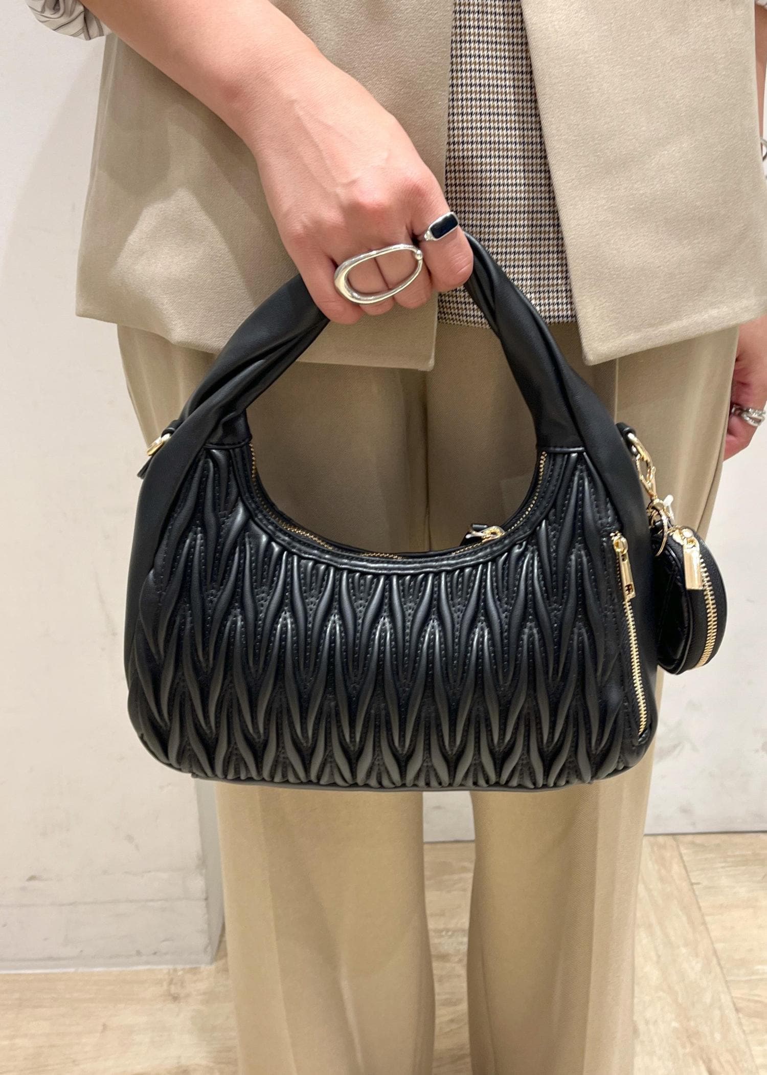キルティングで高見え!チャームとしても存在感がありコーデのポイントに。小物も入れられるのでリップなど入れても◎