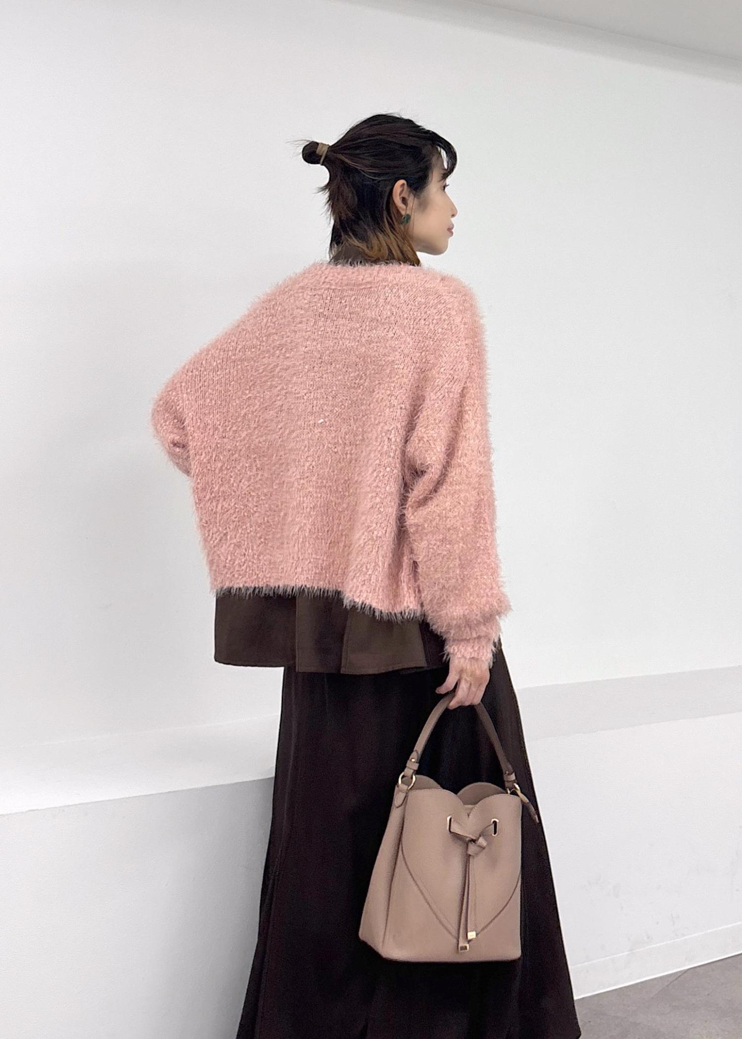 VISポップコーンヤーンラメフェザーニットカーディガン/WEB限定FSサイズピンク / FS¥5,271レビューふわふわ柔らかなフェザーニットカーディガン♪昨年も大人気シリーズがラメ使いとアップデートされました!ポコポコと膨らみのあるデザインがとても肌あたりが良く、着心地◎ゆったりとしたシルエットに袖口はリブ使いでたくしあげることが可能で、気温調整にもぴったりです。全体的にゆったりめ、着丈はFSサイズ着用で腰が隠れる長さでした。