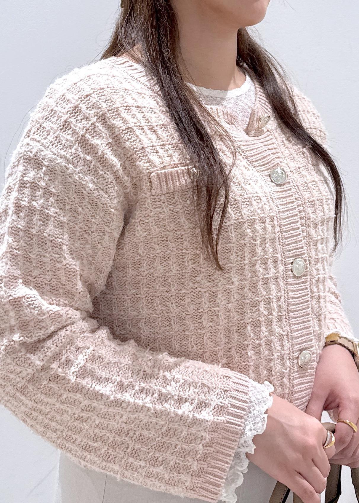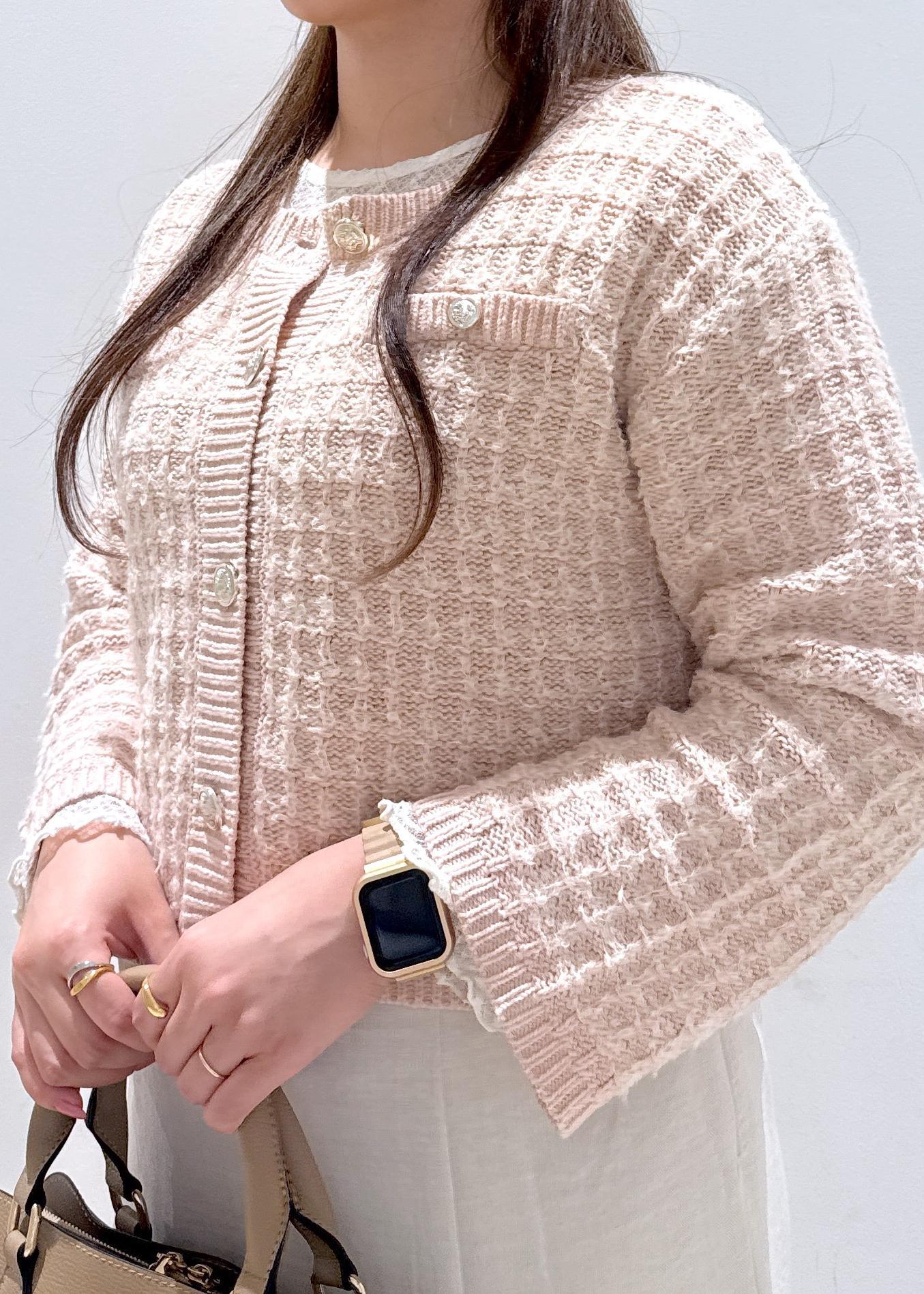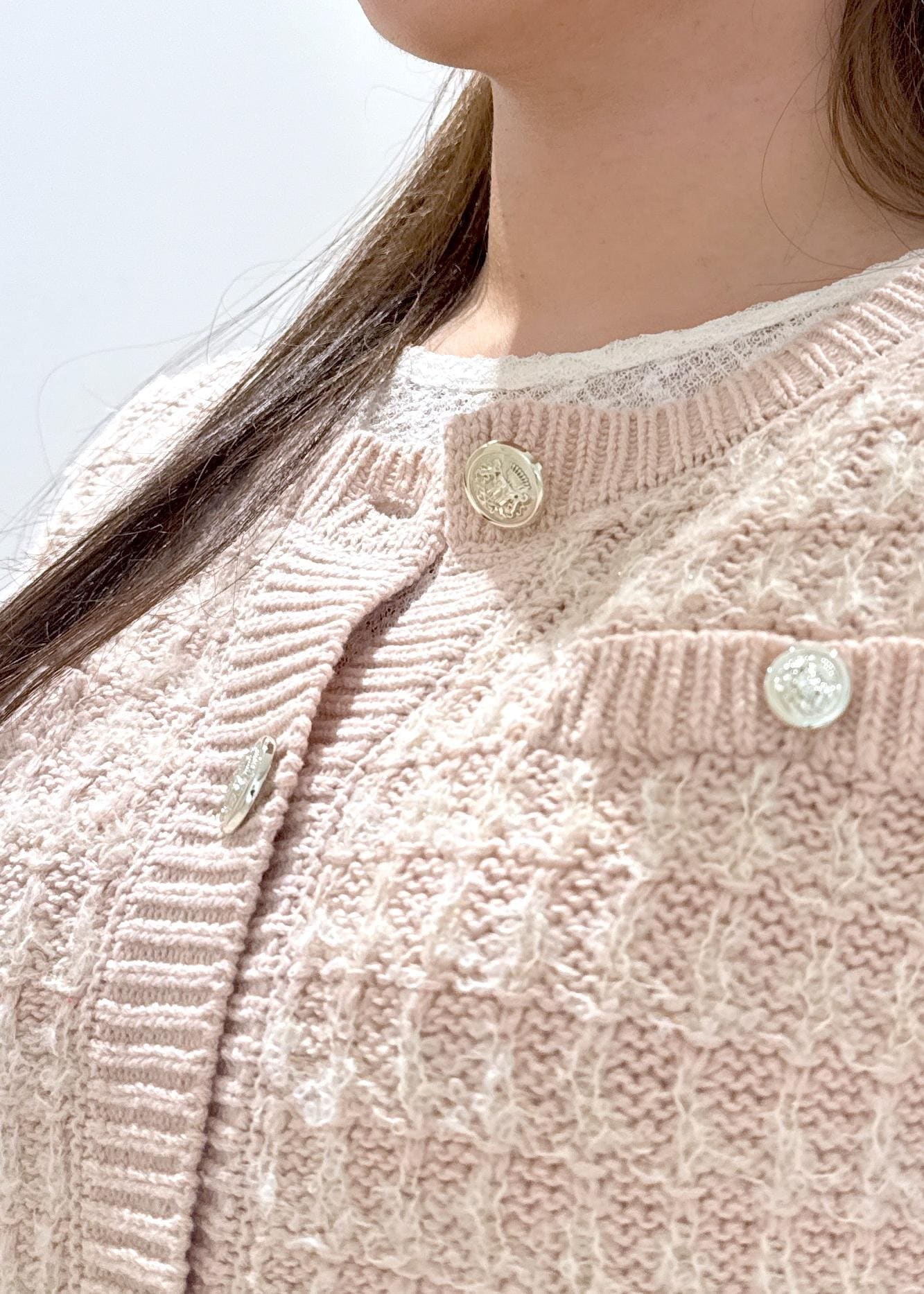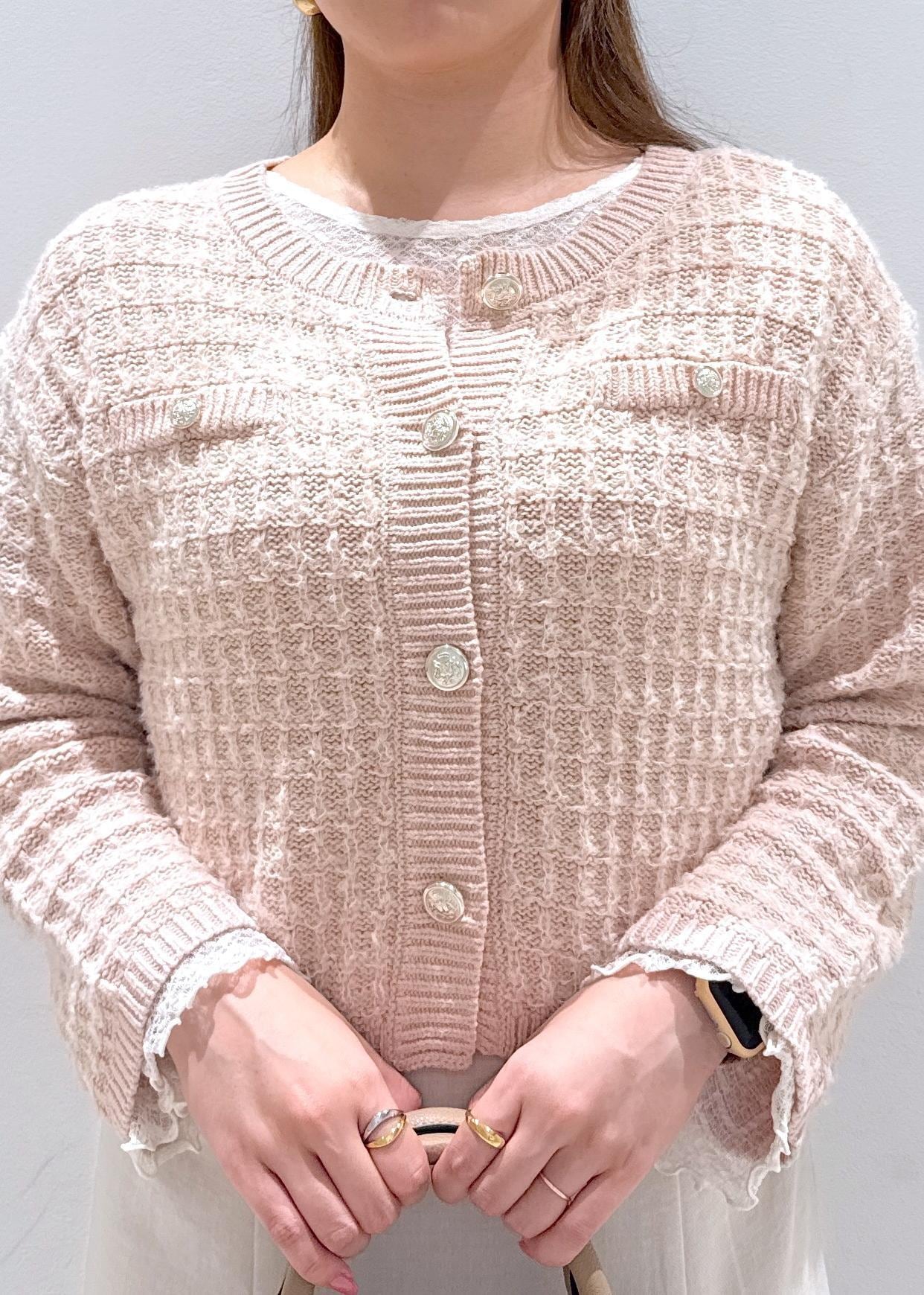 VISファンシーツイードメタルボタンカーディガンピンク / F¥6,589レビュー身長157cm/Fサイズ着用/骨格ストレート