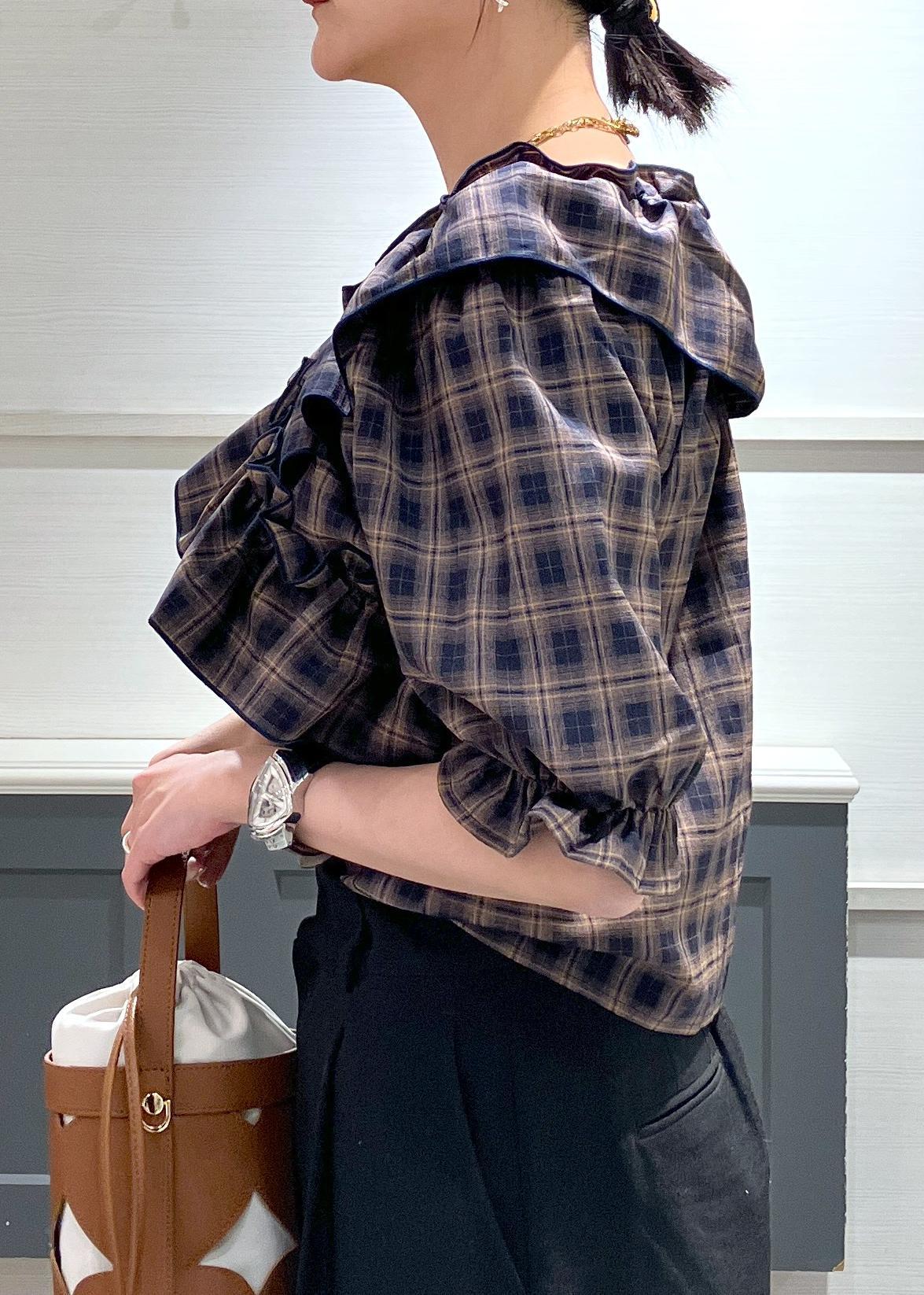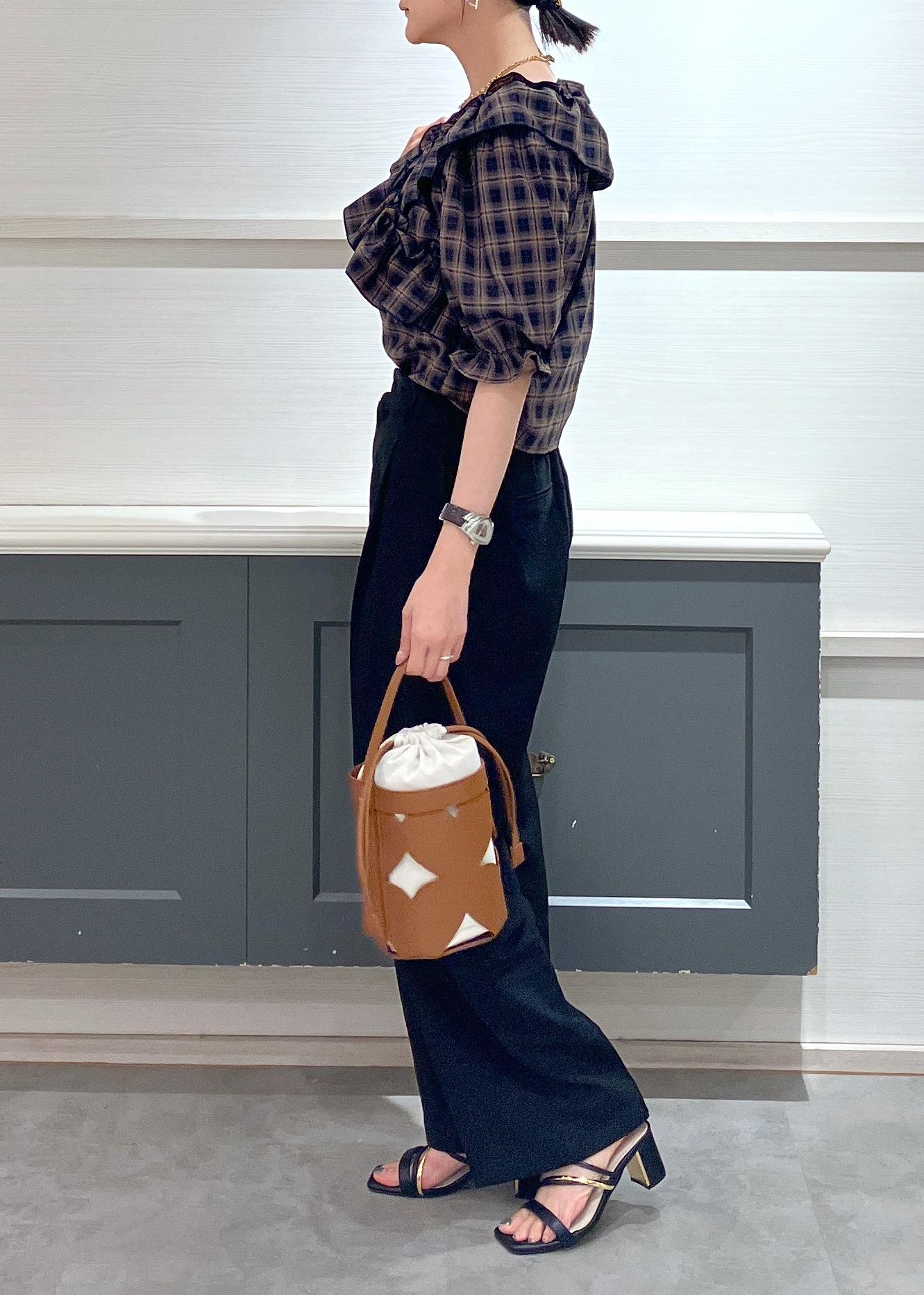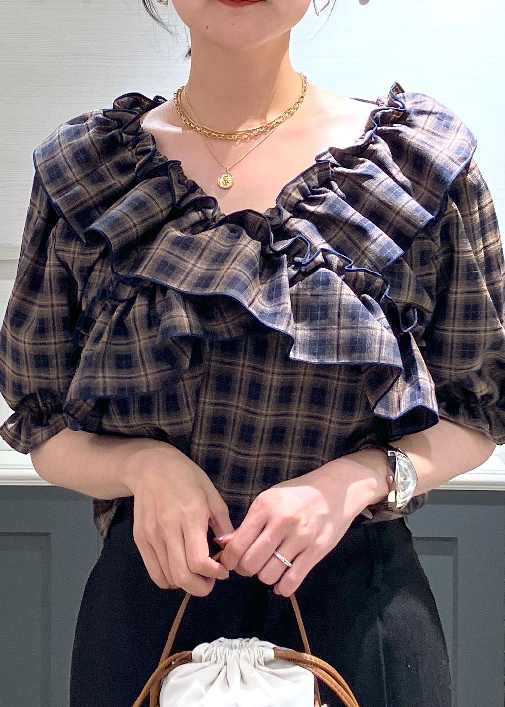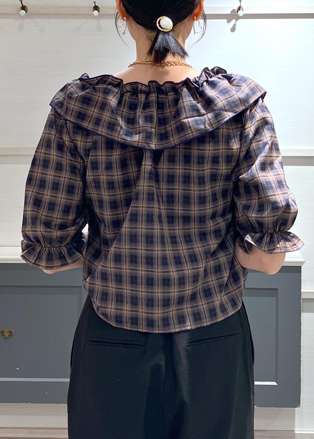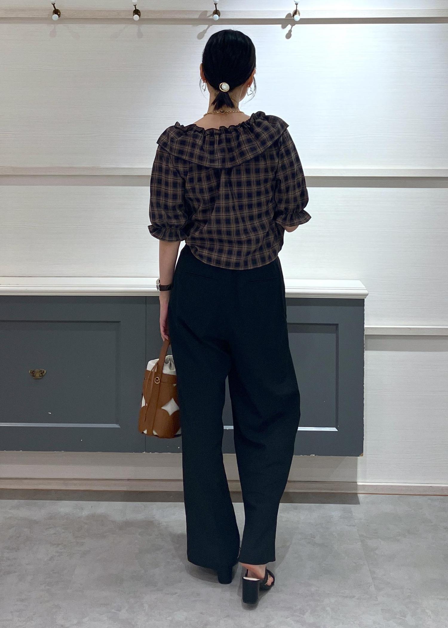 VIS【2WAY】フリルチェックオフショルブラウスダークブラウン系 / F¥6,589レビュー骨格ストレートですが大ぶりのフリルも程よい肌見せで肩がスッキリ見えたので嬉しいです♡