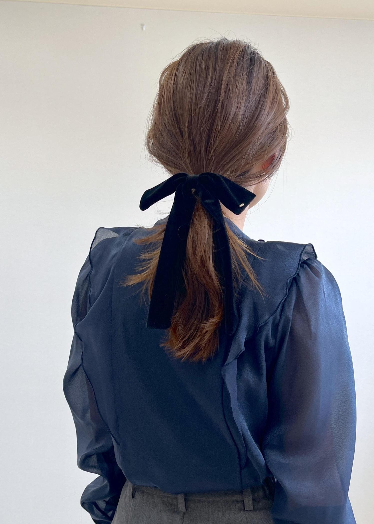 ベロア素材でつけるだけで秋らしいコーディネートに。ヘアアレンジには欠かせないアイテム。ロングの方には是非使っていただきたい。いつものスタイリングが映えます!