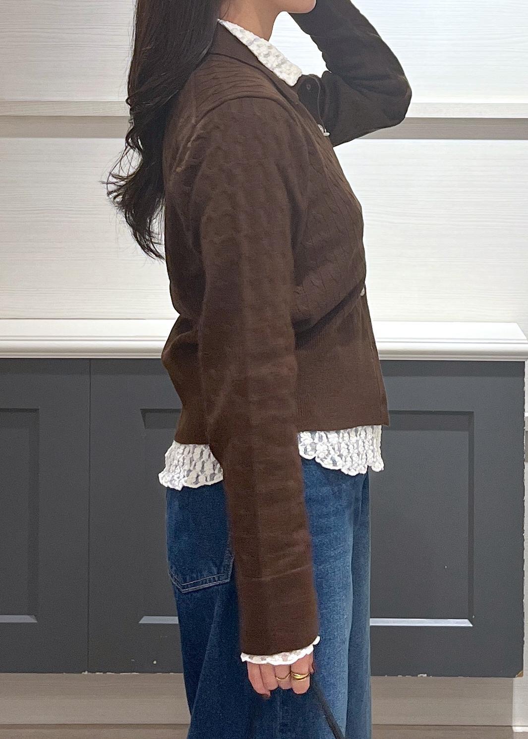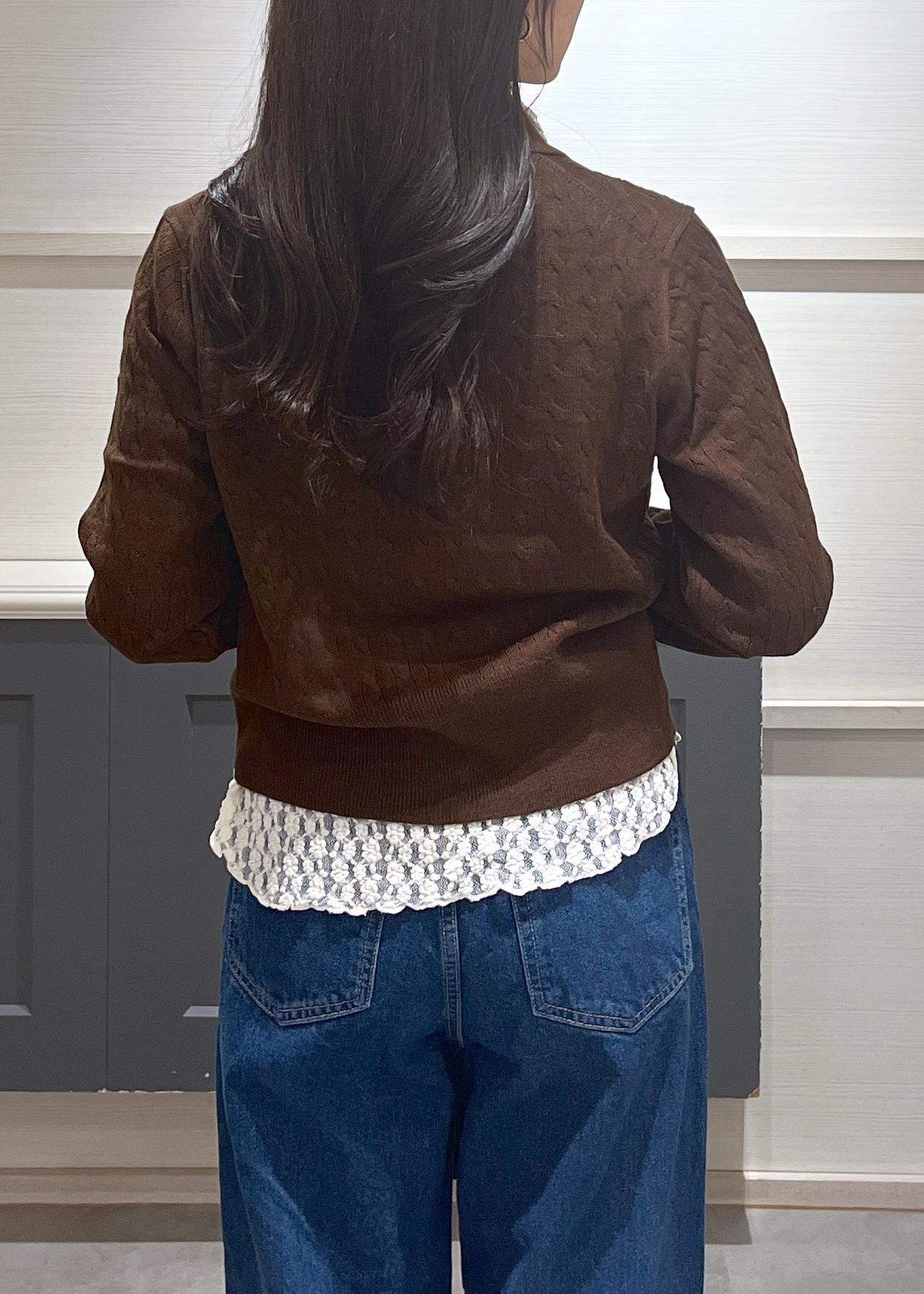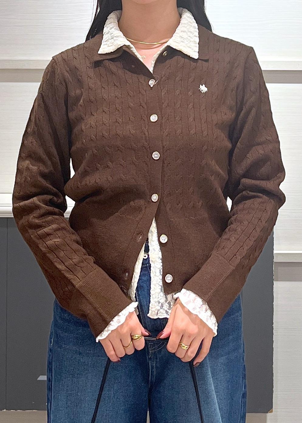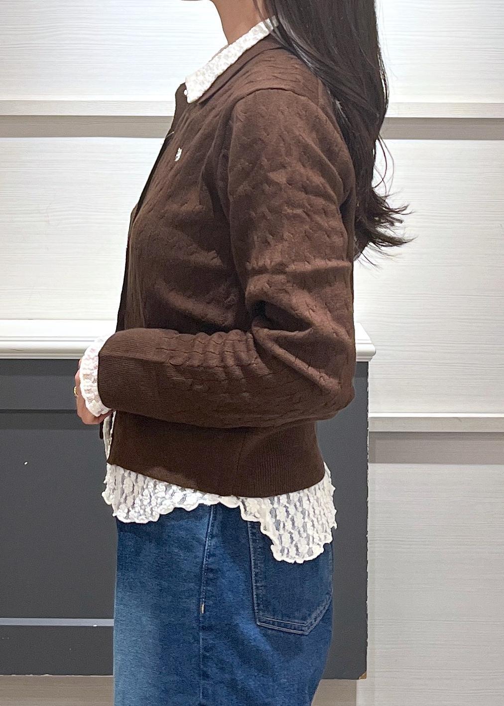 VIS【POLO BCS】VIS別注ミニケーブルポロ襟ニットカーディガンダークブラウン / F¥7,150レビュー156cmで腰が隠れる丈感でした。
