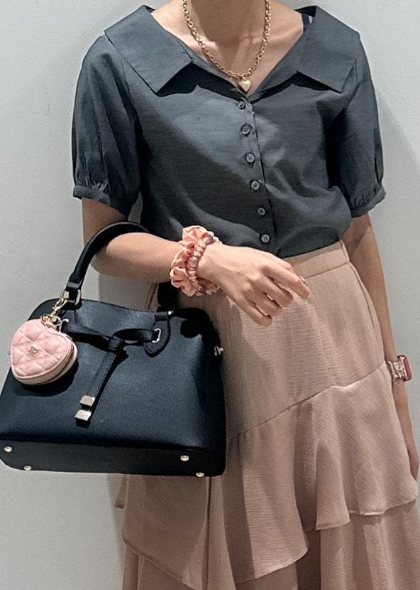 VISビックカラーシャツブラウスチャコール / F¥3,953レビュー後ろがゴム仕様になっており伸縮性が良く、開襟風の大きな襟がポイント。