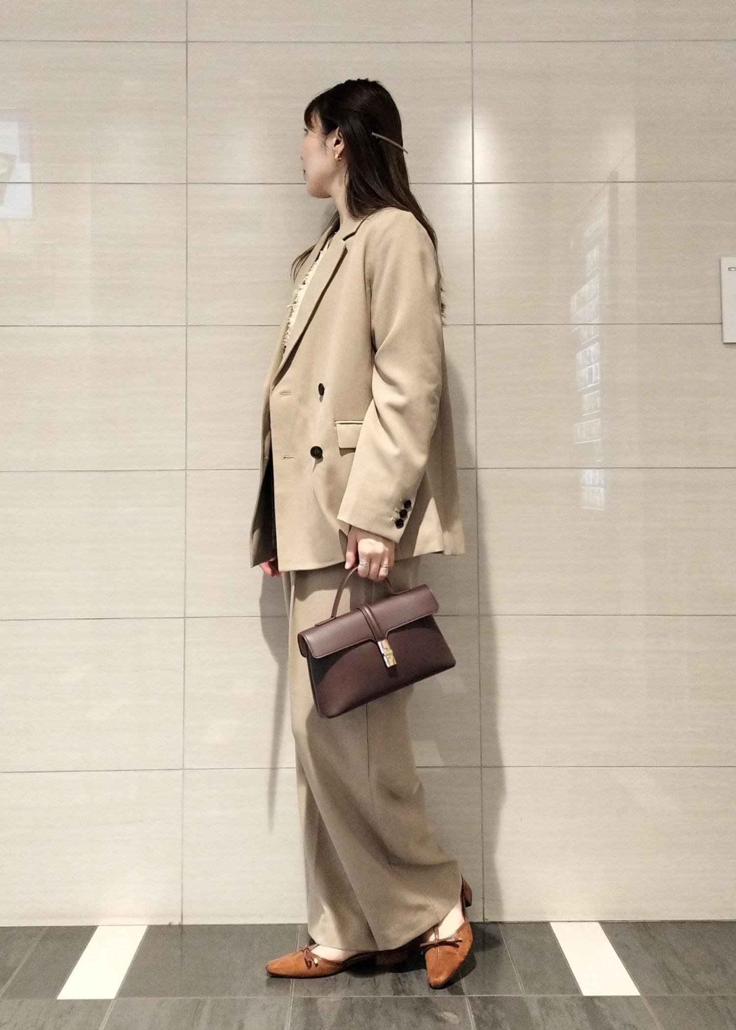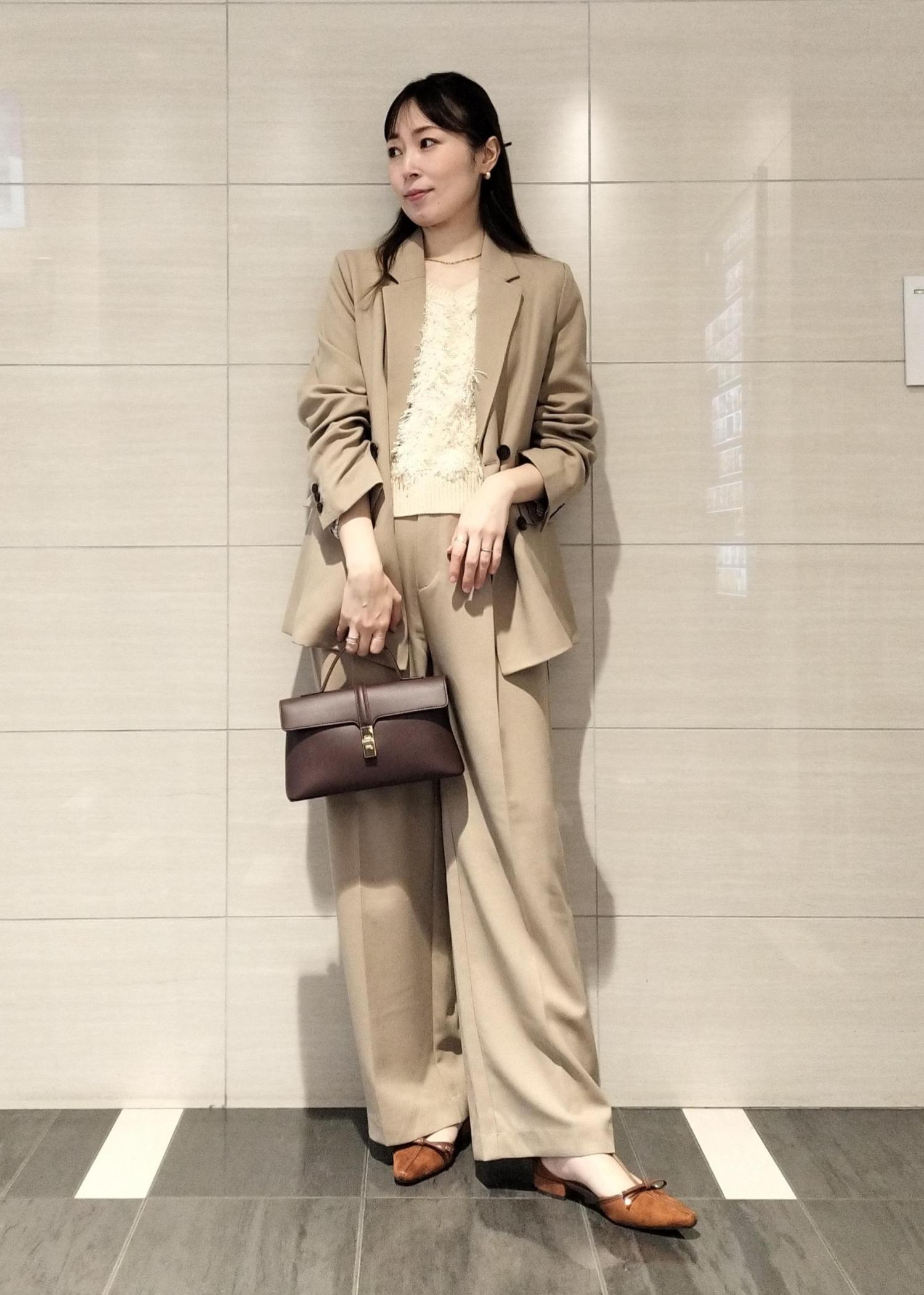 VIS【美easy】ウーリッシュダブルブレストテーラードジャケット【セットアップ対応/洗える】ベージュ / M¥8,899レビュー身長163㎝Мサイズを着用しています。