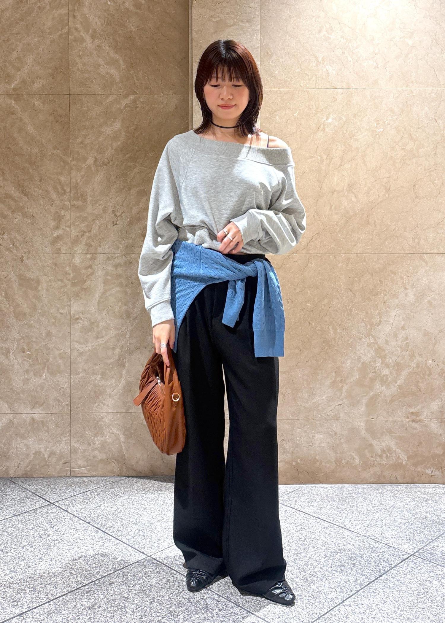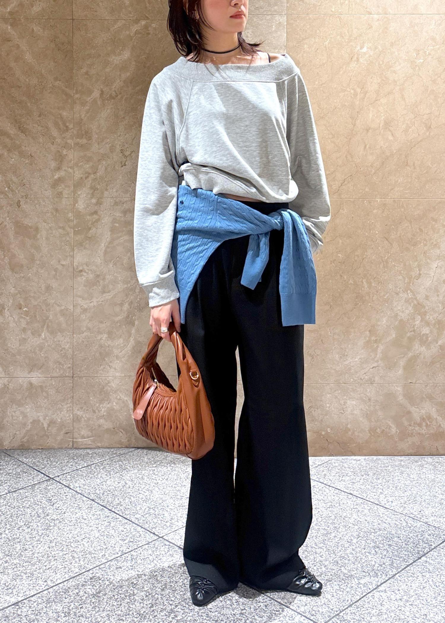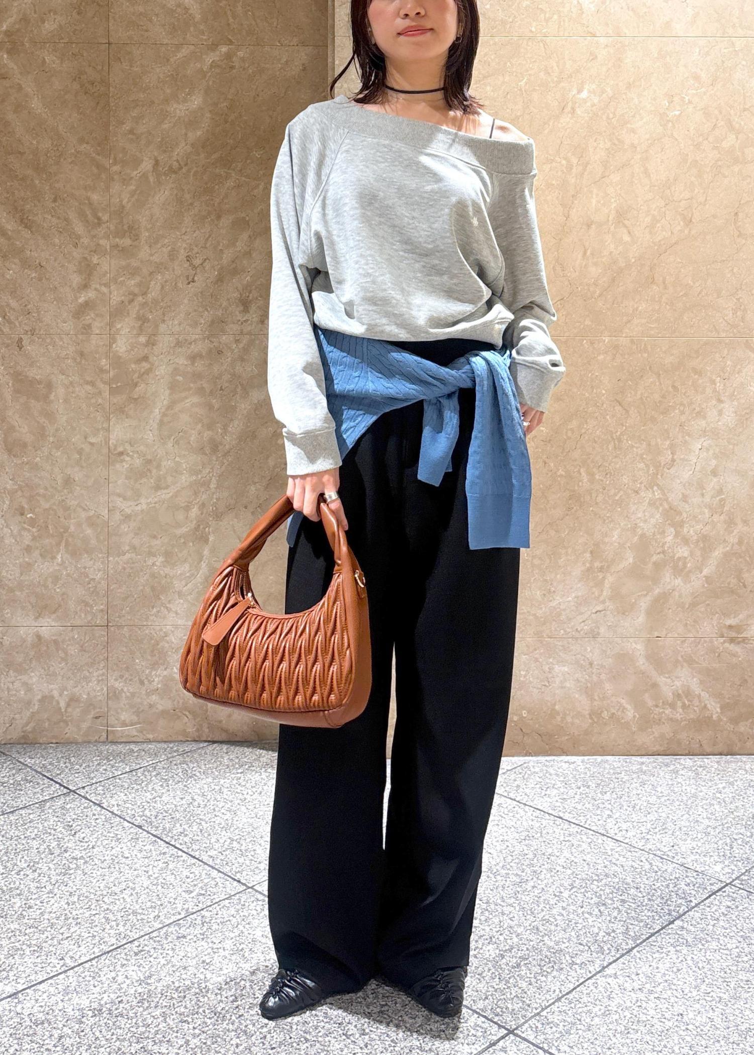 両肩に乗せてもボートネックにもなるので、普段使いしやすいです。 -