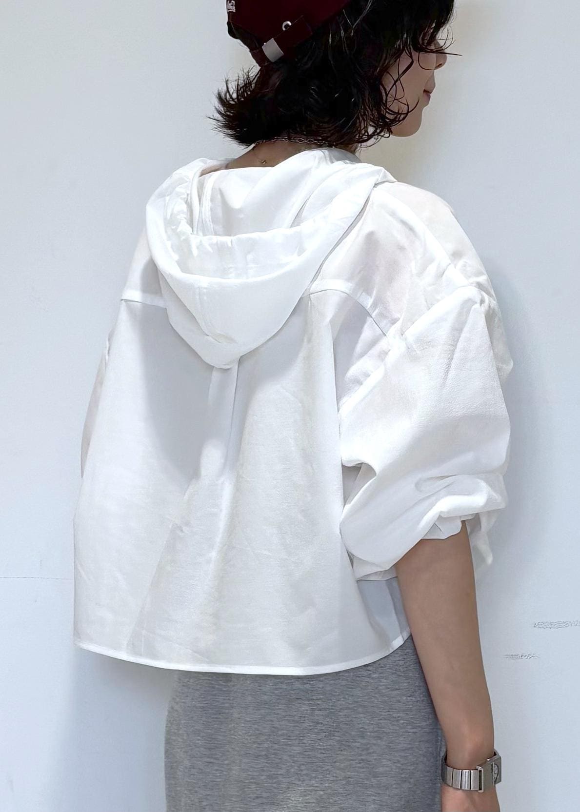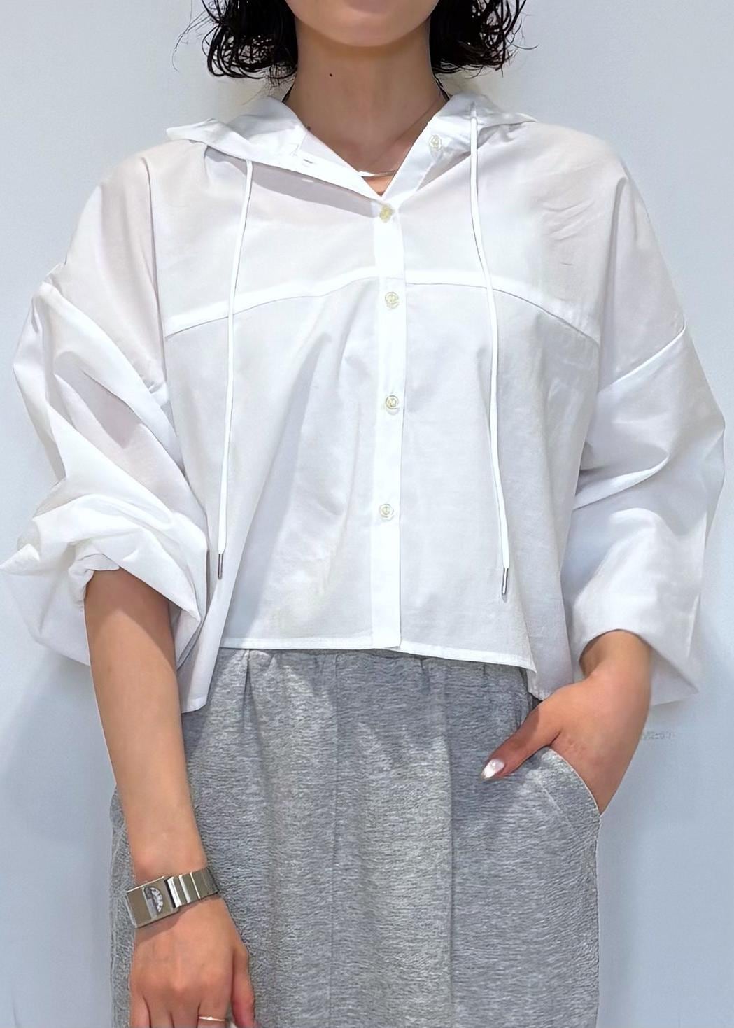 フード付きクロップドシアーシャツ