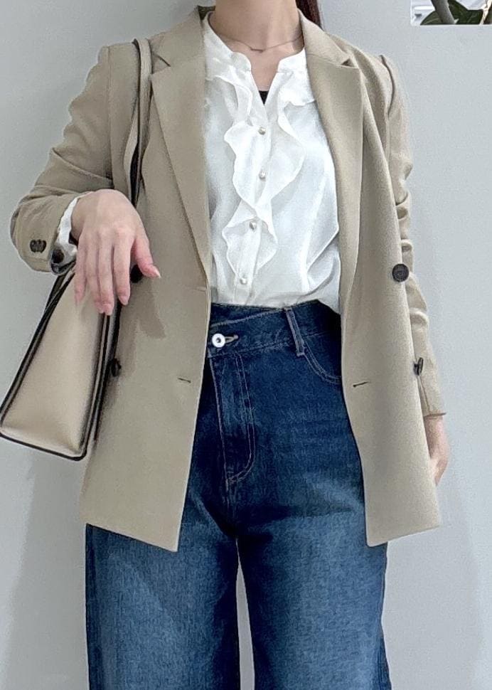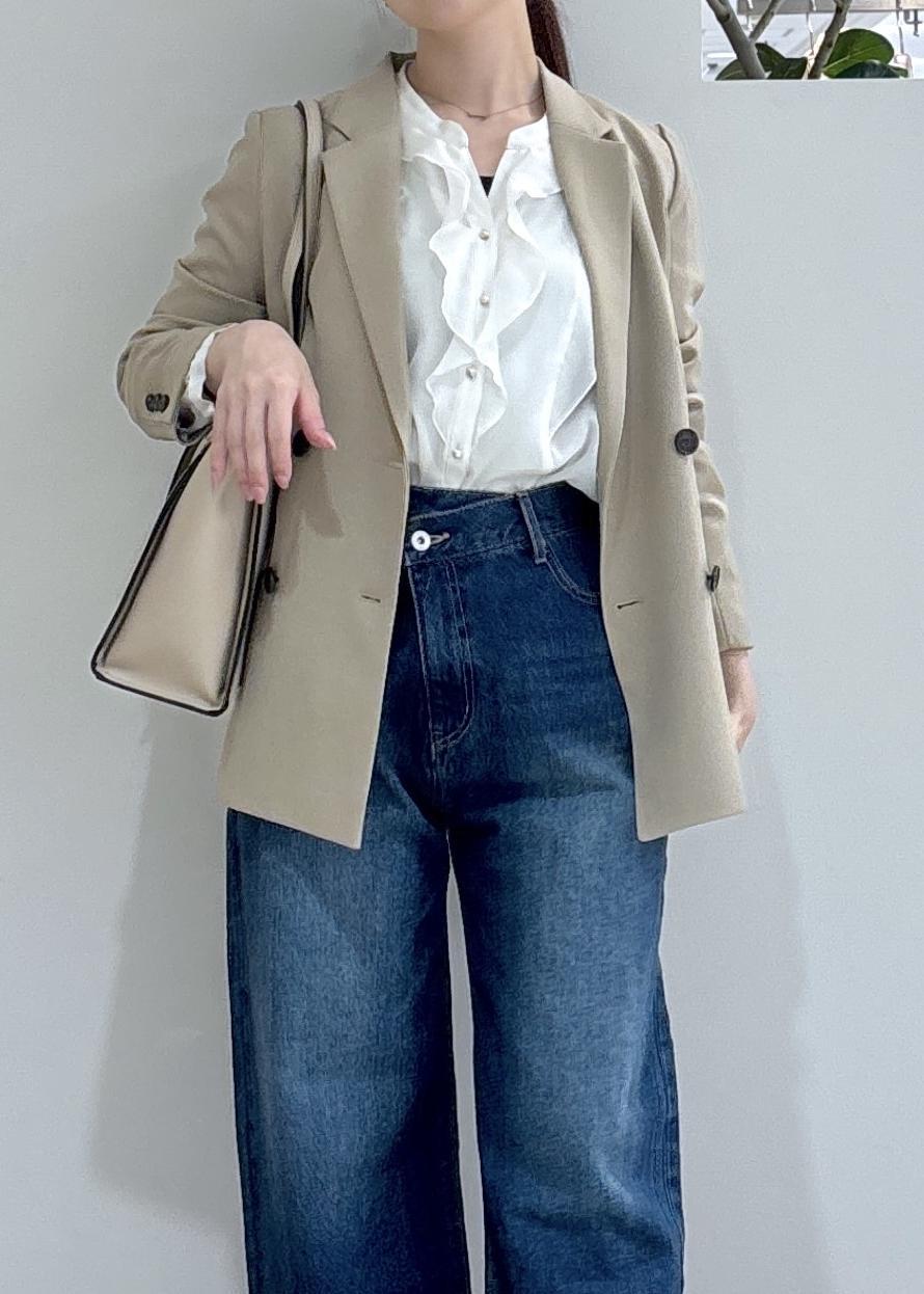 ジャケットを着てもフリルが見えて可愛いですよね♪ -
