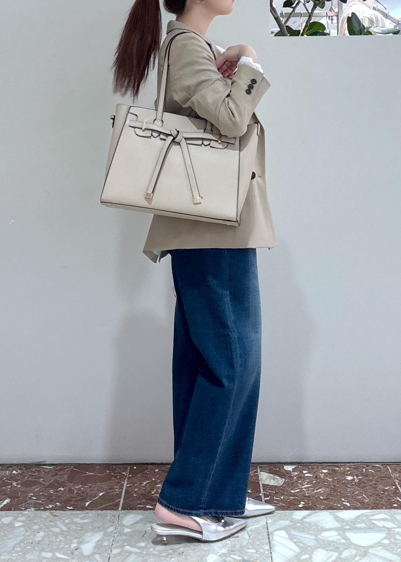 アウトレットVISスリングバックリボンミュールシルバー / L¥2,768レビュー24.0cmLサイズ着用。少し大きめでしたが、足幅広めなの幅感はしっかり取れて履きやすかったです。