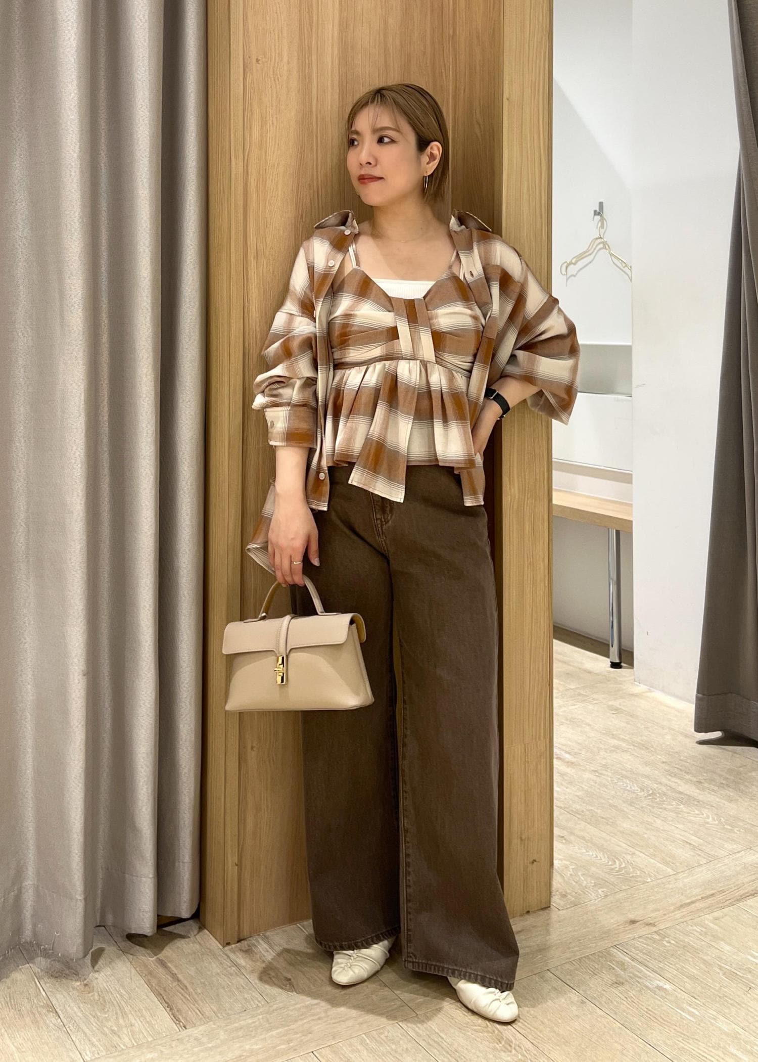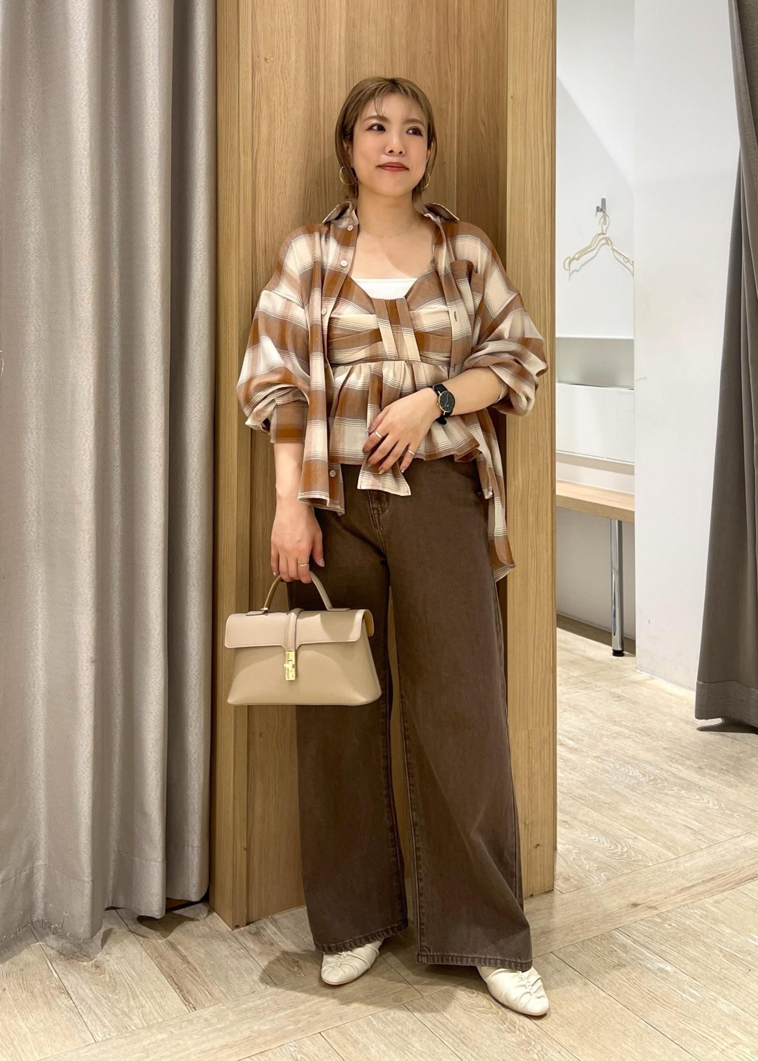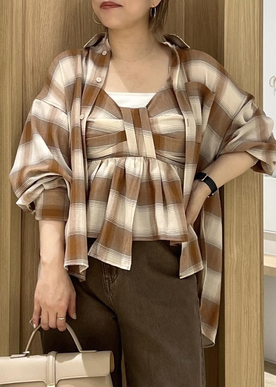 VISオンブレチェックオーバーシャツベージュ系 / F¥6,589レビュートレンドのオンブレチェックシャツはオーバーサイズでゆったりとしたシルエットが大人可愛いです♡