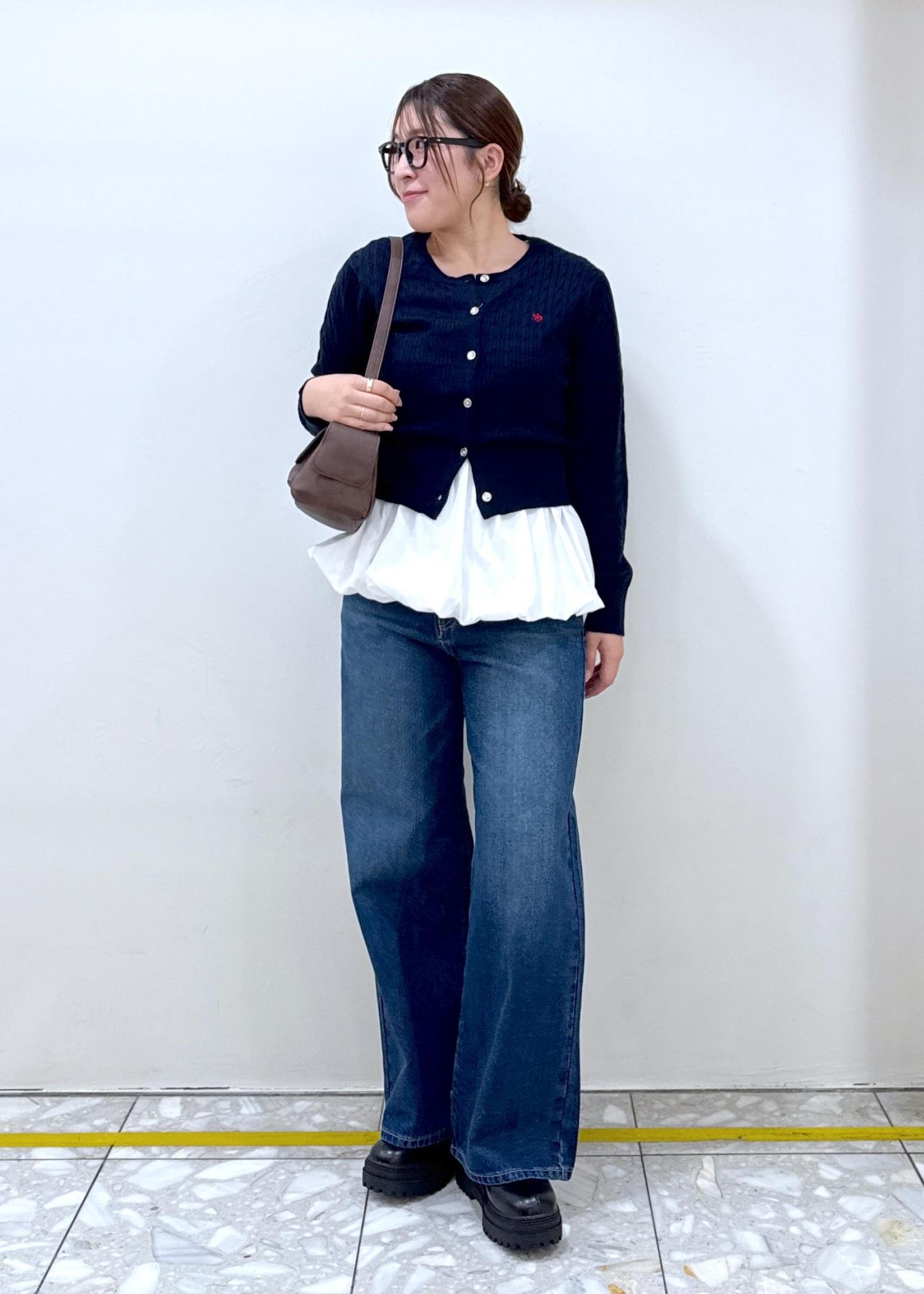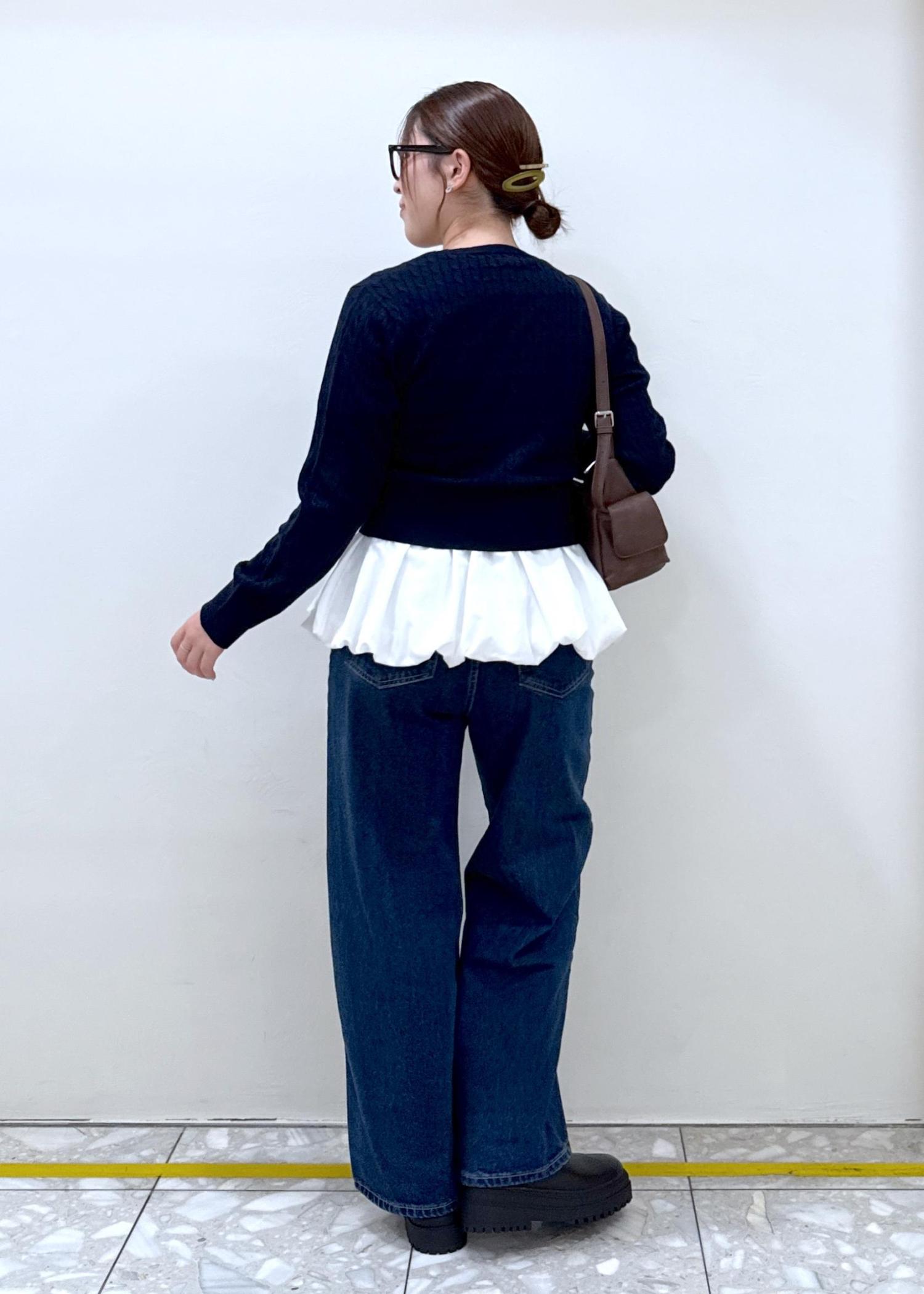 スカートやデニムなどキレイめ、カジュアルどちらも合わせられる1枚です! -