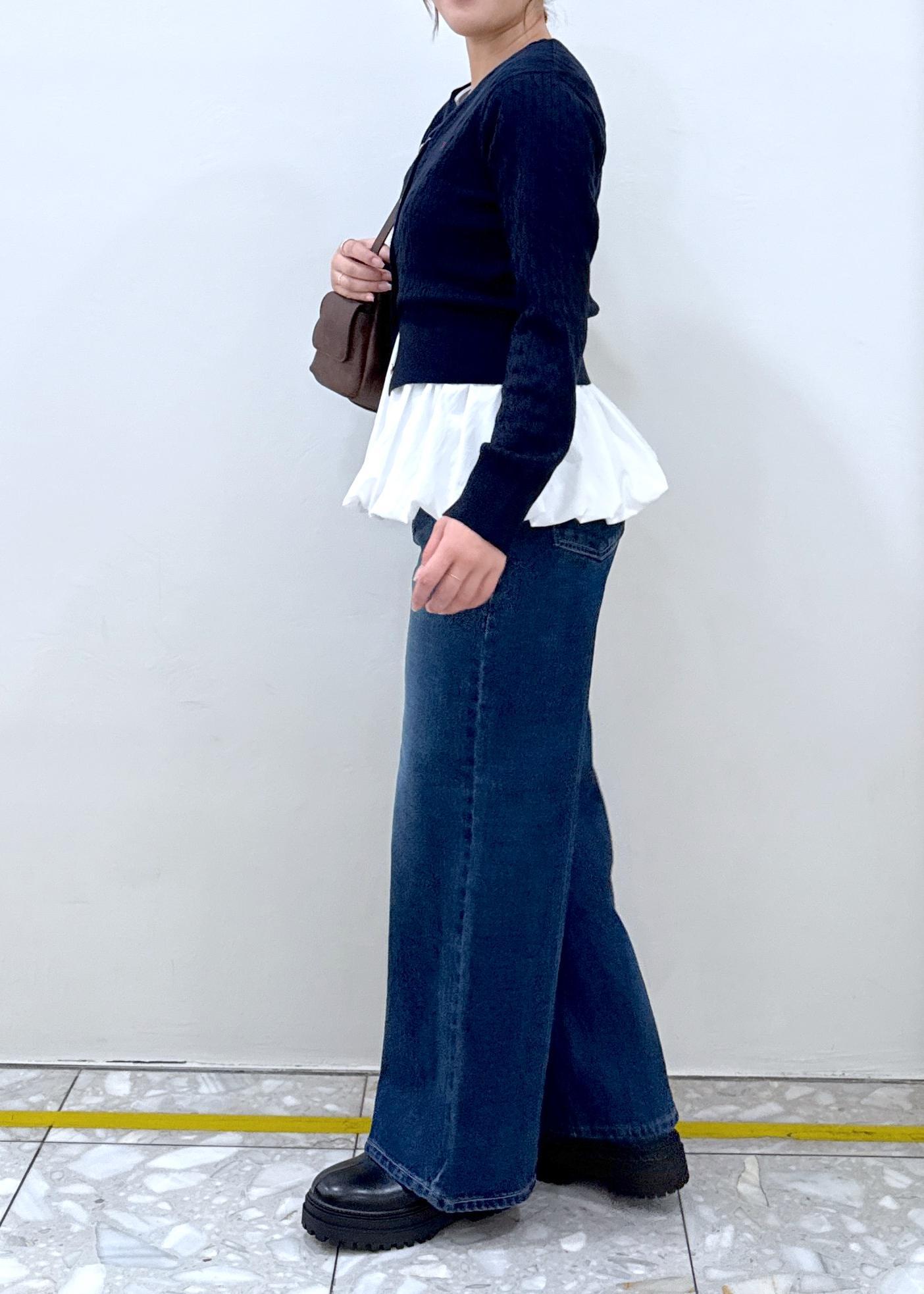 ワイドすぎないのでトップスとも色々なものと合わせやすいです✨ -
