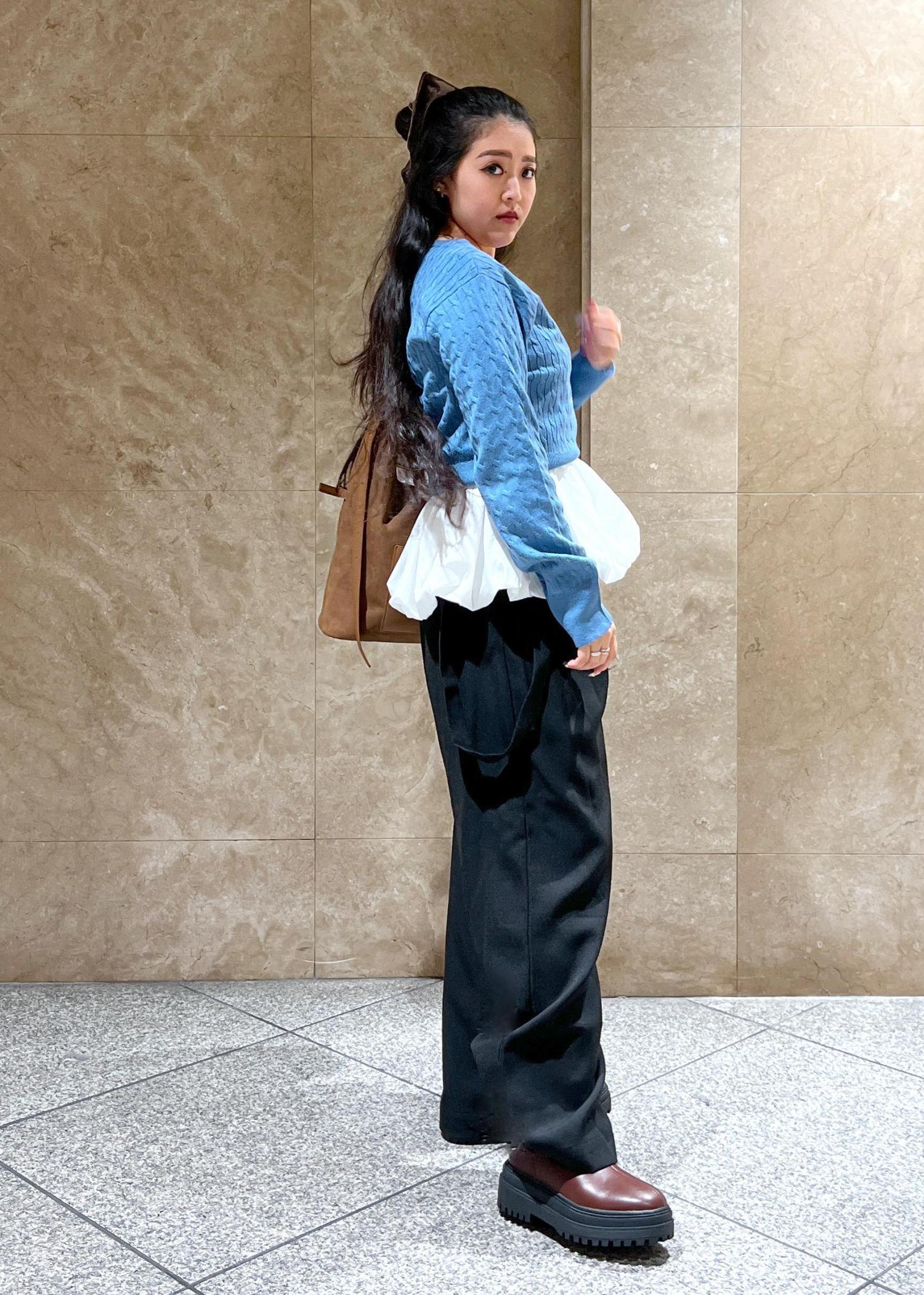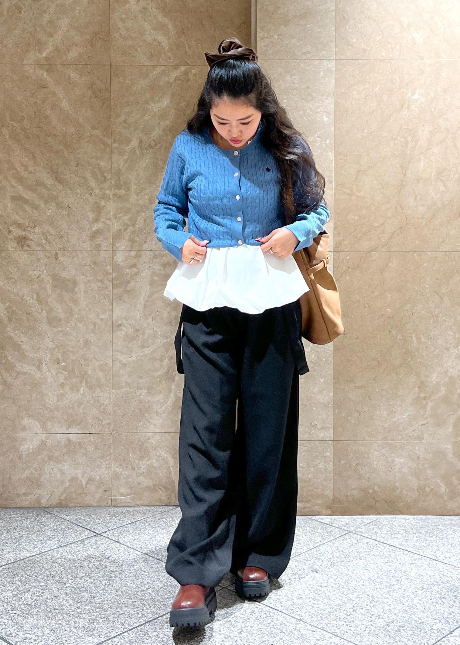 裾のリブ部分がとても良く、長めに作られてるのでスカートにもパンツにもピッタリ◎ボタンを開けて使っても折っても可愛いです♡ -