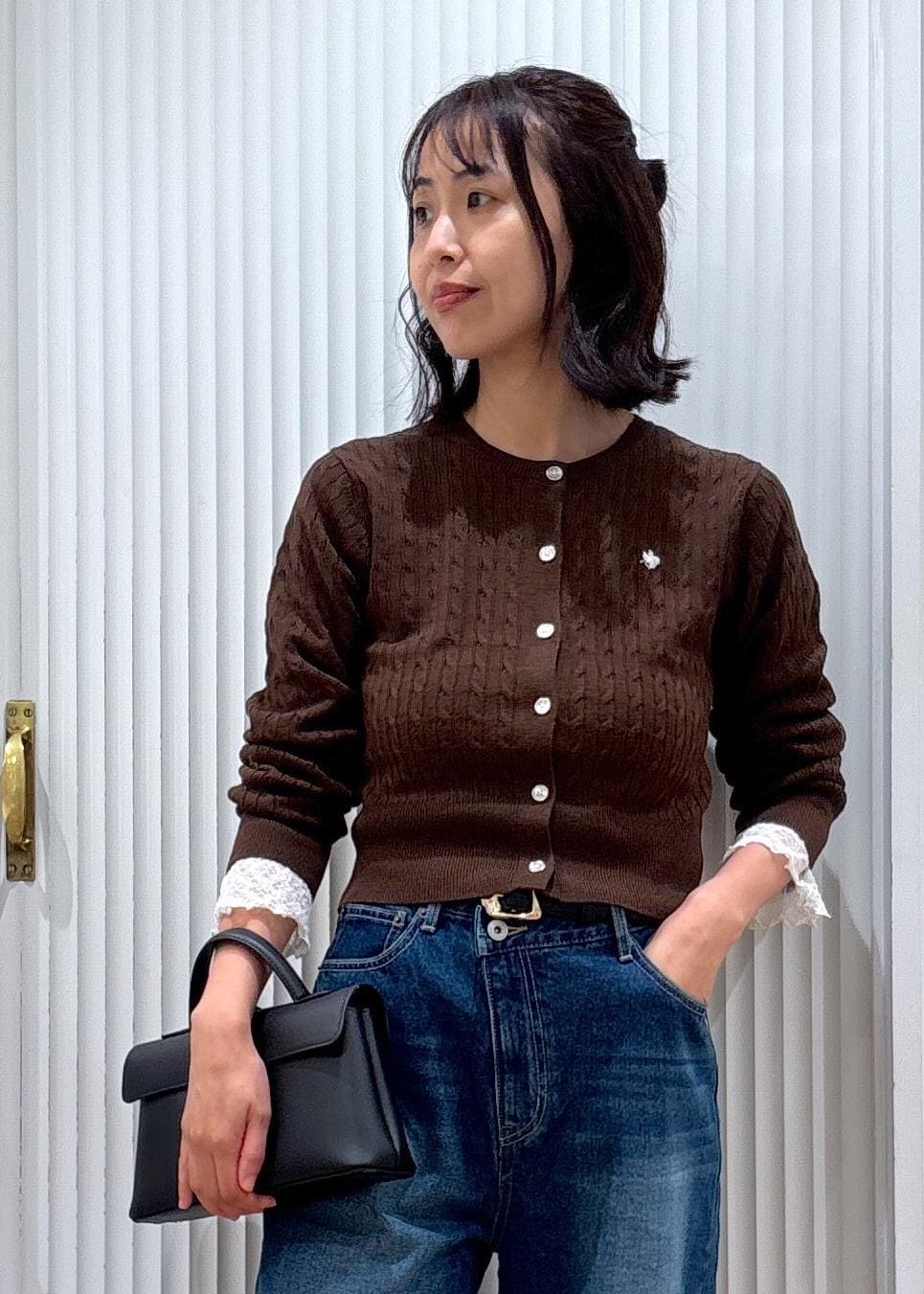 毎回大人気の別注アイテムのカーディガンとデニムでコーディネートしました。