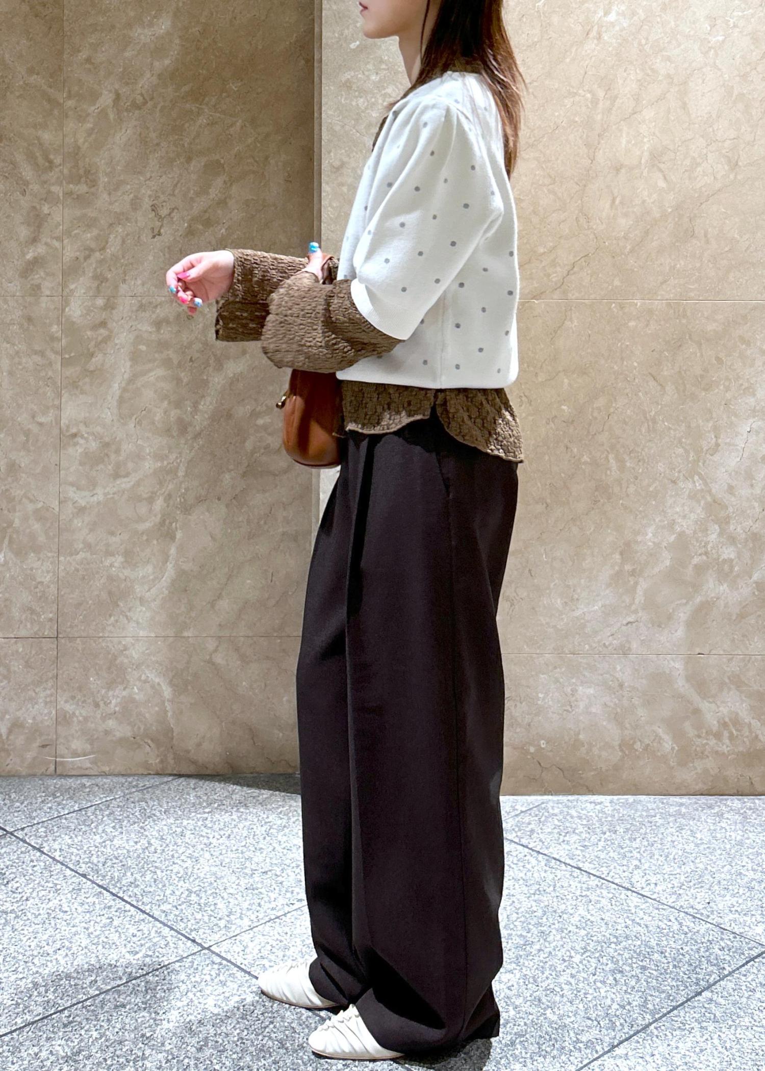 袖丈、着丈共に長めなので、上からトップスを重ねてレイヤードスタイルにも使えそうな1枚◎