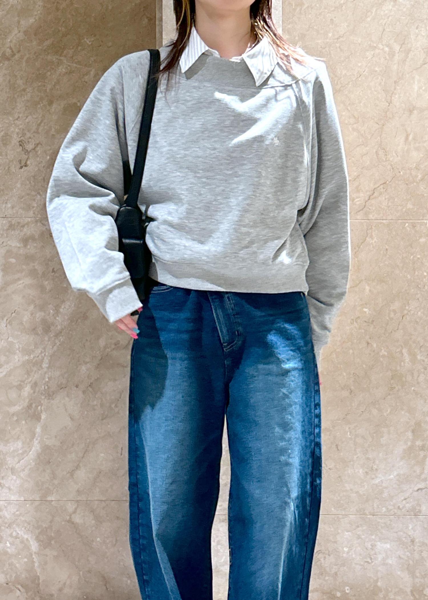 シャツの裾部分はスウェットの中にしまってみましたが、出してもかわいいです♡
