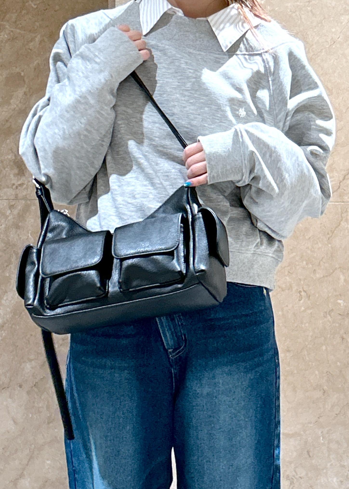 VIS【2WAY】ビンテージ合皮クアトロポケットショルダーバッグブラック / F¥6,919レビュービンテージ風のコンパクトな見た目のバッグ!