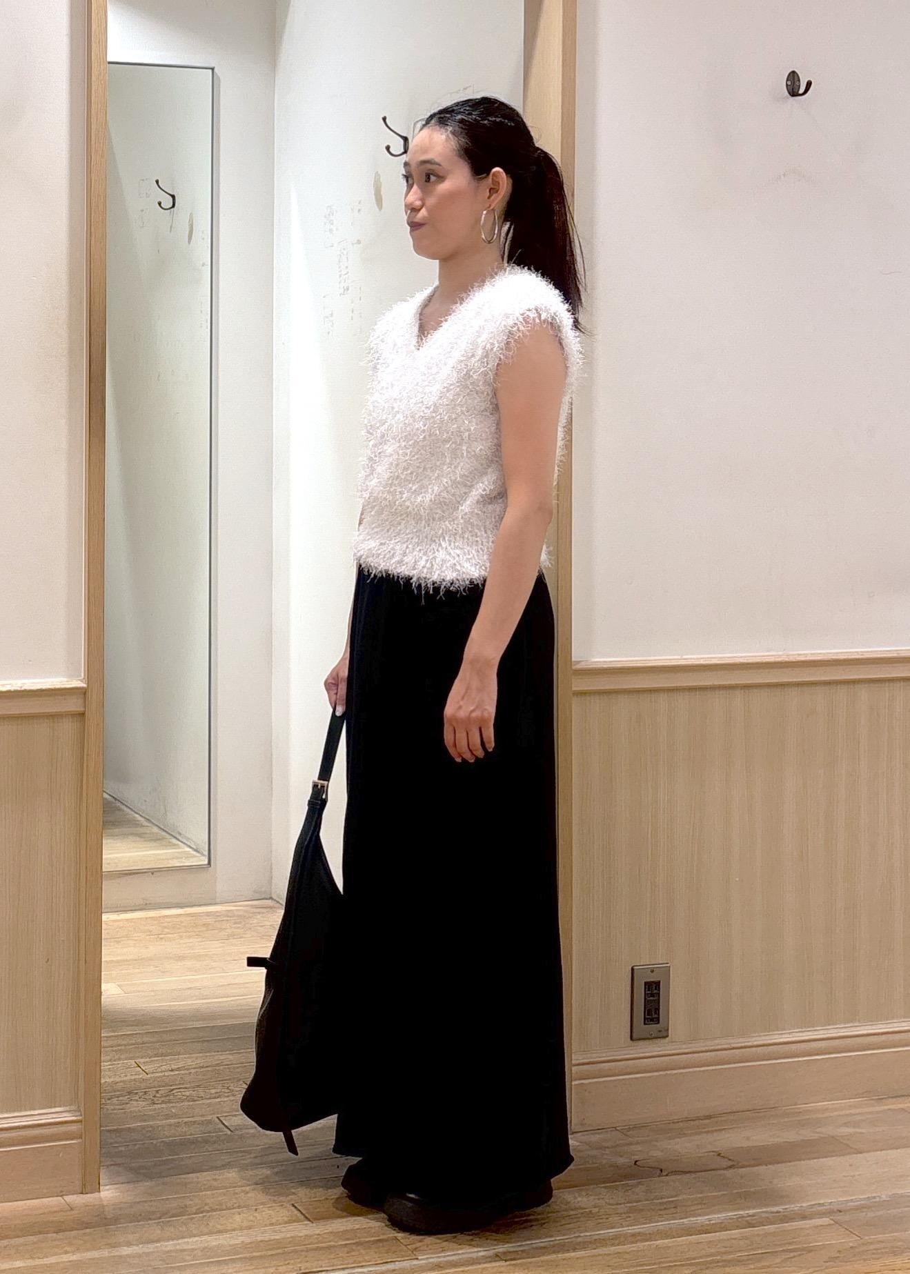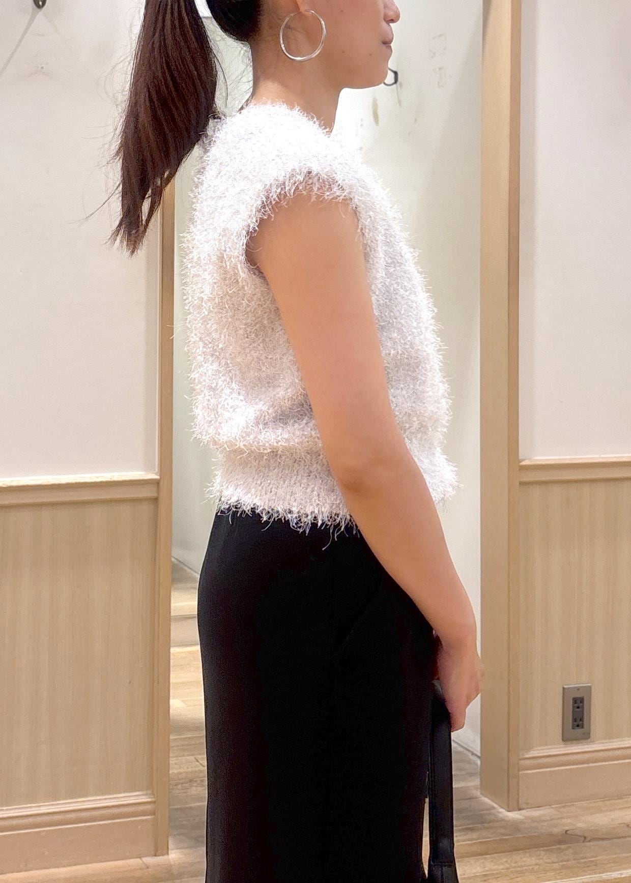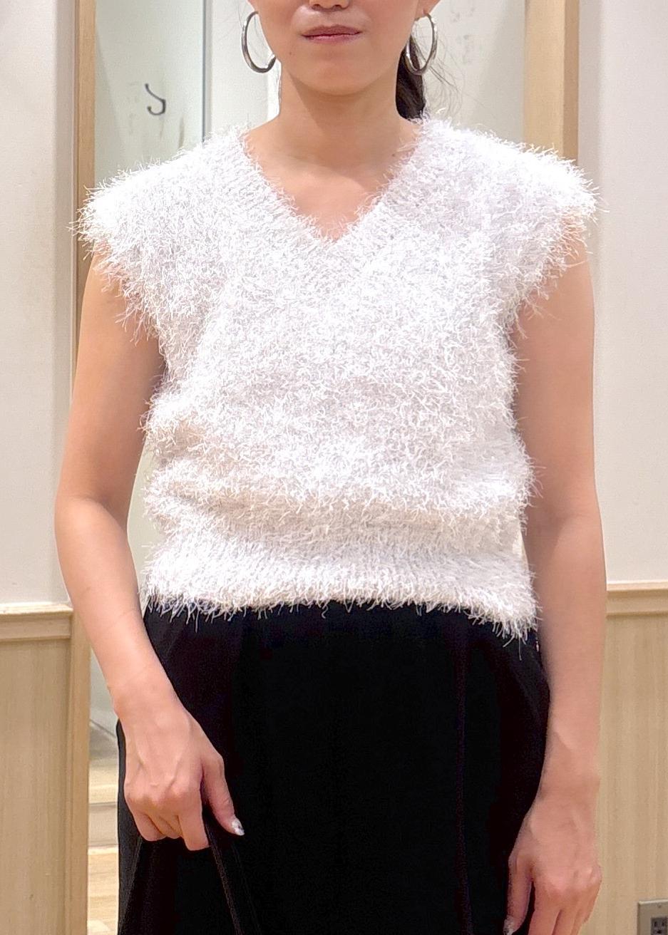 VIS【WEB限定サイズ:MT/着丈が選べる】【洗える】フェザーヤーンニットベストホワイト系 / M¥3,293レビュー季節感を先どれるニット。ラメが入っていて華やかさもあります。