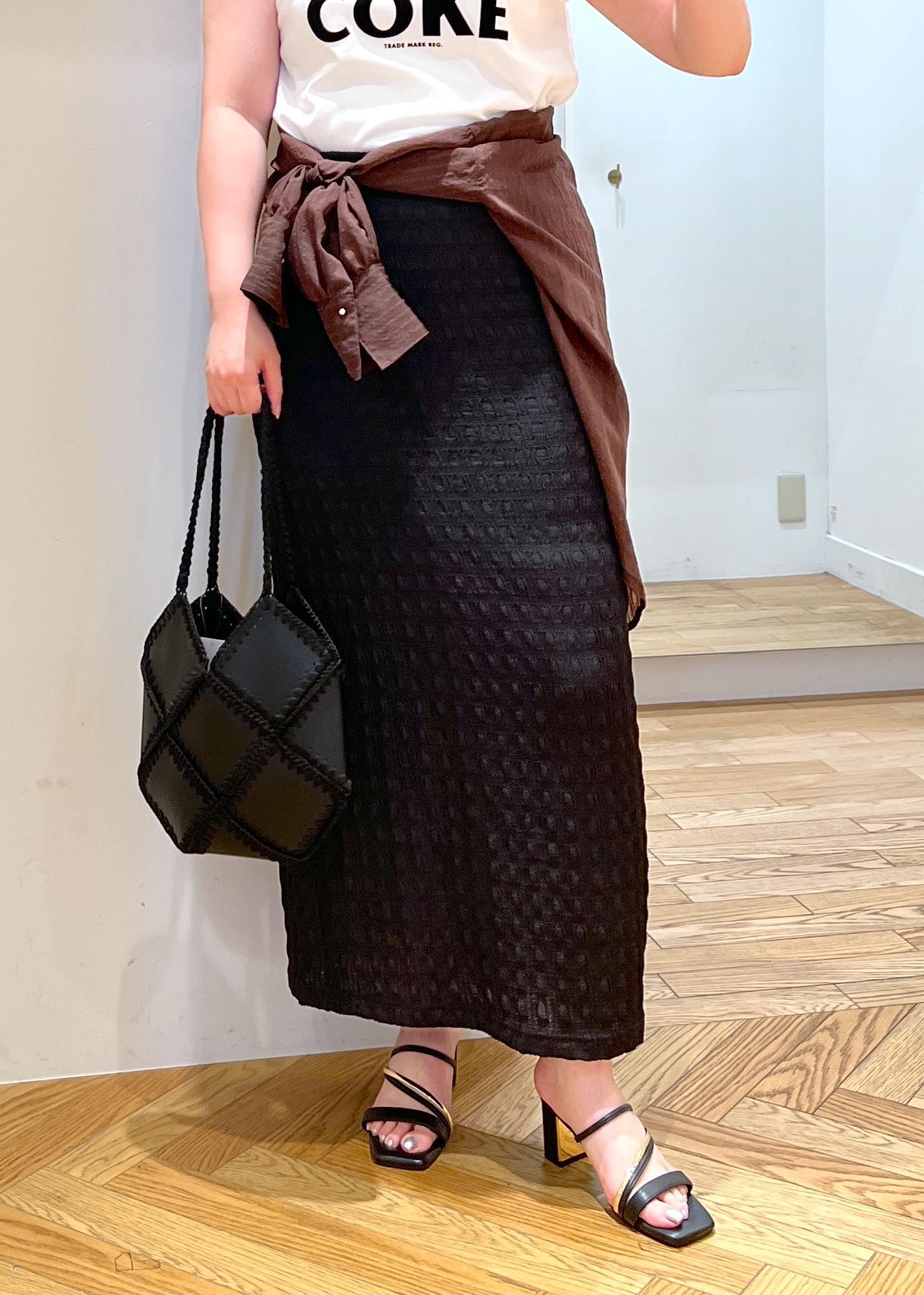 ジャガードのスカートをカジュアルな雰囲気にコーディネート島畑。
