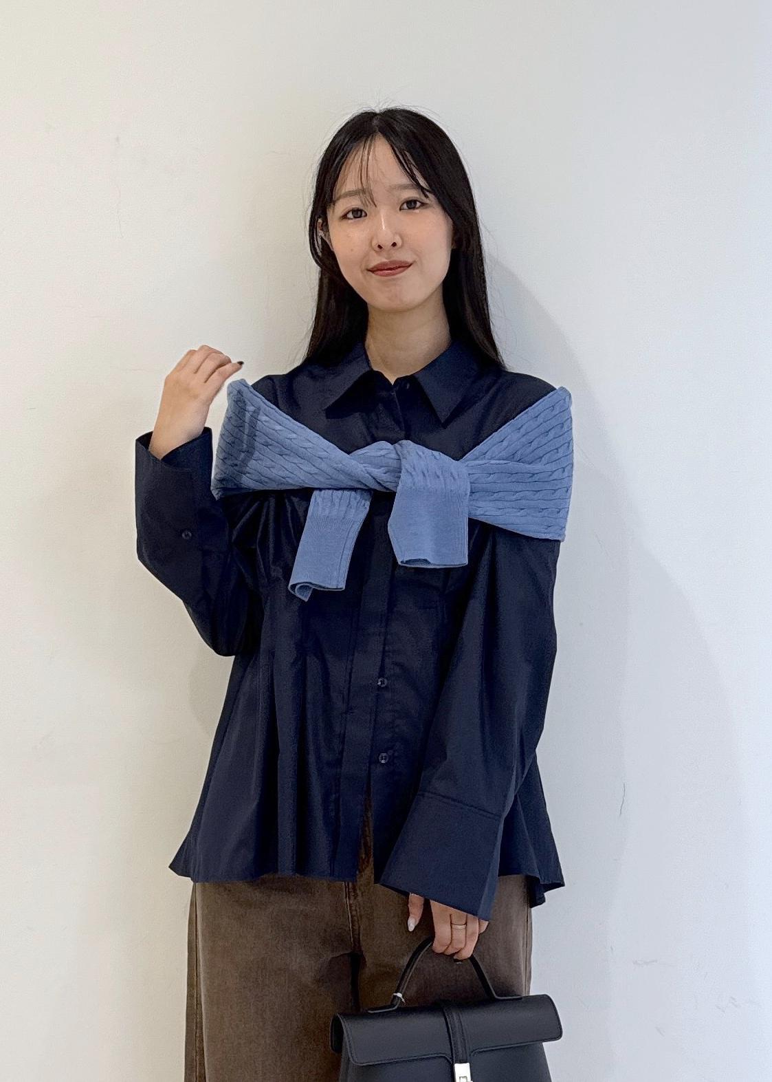 韓国で流行りのブルー×ブラウンコーデです