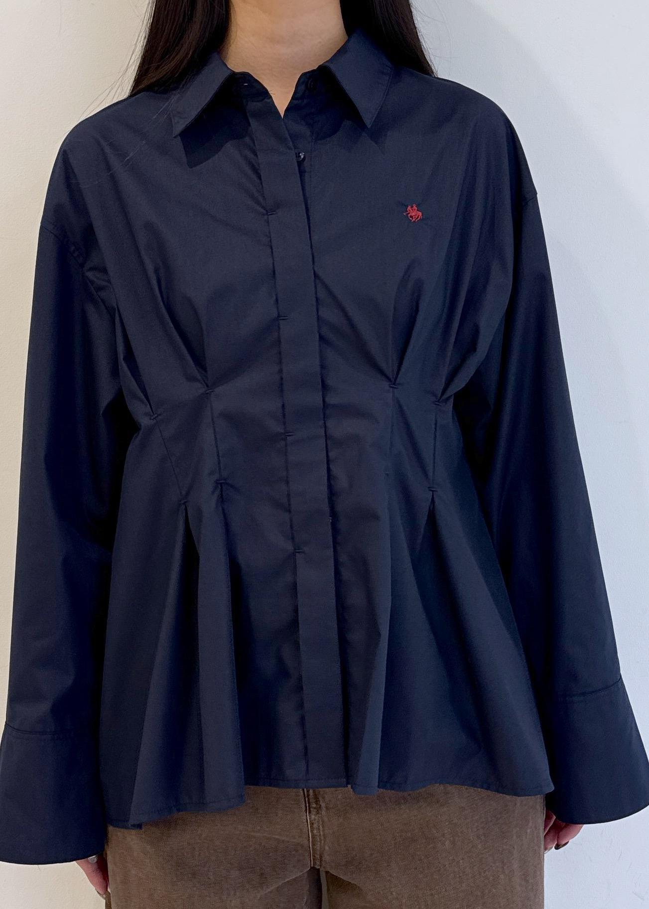 VIS【POLOBCS】VIS別注ウエストタックフレアシャツネイビー / F¥6,930レビューウエストマークがしっかりされているので、脚長効果◎