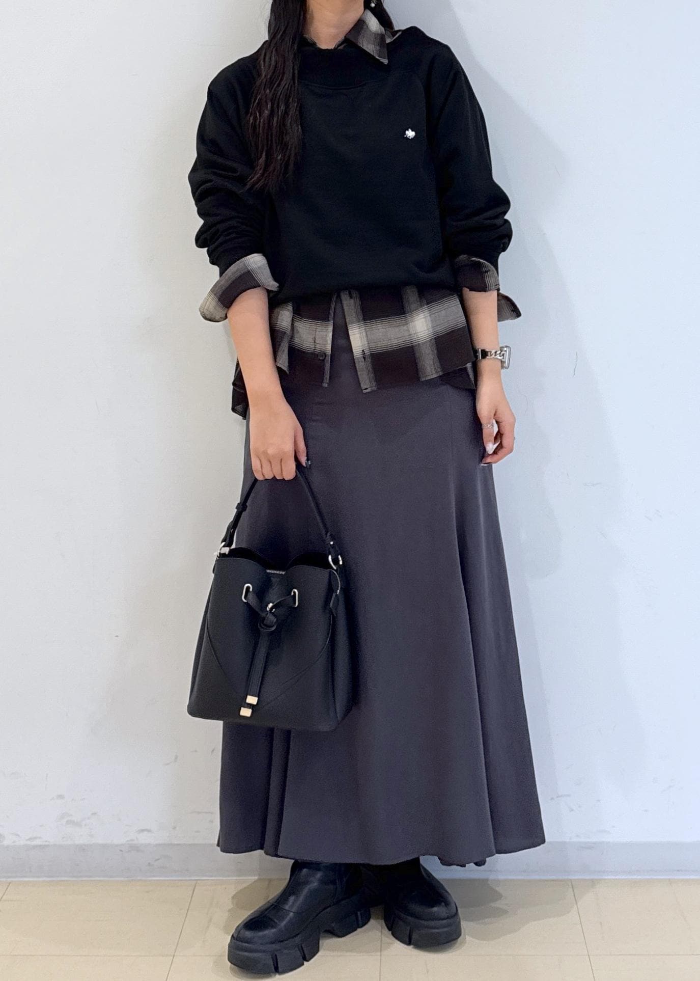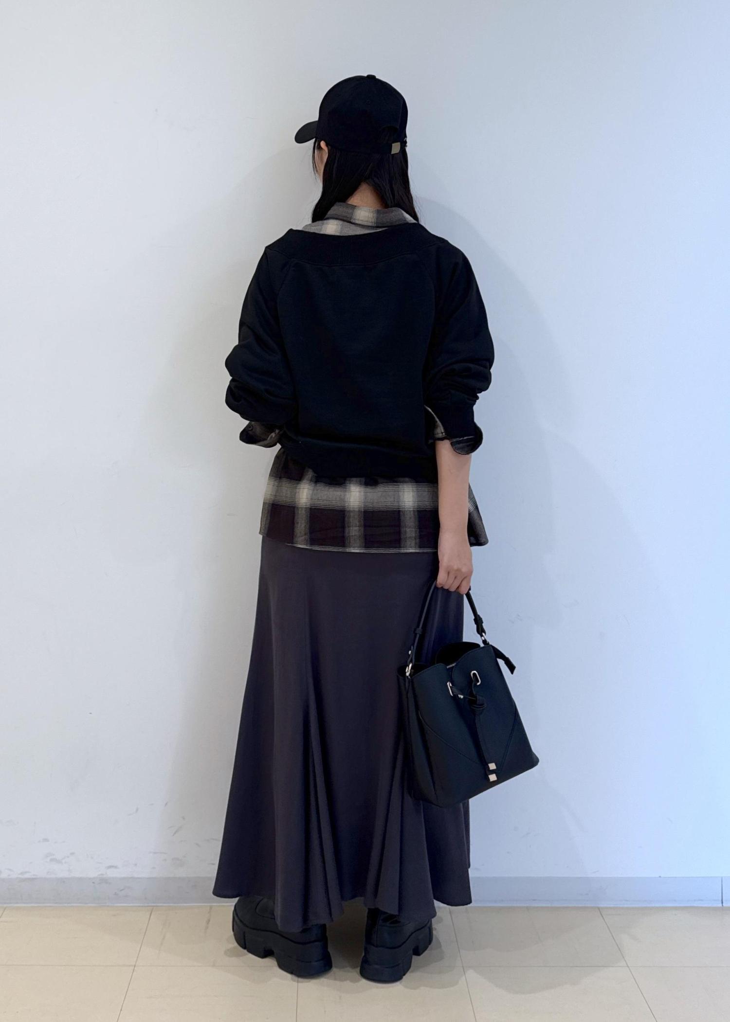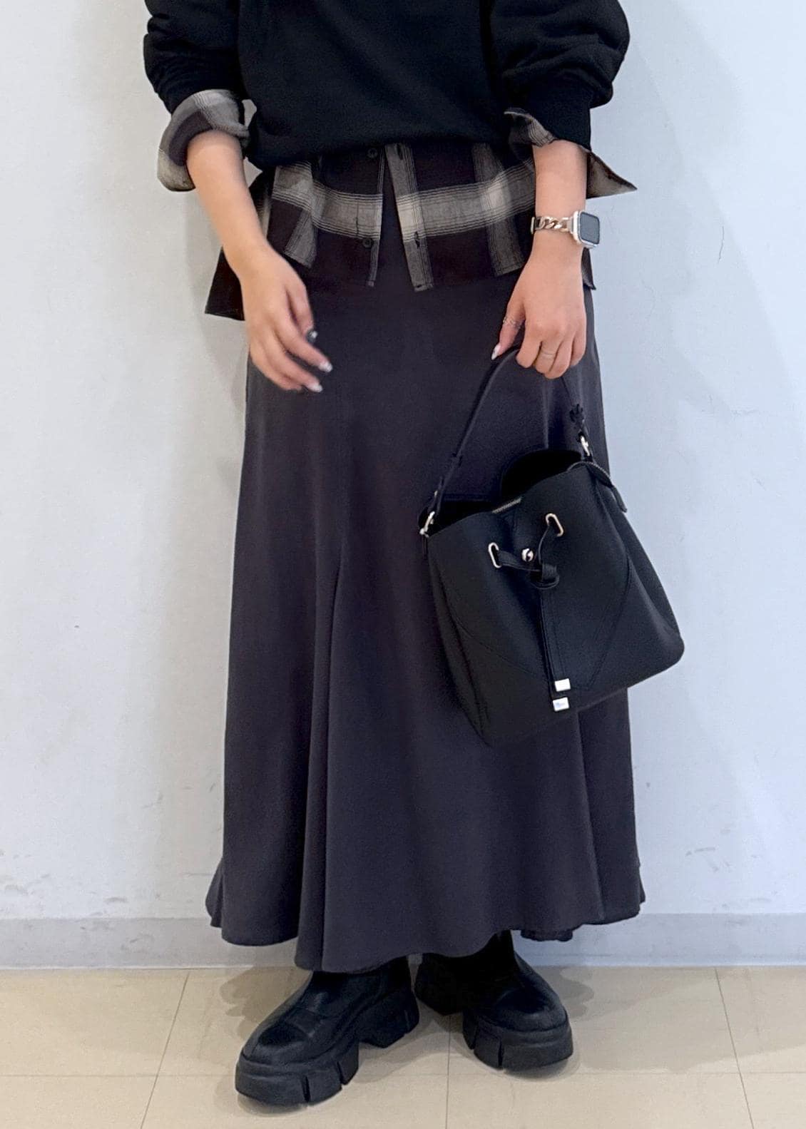 VISフィブリルサテン&レースアソートマーメイドスカートチャコール / F¥5,382レビュー骨格ウェーブでおしり周りが大きいですが、履く時に少し腰周りがきつく感じたので、下にあまり着込まずに履くのをおすすめします。シルエットはすごく綺麗で、柔らかい生地なので歩く度にフワッと広がります。