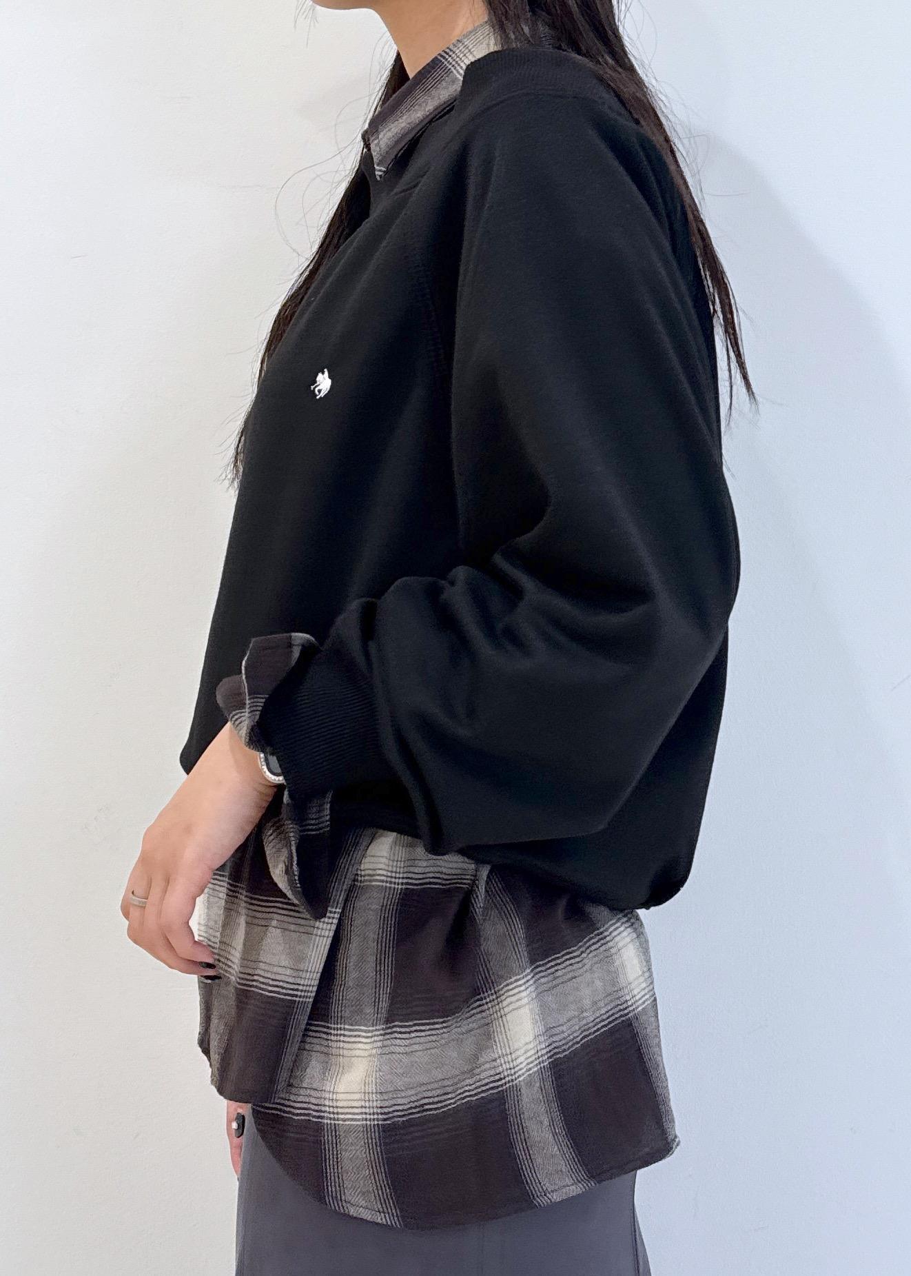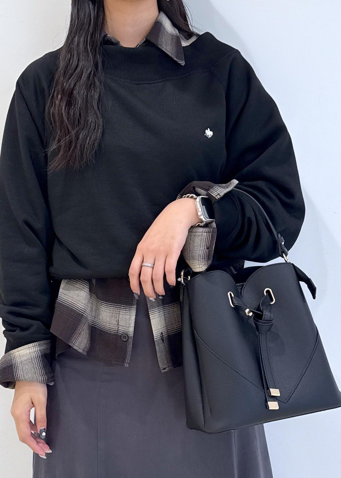 VIS【POLO BCS】VIS別注ワンショルダースウェットトップスブラック / F¥5,940レビュー生地がすごく柔らかくて、着心地最高でした。なで肩の私が着ても、ずり落ちてくることなく程よい肌見せ具合で着れました。袖部分はリブになっているので、まくっても落ちてこないのも嬉しいです。