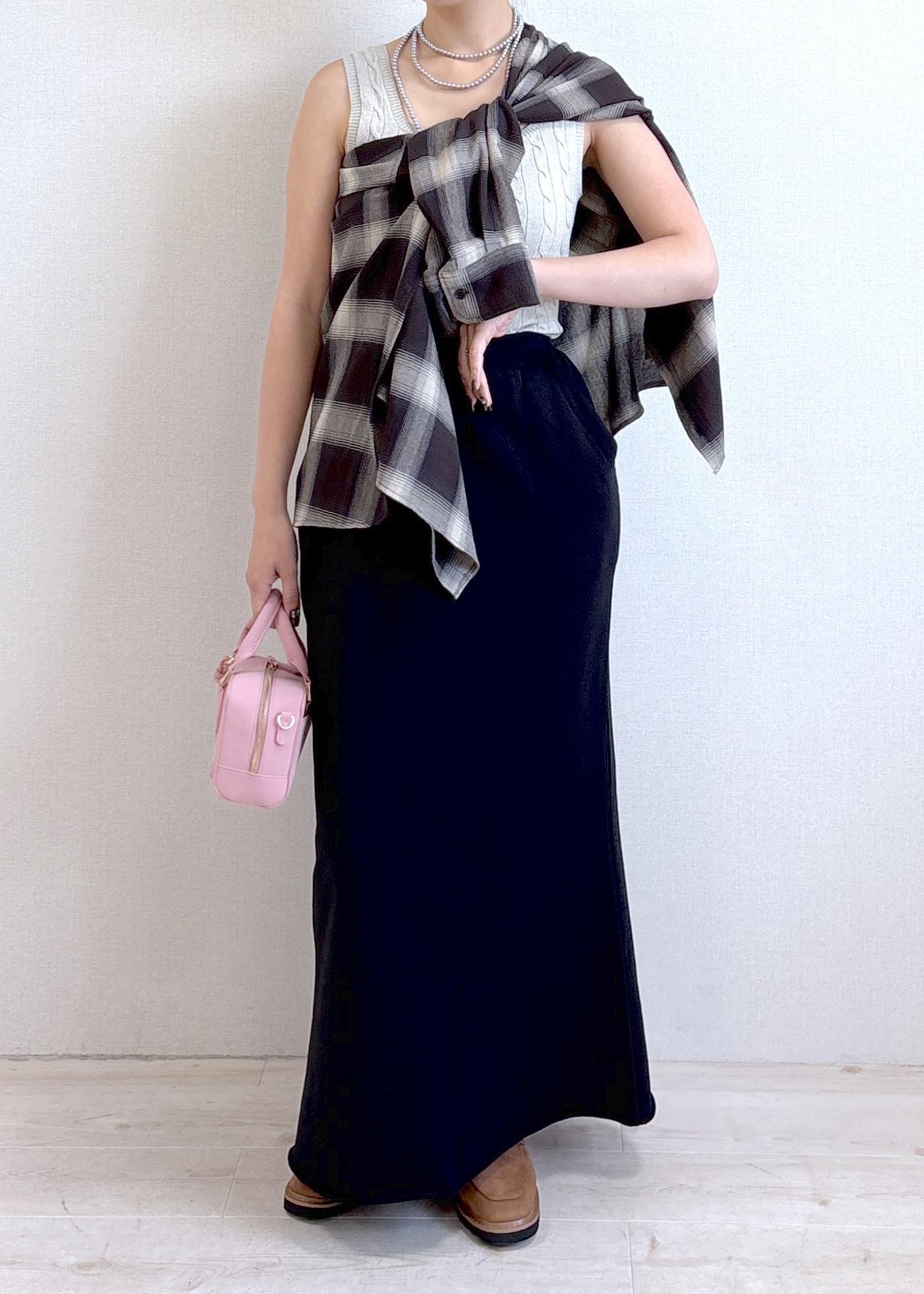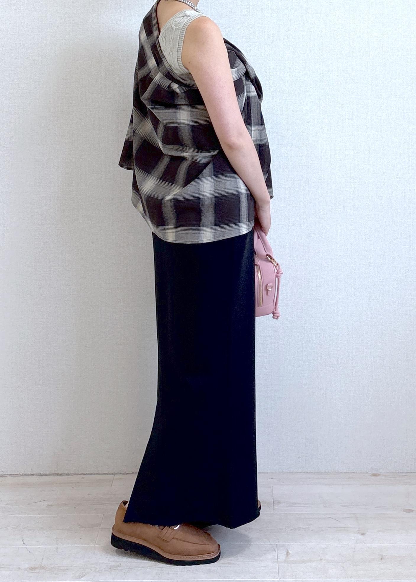 ウエストに紐がついているので腰位置が調整できますが、わたしは少しローウエスト気味に履いてマキシ丈にするのがお気に入りです♡ -