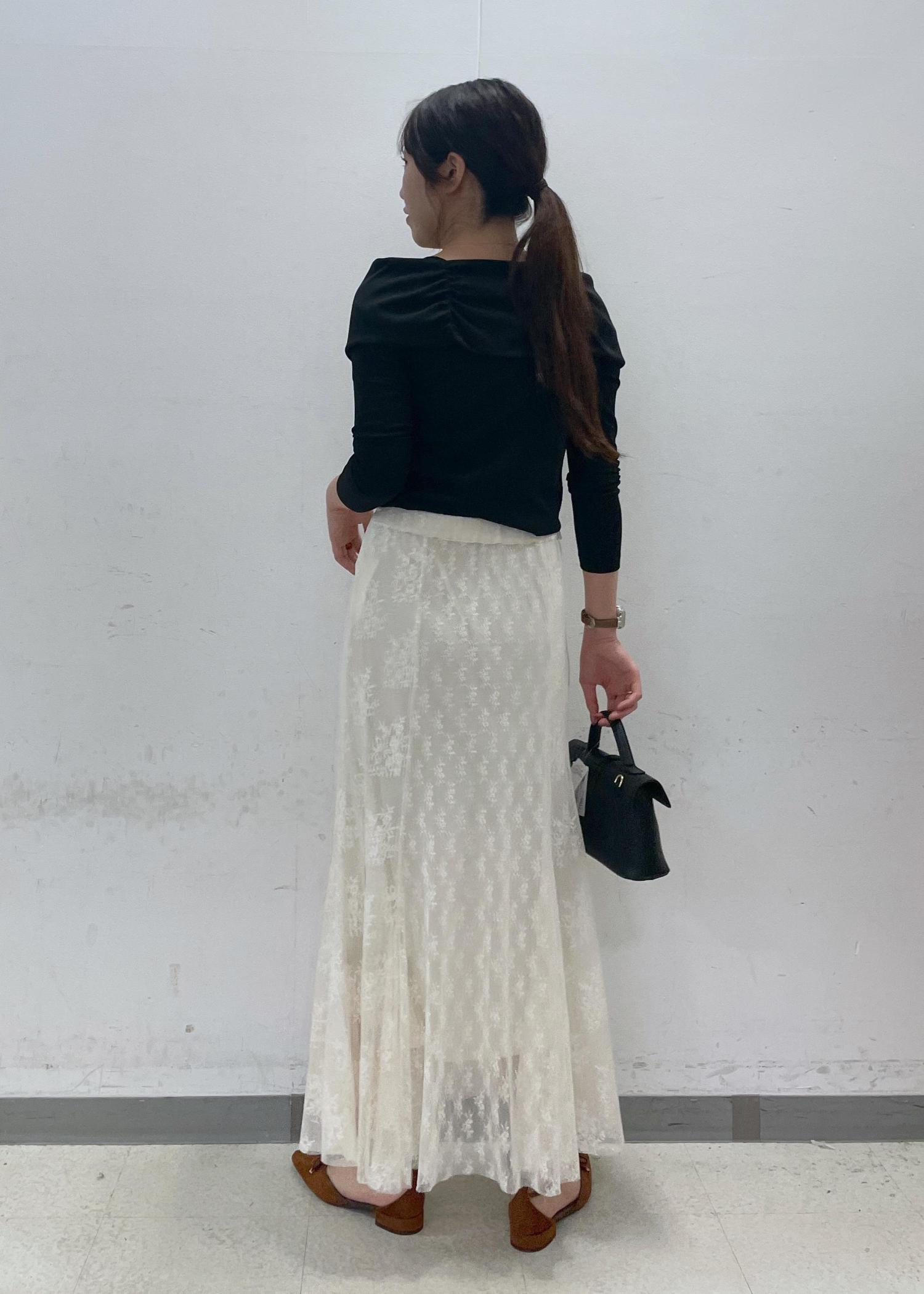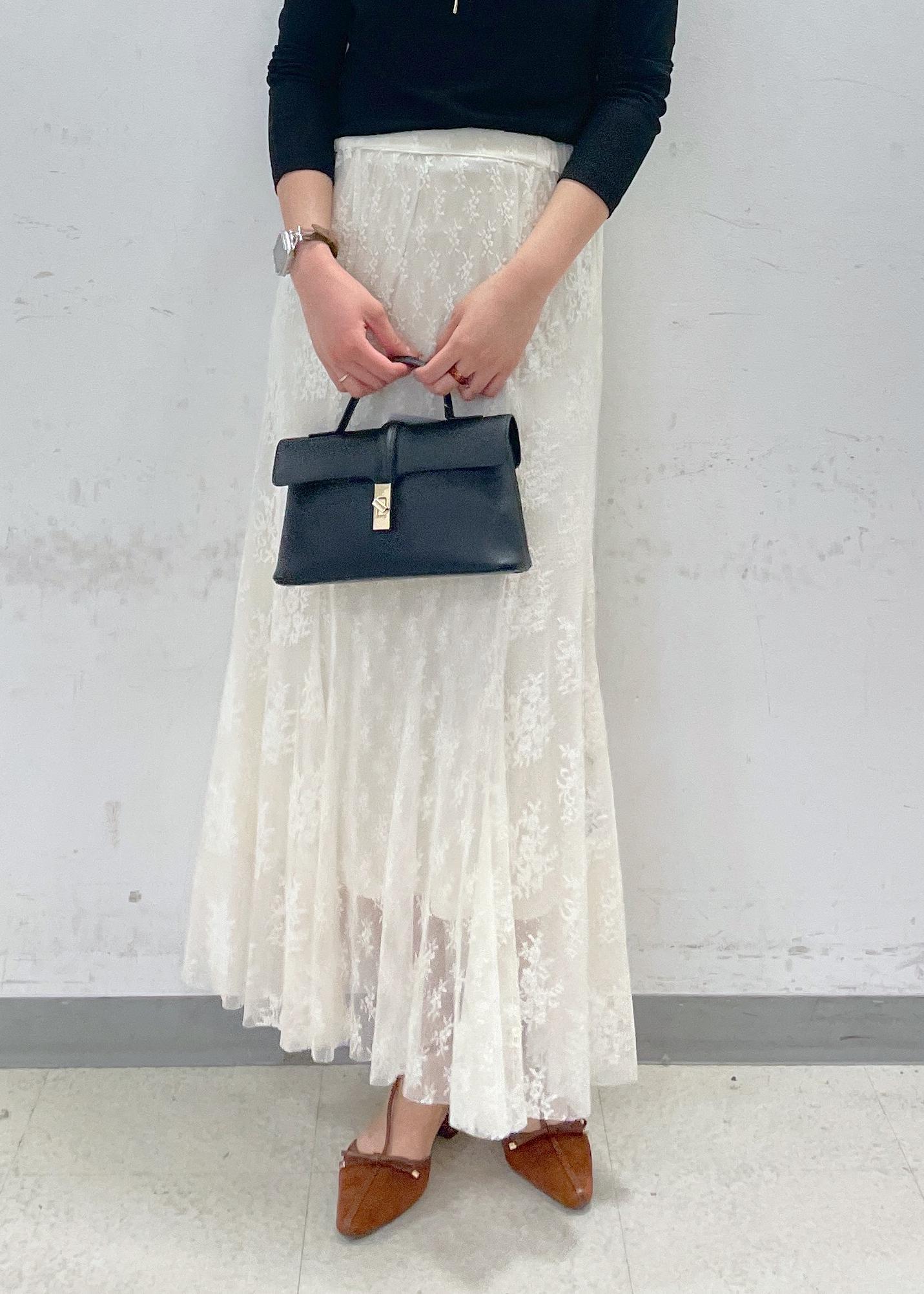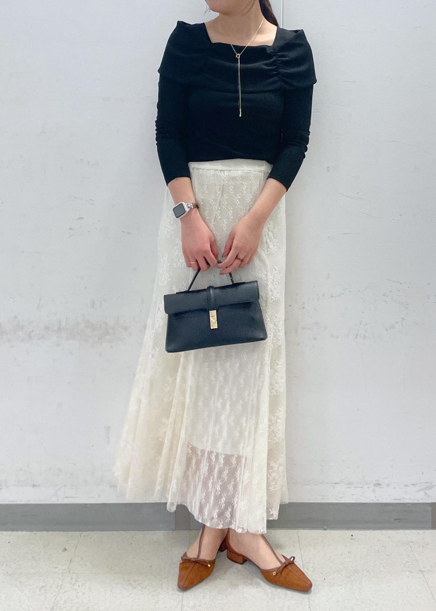レースのスカートか目を引くお姉さんキレイめコーデです!