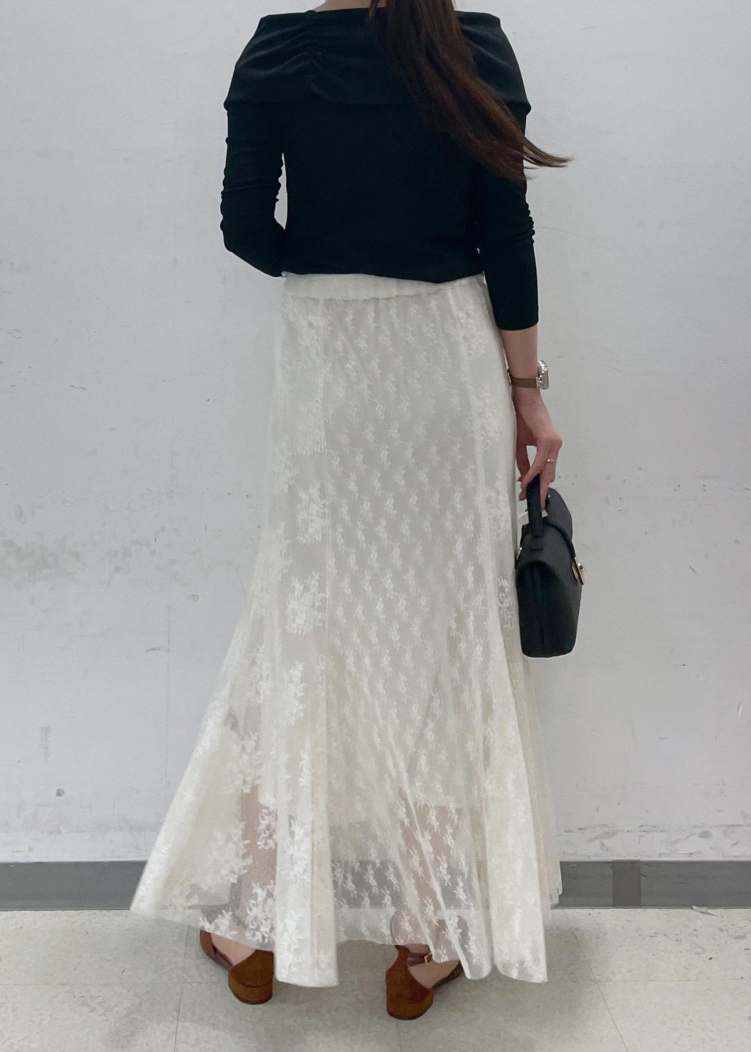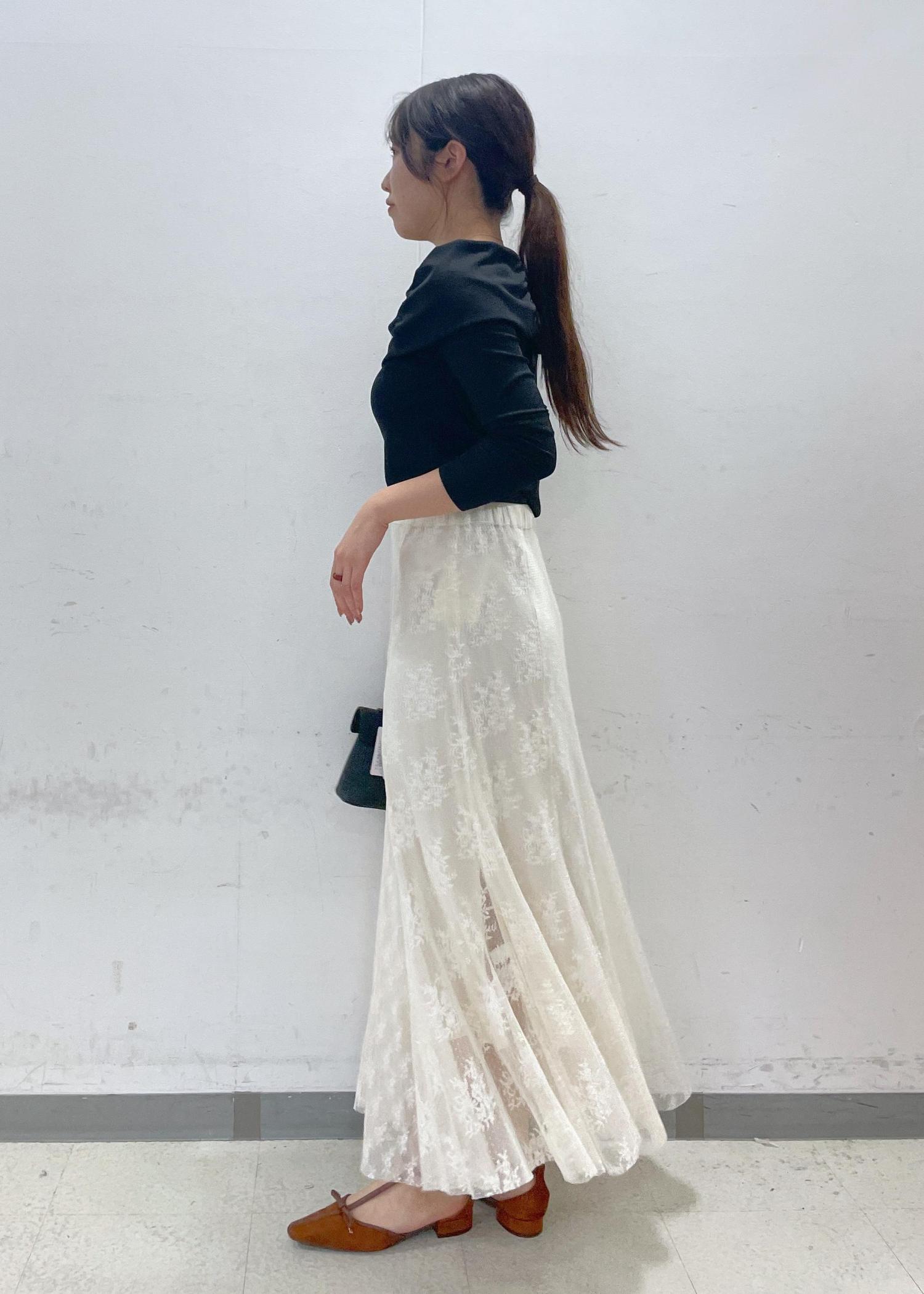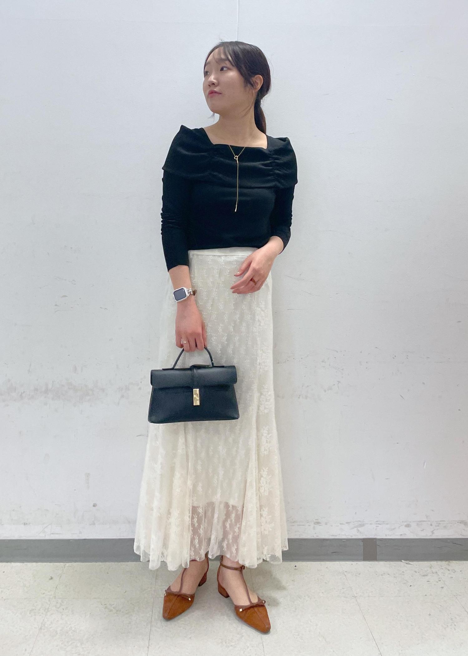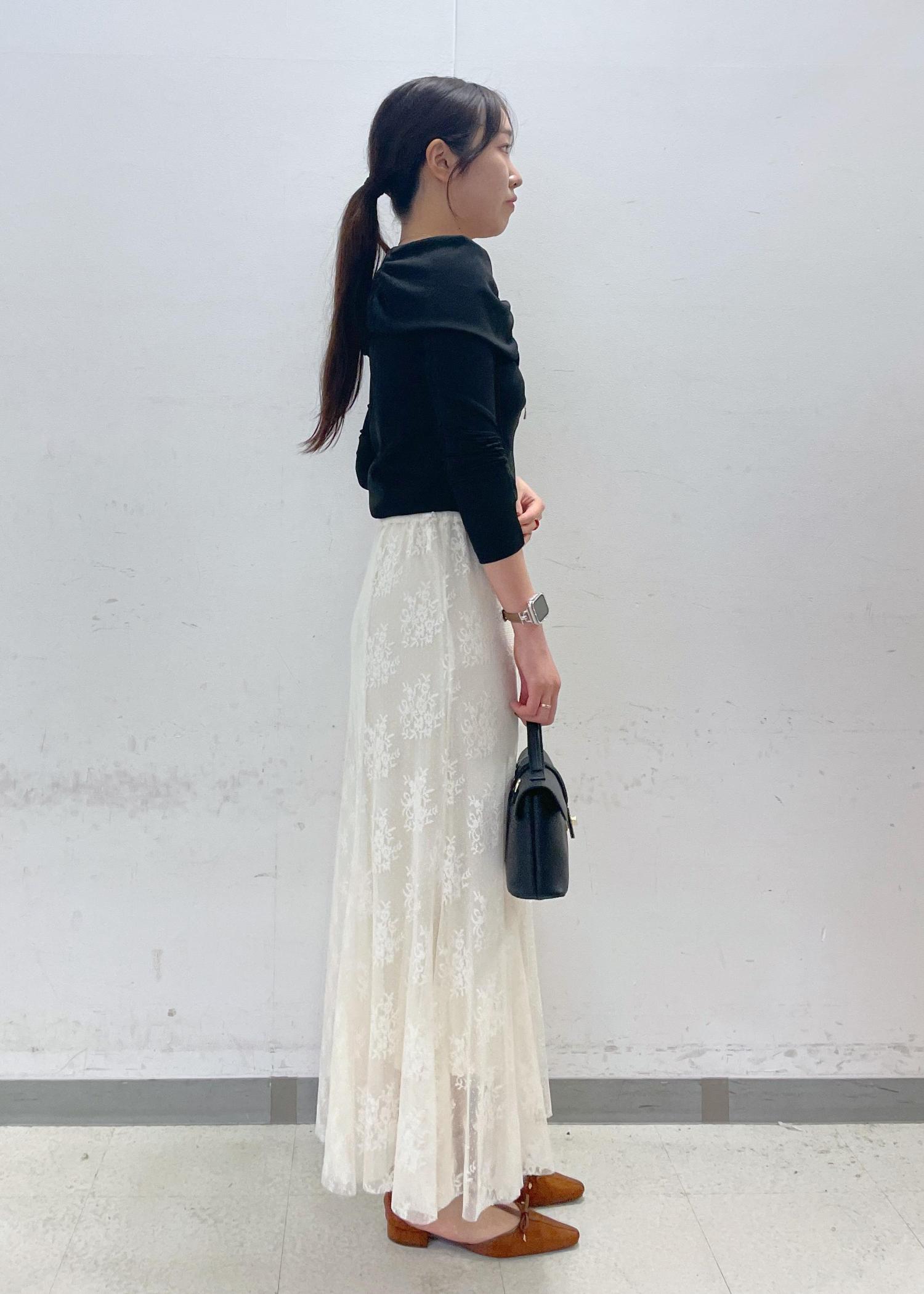 レースのスカートか目を引くお姉さんキレイめコーデです!