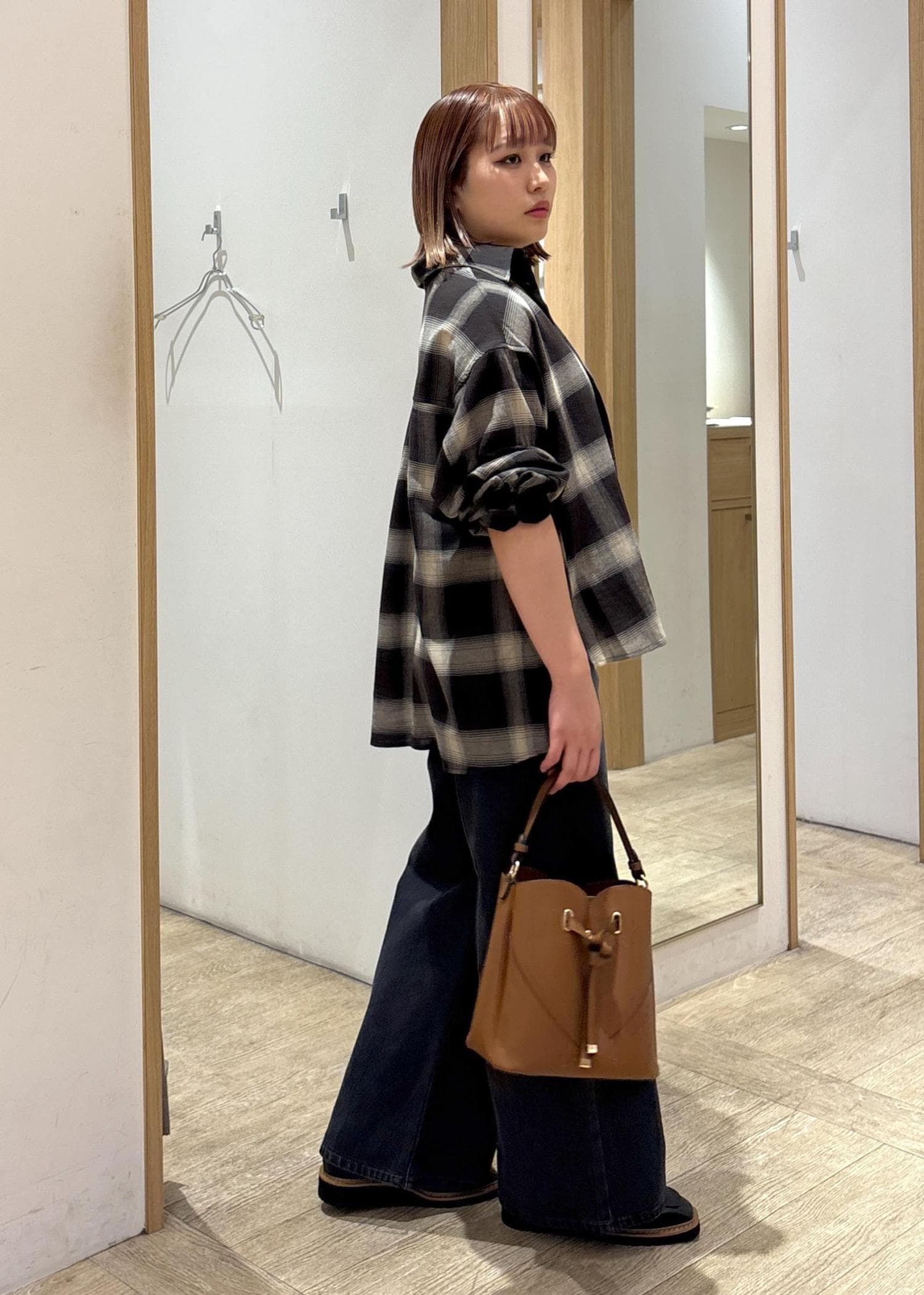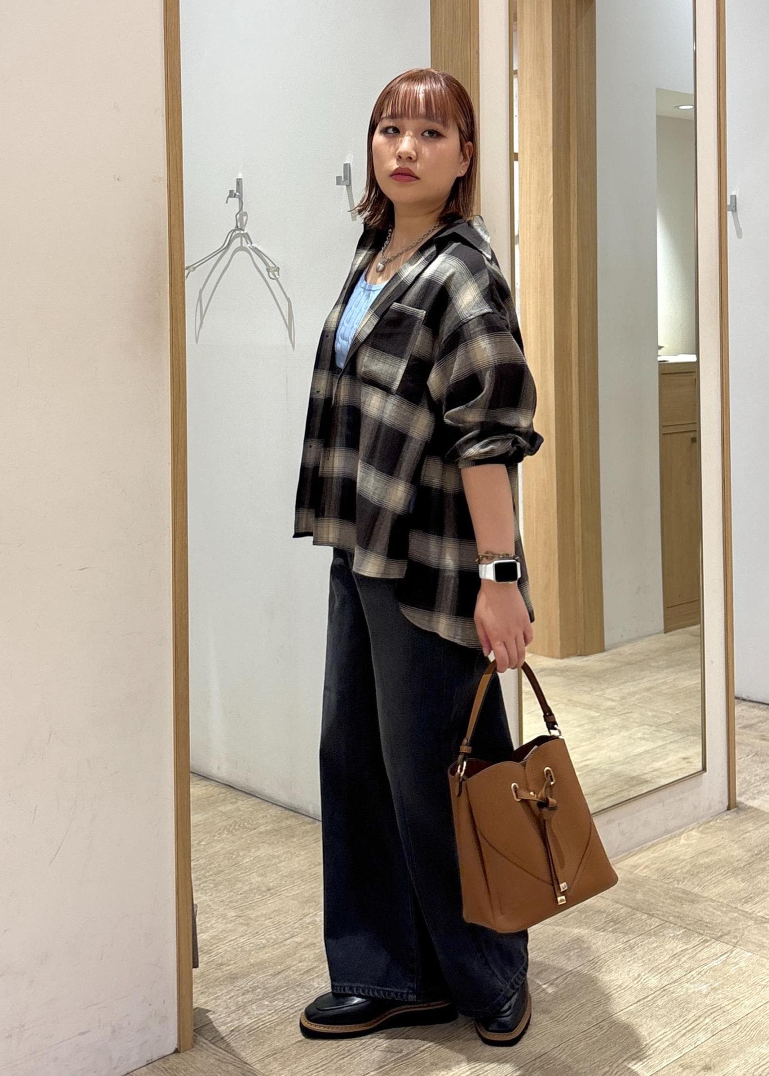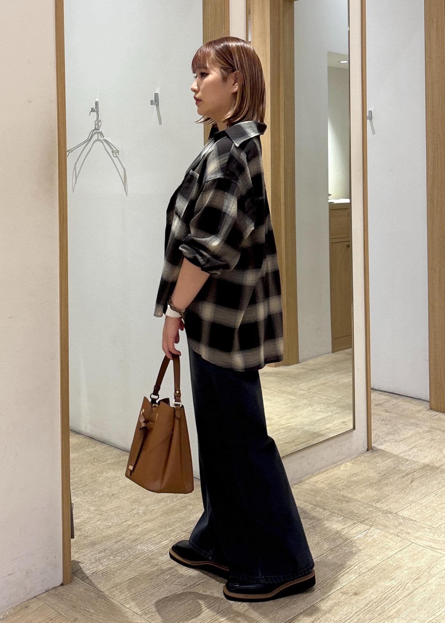 チェックシャツコーデ