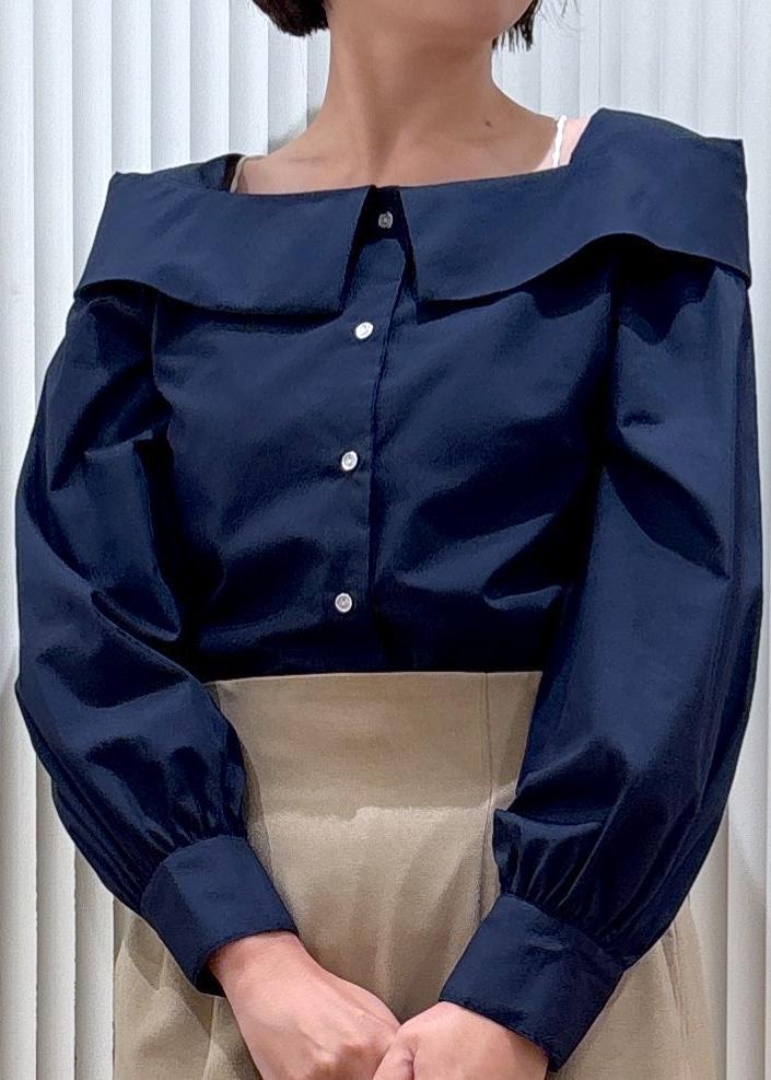 VISオフショルライクロングスリーブブラウス/イージーケアネイビー / F¥3,842レビュー少しハリ感のある素材でポリエステルが入っているのでシワになりにくく洗濯機OK!