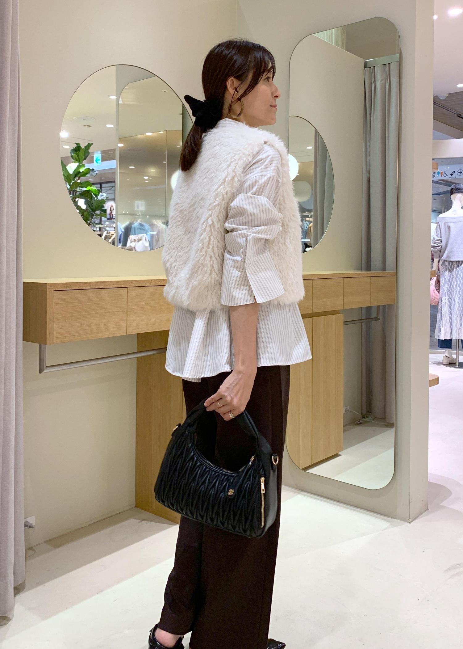 裏地が付いているので、ファーがインナーに付く心配もなし◎カットソーやシャツ、ワンピースの上からでもコーディネートしやすいですよ。 -