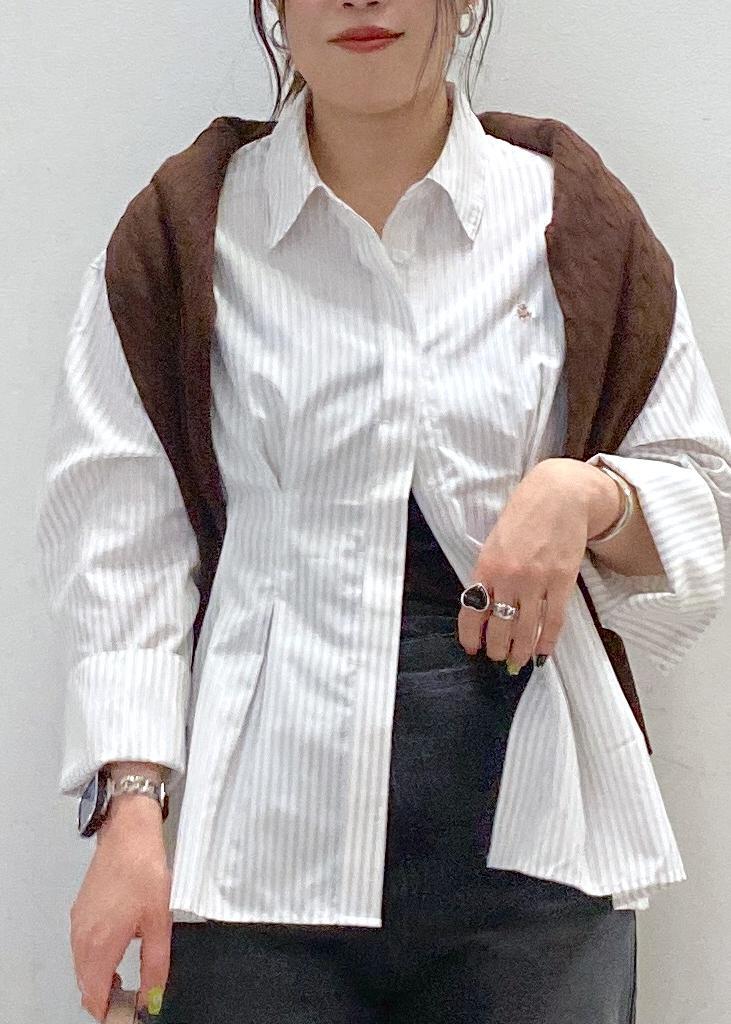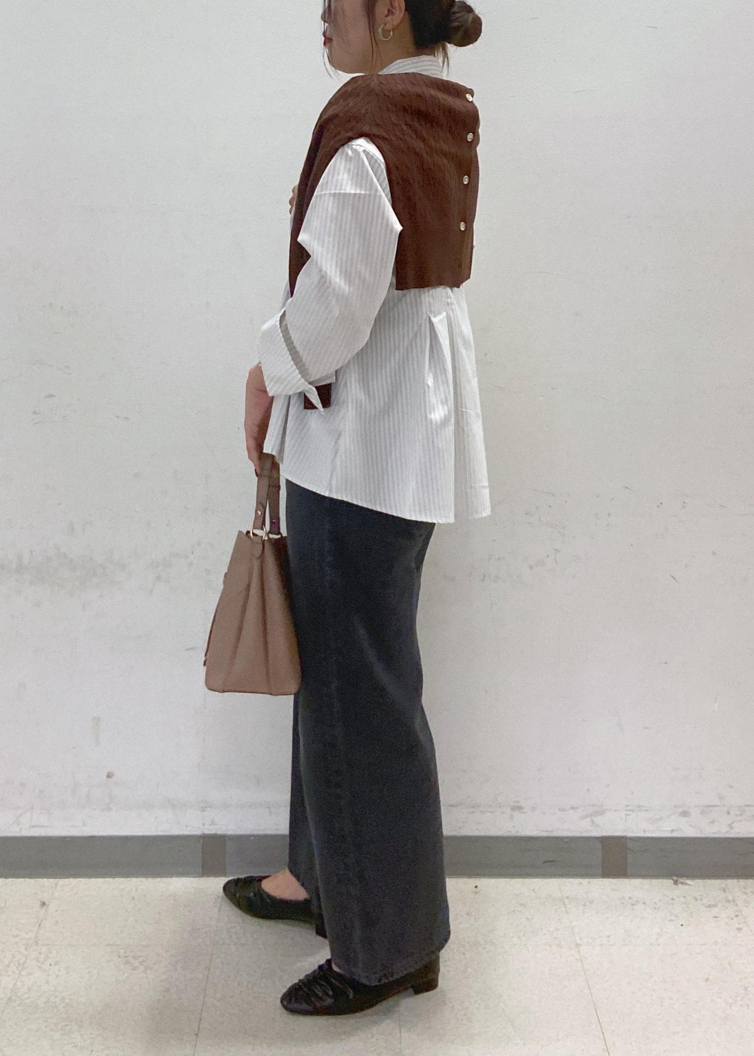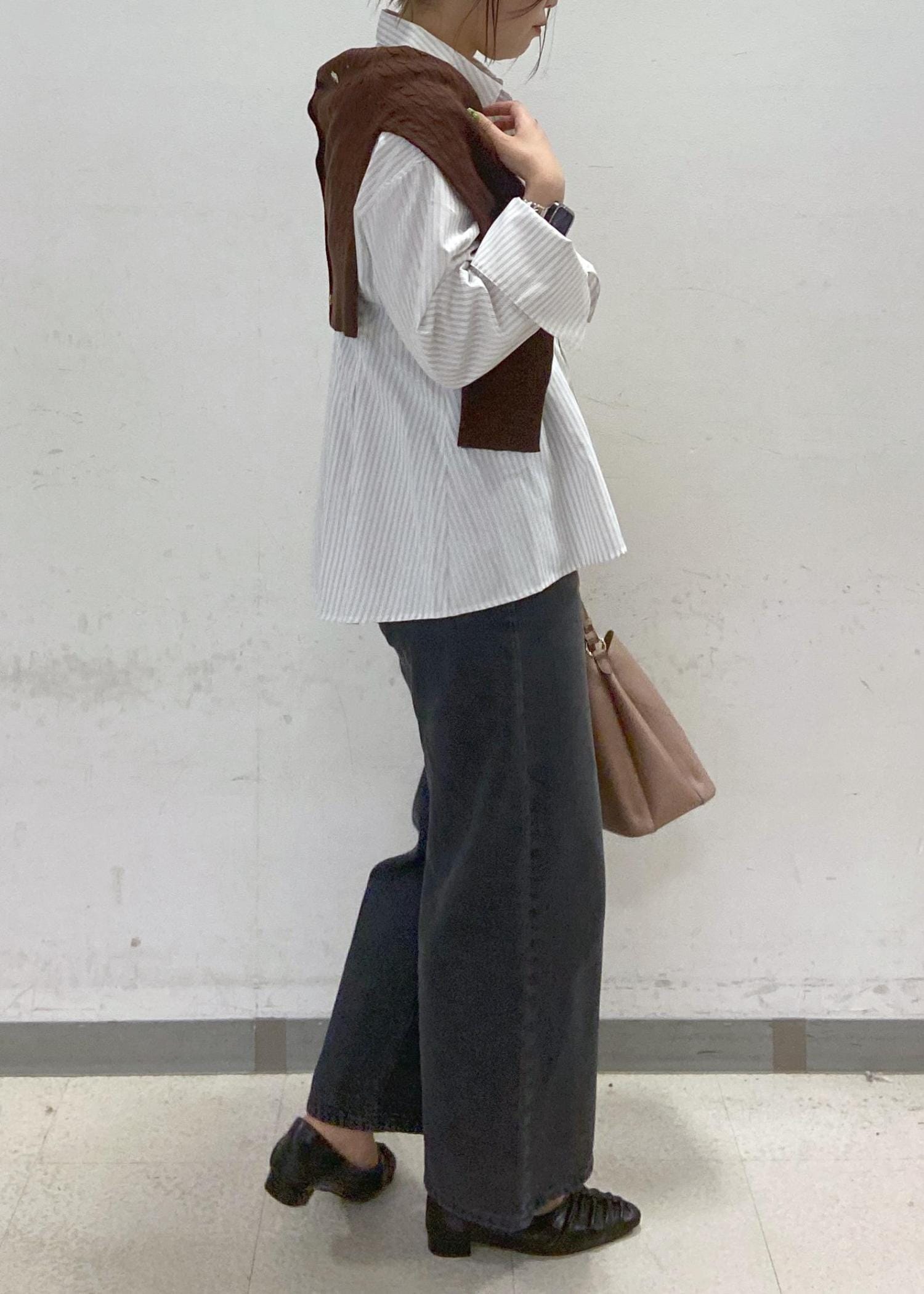 私は骨格ストレートなので、ボタンを外すと抜け感ができてスッキリ見えやすかったです。 -