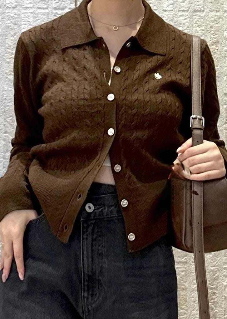 VIS【POLO BCS】VIS別注ミニケーブルポロ襟ニットカーディガンダークブラウン / F¥7,150レビューPOLOとコラボアイテム第三弾!