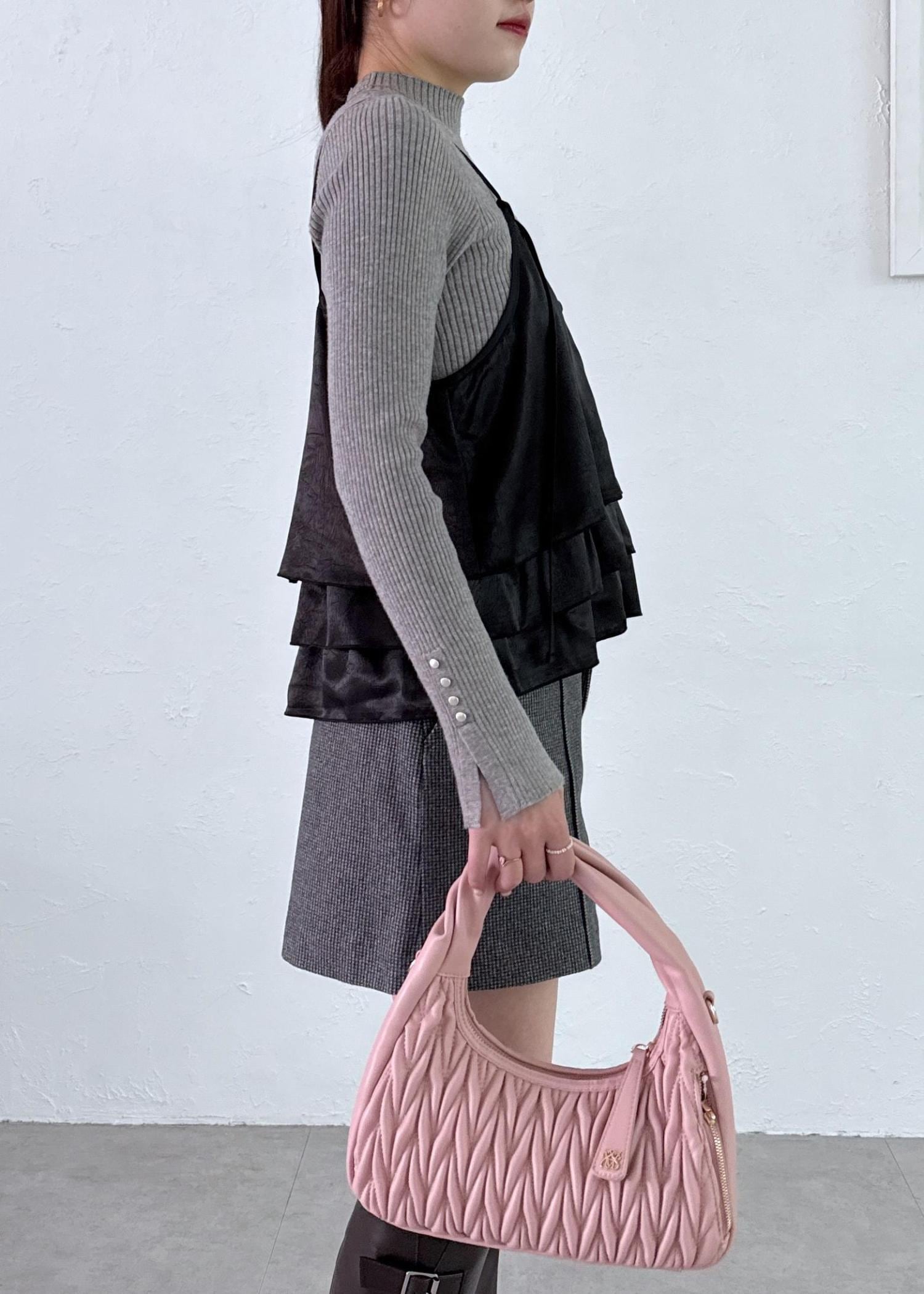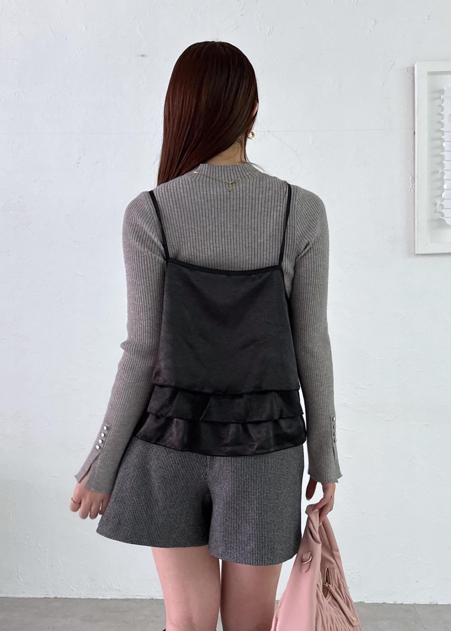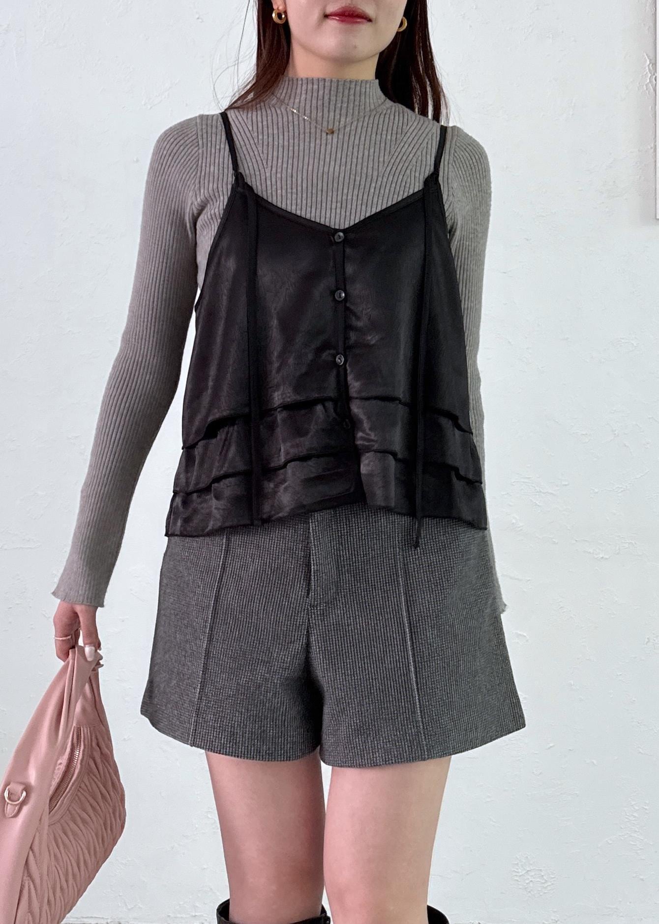 VIS【WEB限定】サテンフリルビスチェ/2WAYブラック / F¥4,389レビューレイヤードコーデにおすすめのビスチェです!