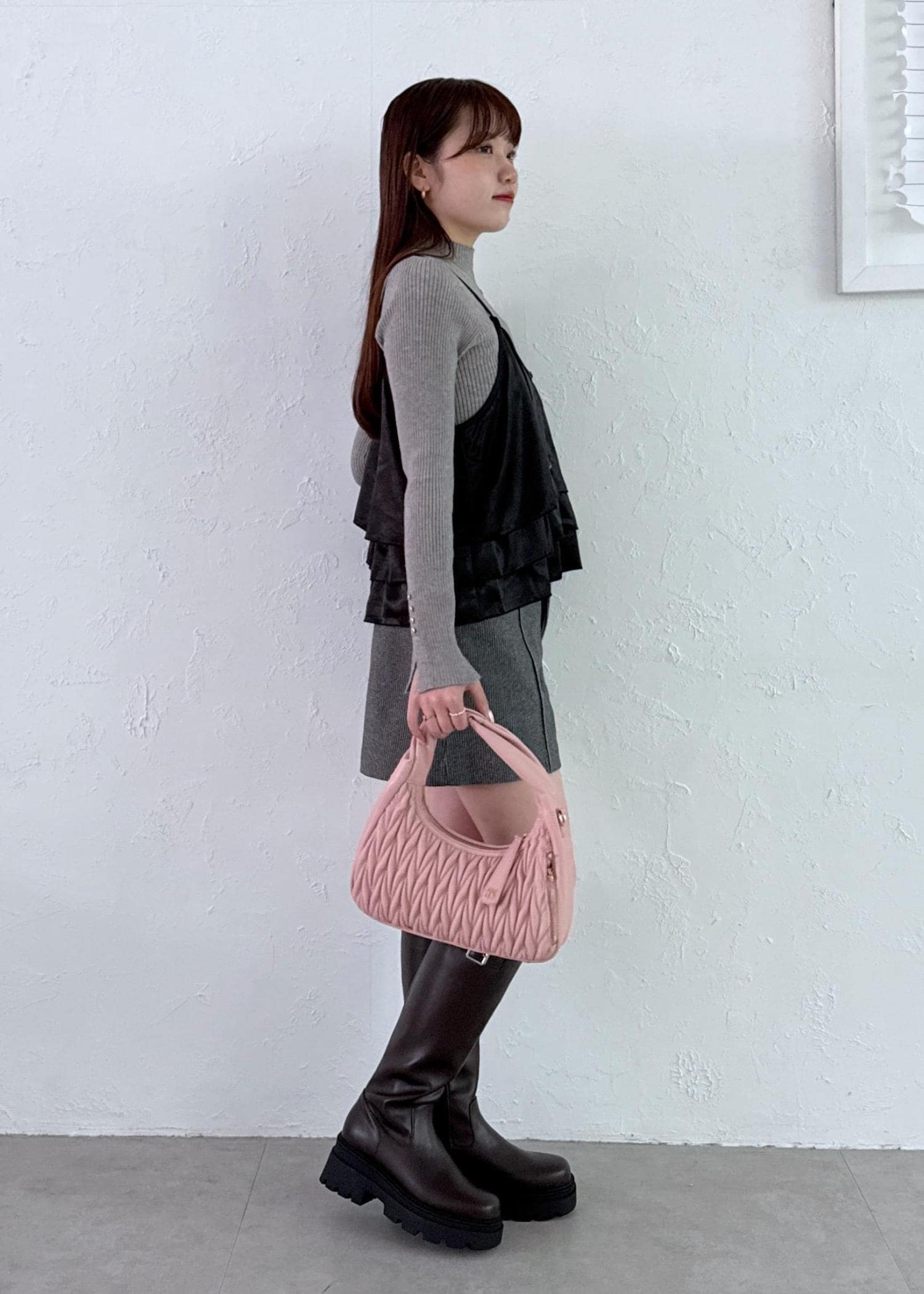 VIS【2WAY】ねじりハンドルキルティングバッグピンク系 / F¥7,909レビュー手持ちの部分が、やや広めなので肩がけにしやすいです!割と大容量に入るので手持ちのバッグとして使いやすいです◎