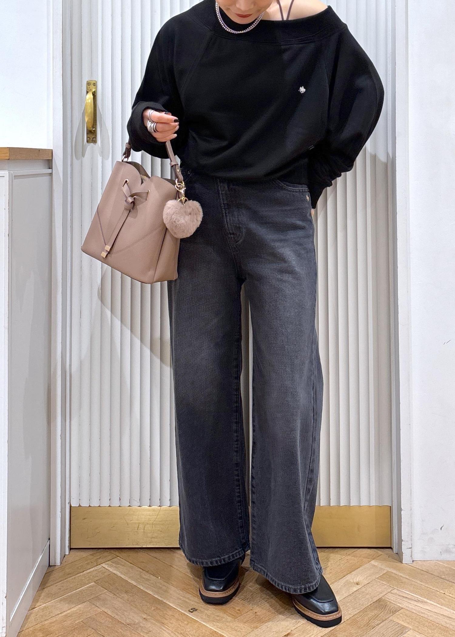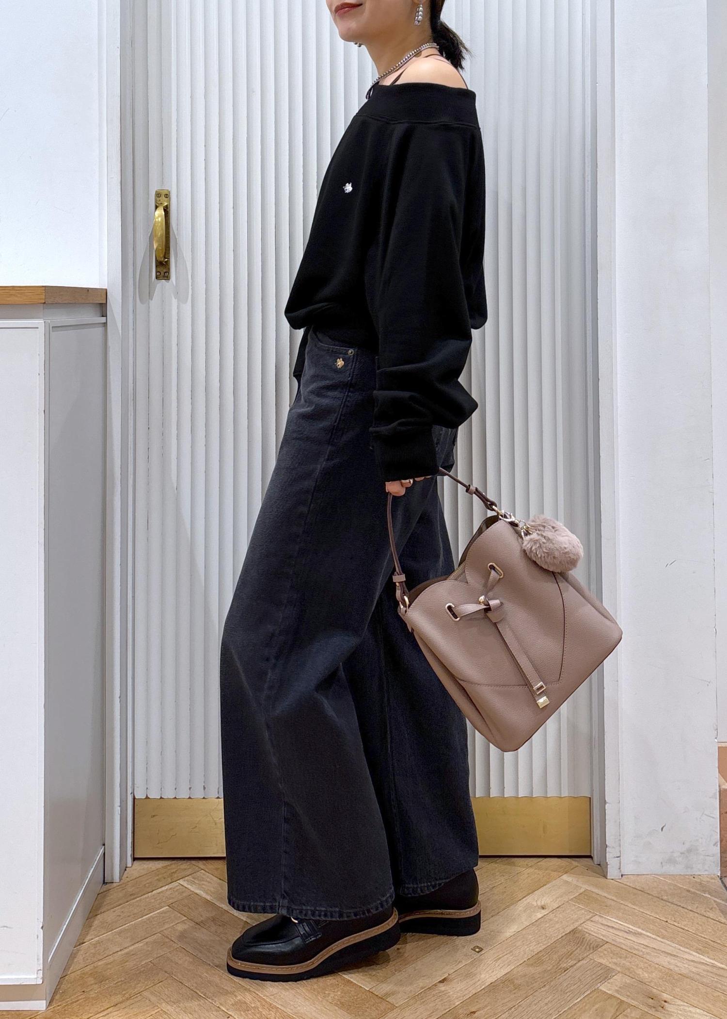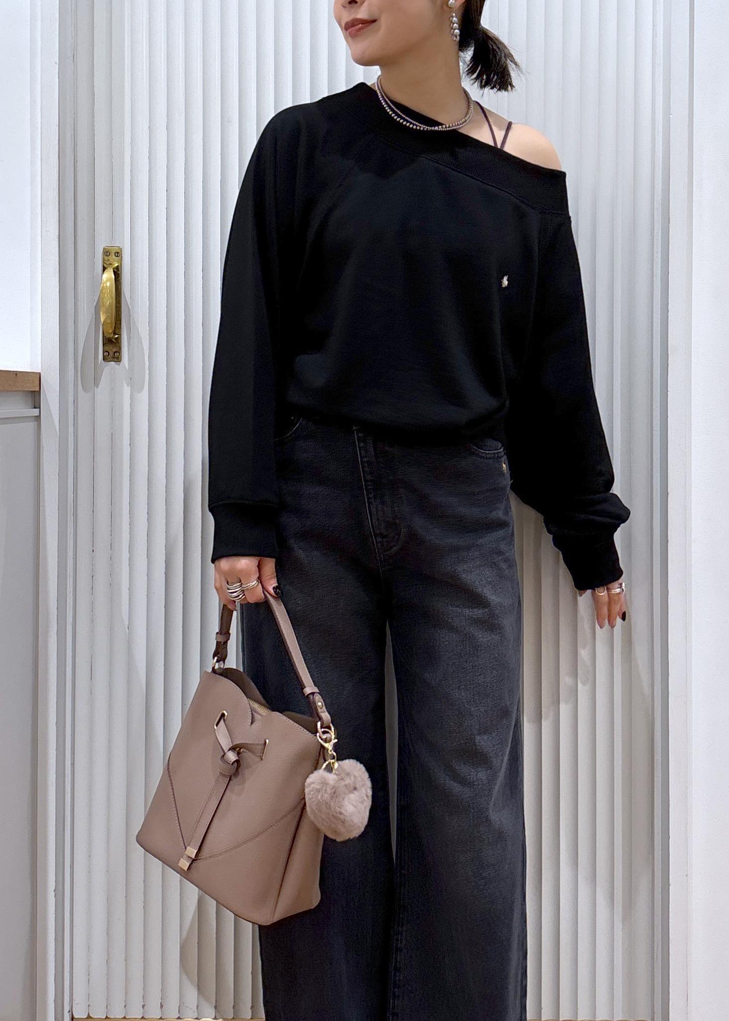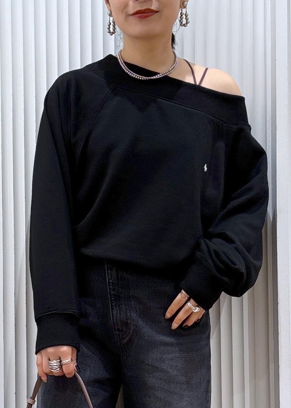 VIS【POLO BCS】VIS別注ワンショルダースウェットトップスブラック / F¥5,940レビュー着丈も短過ぎず、全体のシルエットは緩めでリラックスムード。肩を落としてもそのまま着ても可愛いスウェット。肉厚過ぎないので春まで長く着用出来るのも嬉しいポイントです。