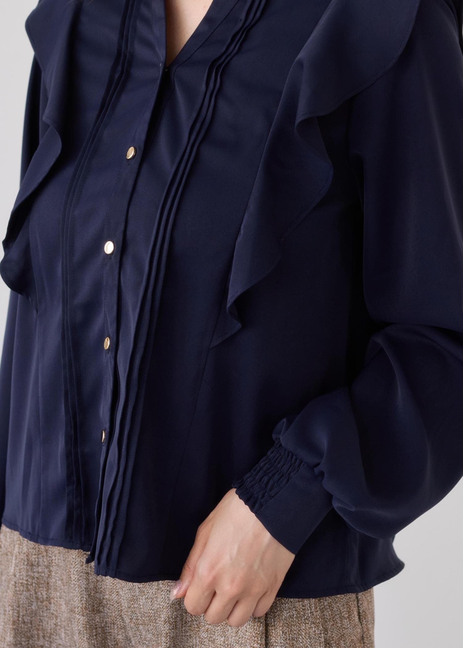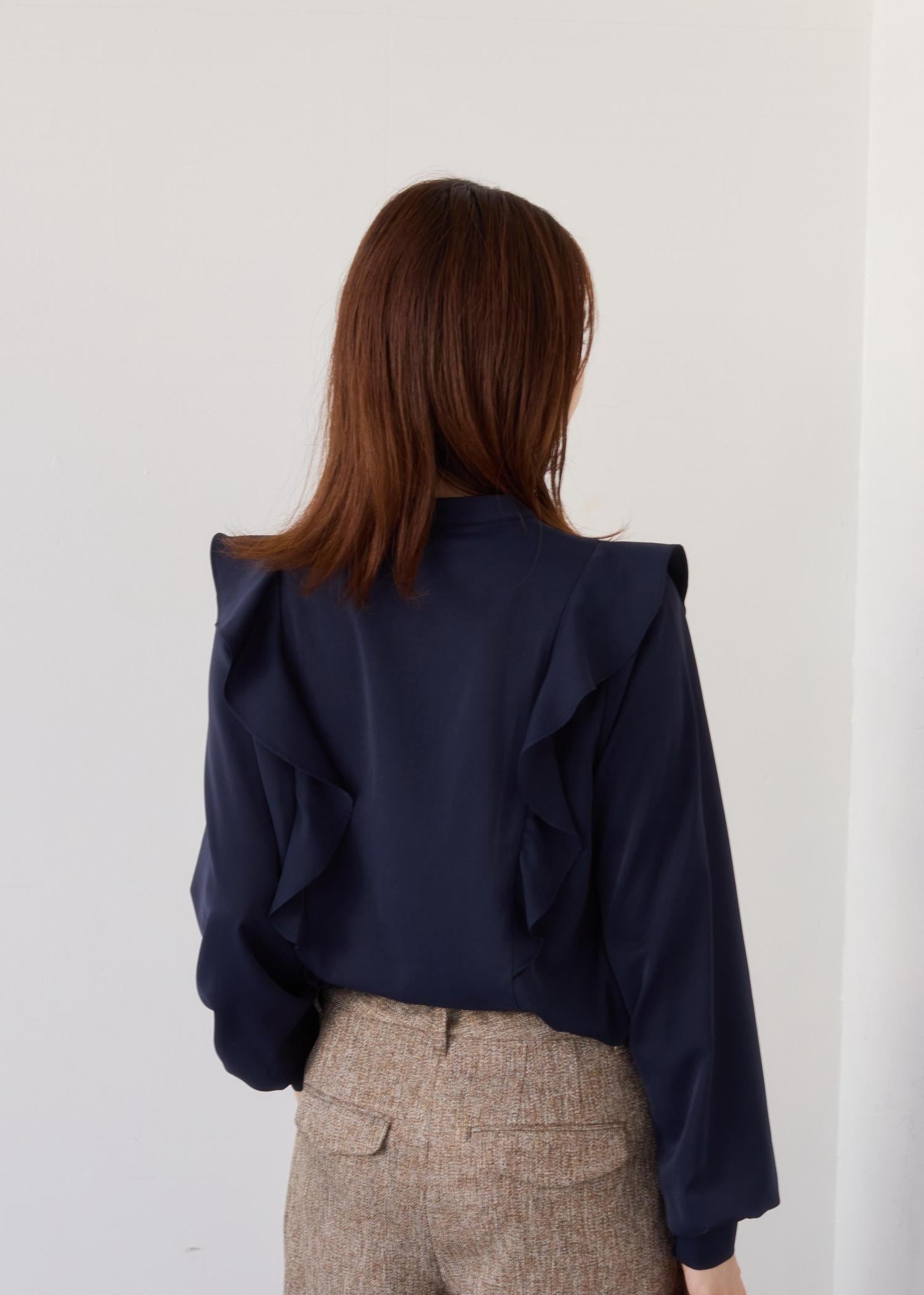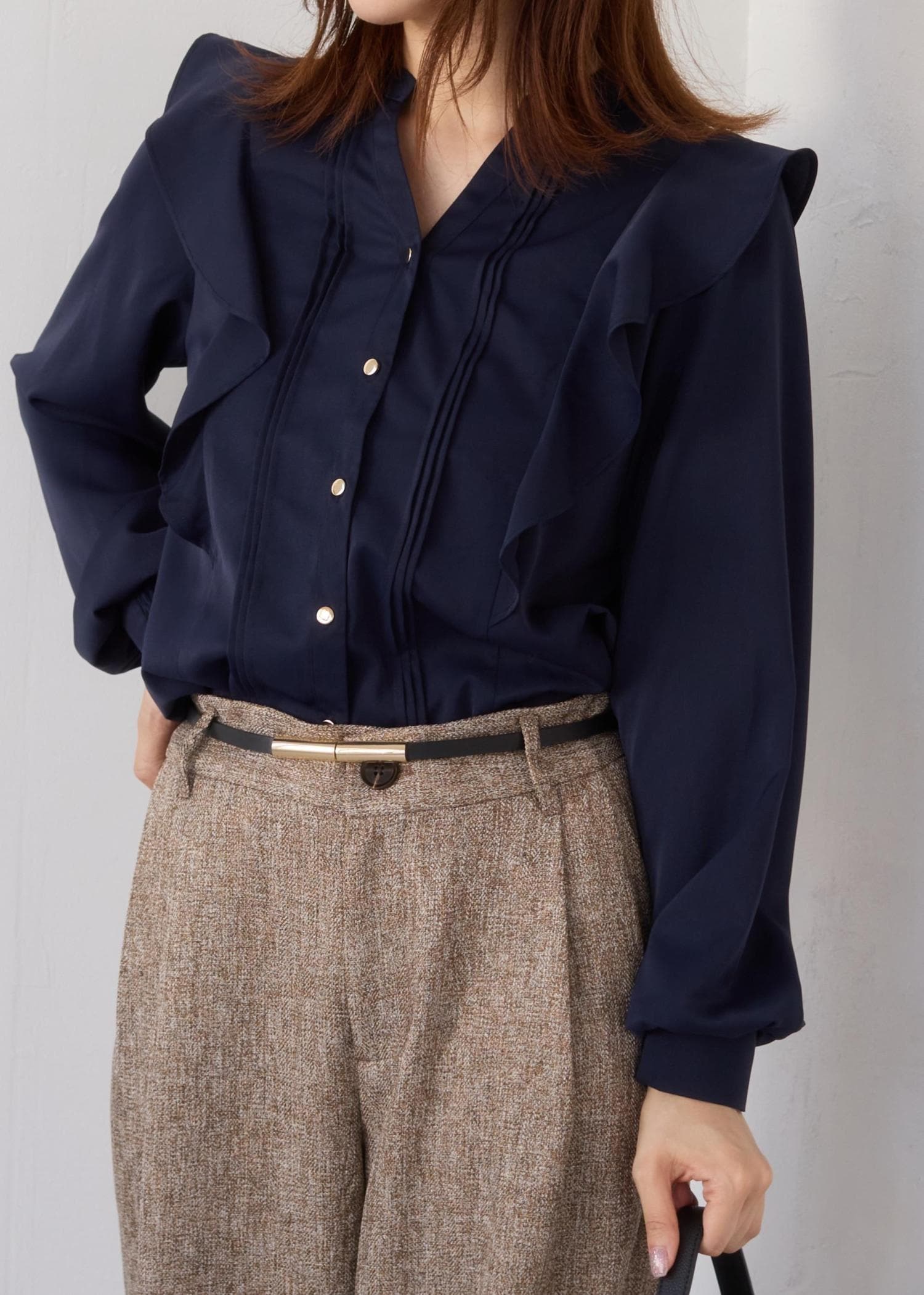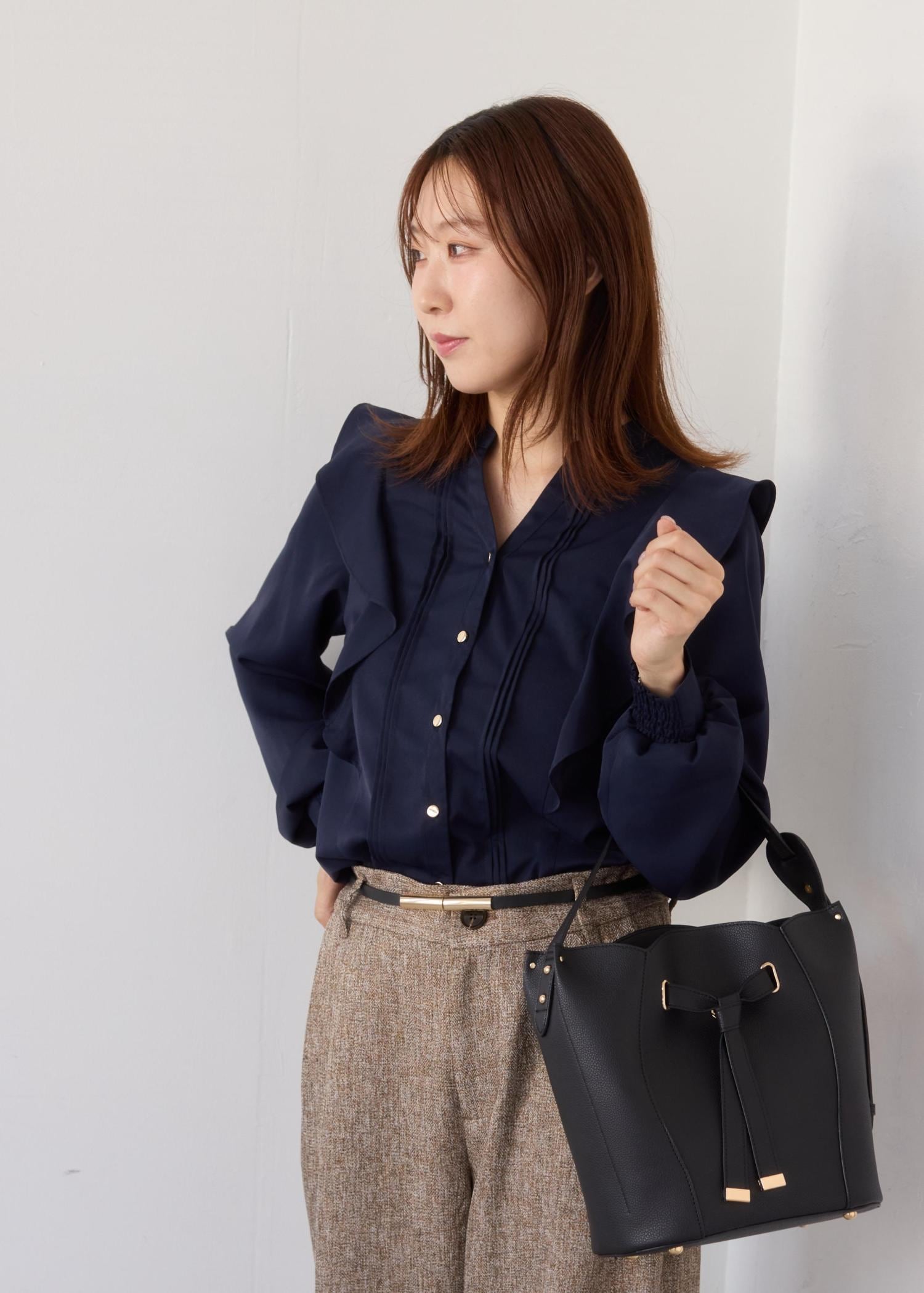 VIS【WEB限定】スキッパーフリルデザインブラウスネイビー / F¥3,842レビューフリルデザインが華やぎのあるブラウス。