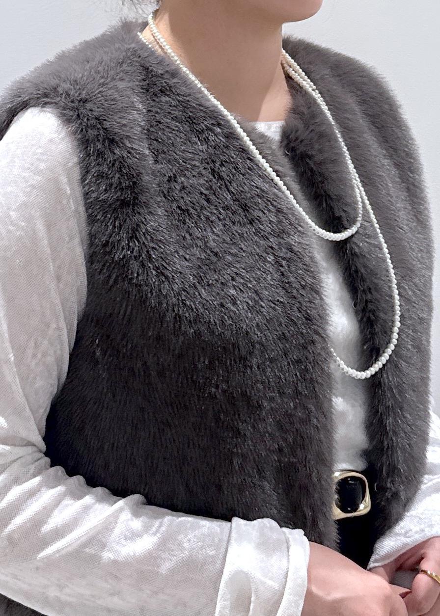 VISアソートファーショートベストグレー系 / F¥6,229レビューふわっとした柔らかい生地のファーベスト⭐︎