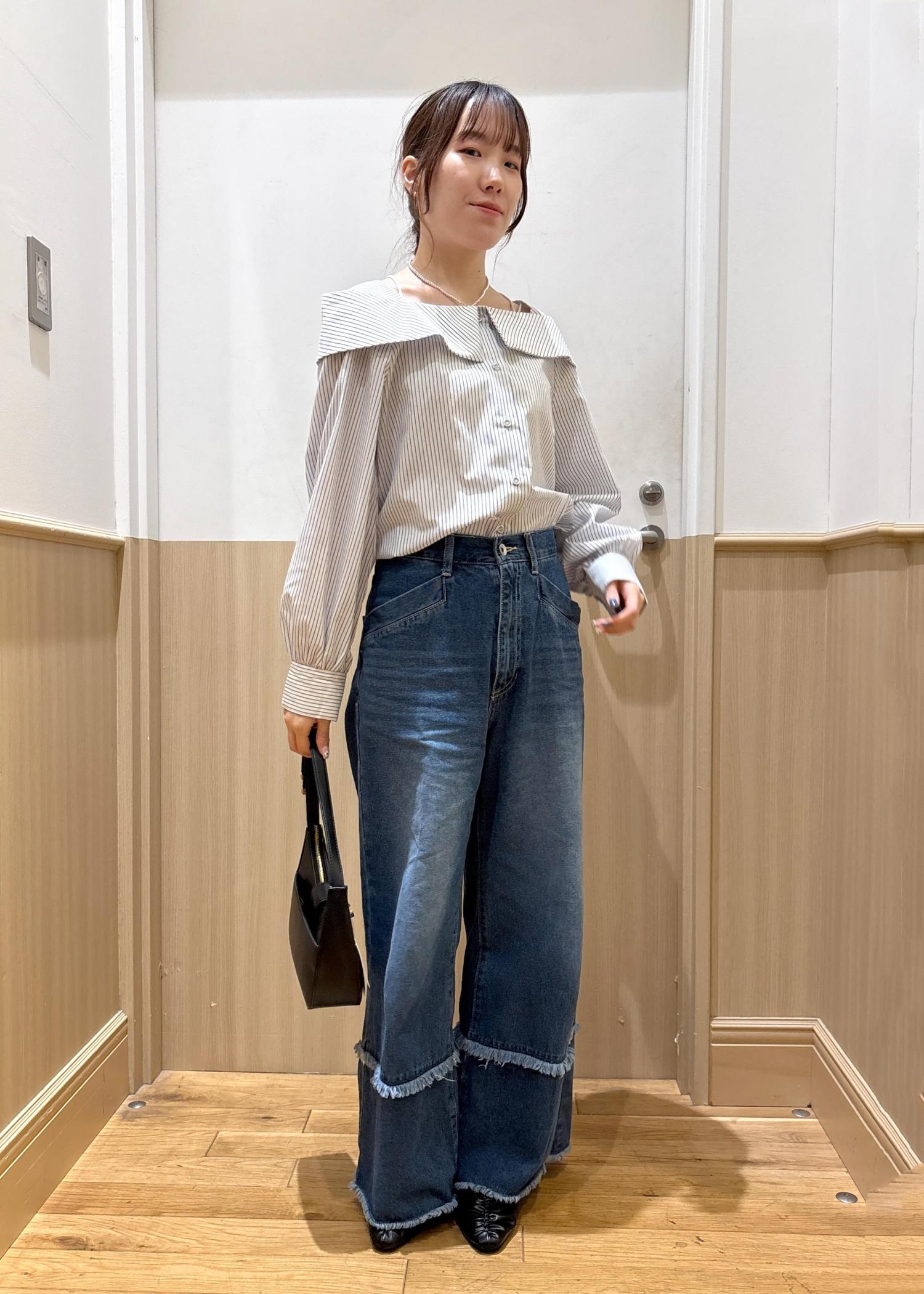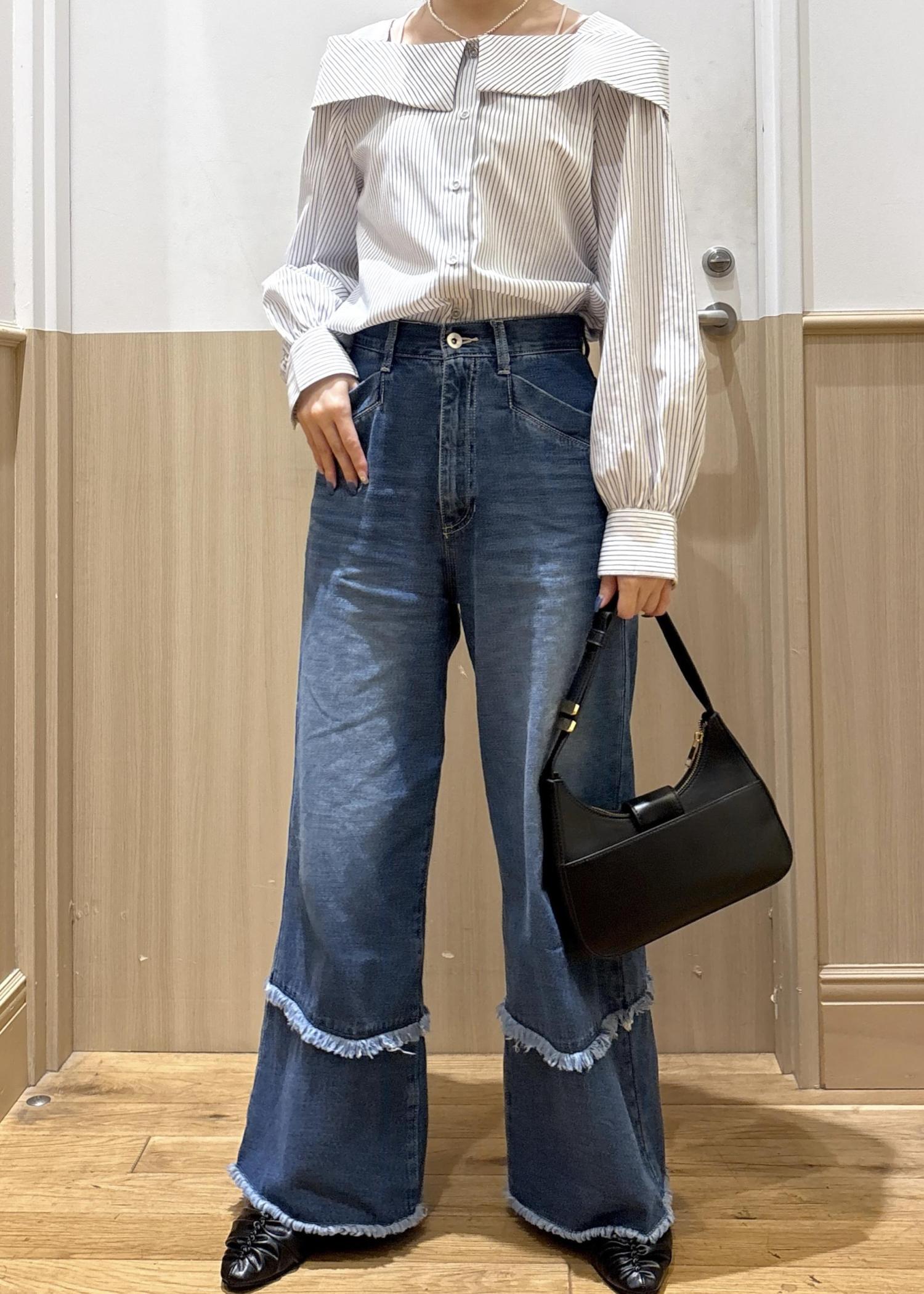 VISフリンジフレアデニムブルー系 / S¥4,395レビューヒップ周り、太ももはぴたっとしていなくて、骨格ウェーブさんでもシルエット拾わず綺麗に着れます◎