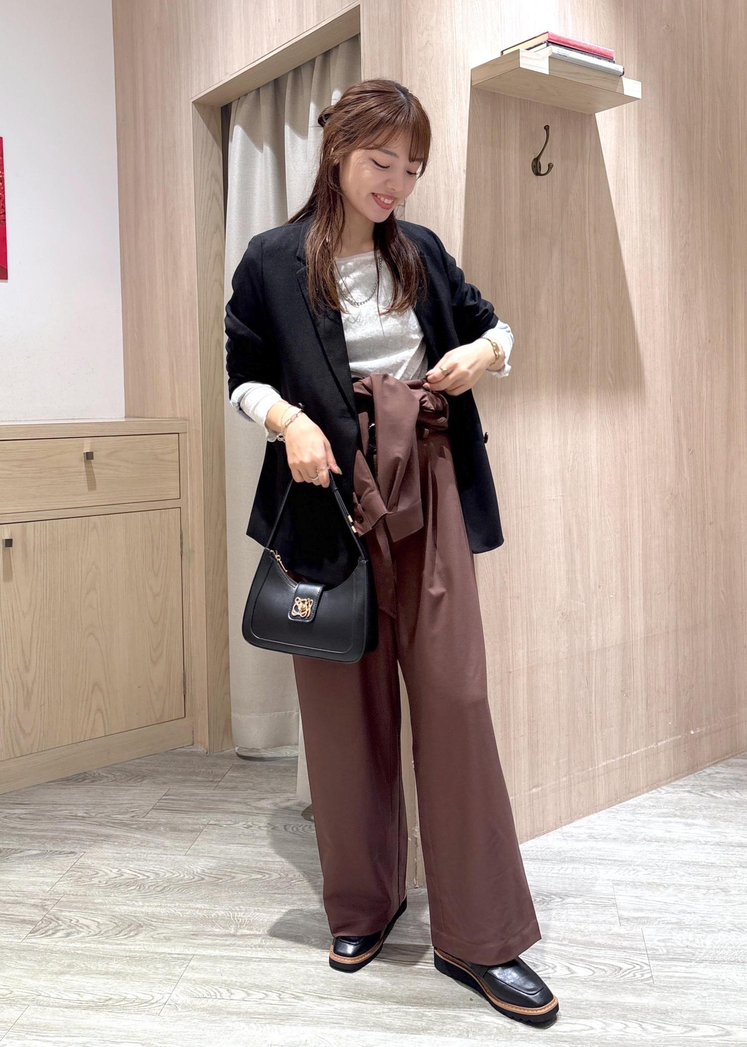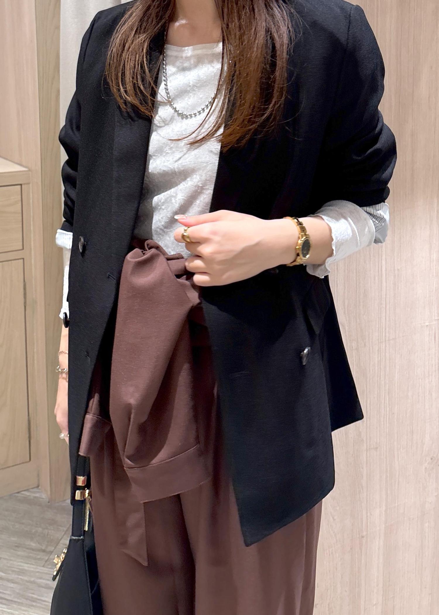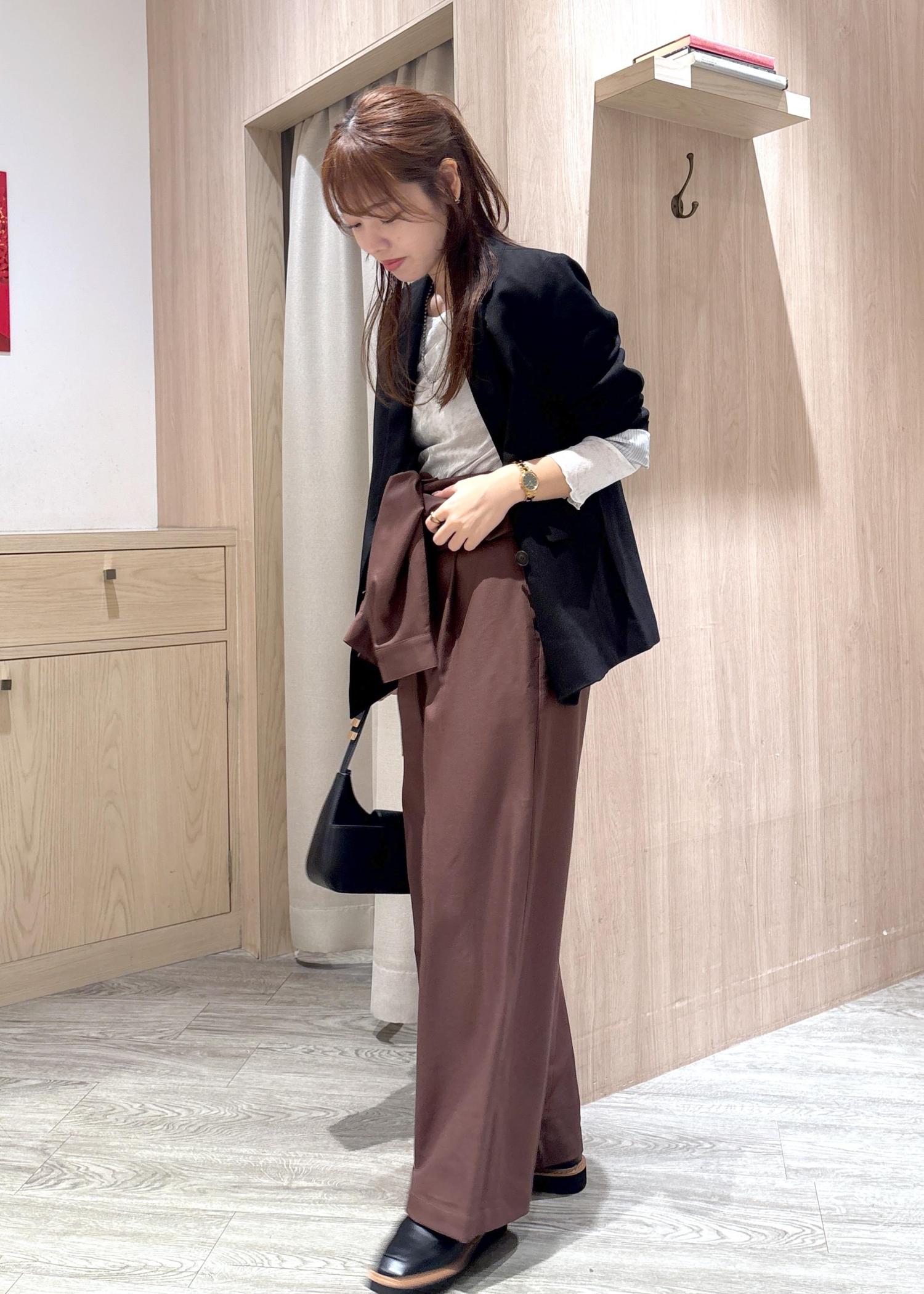 1枚でカッコよくて決まるので楽ですが、ボディの部分を腰巻きにすることでこなれ感がだせます。