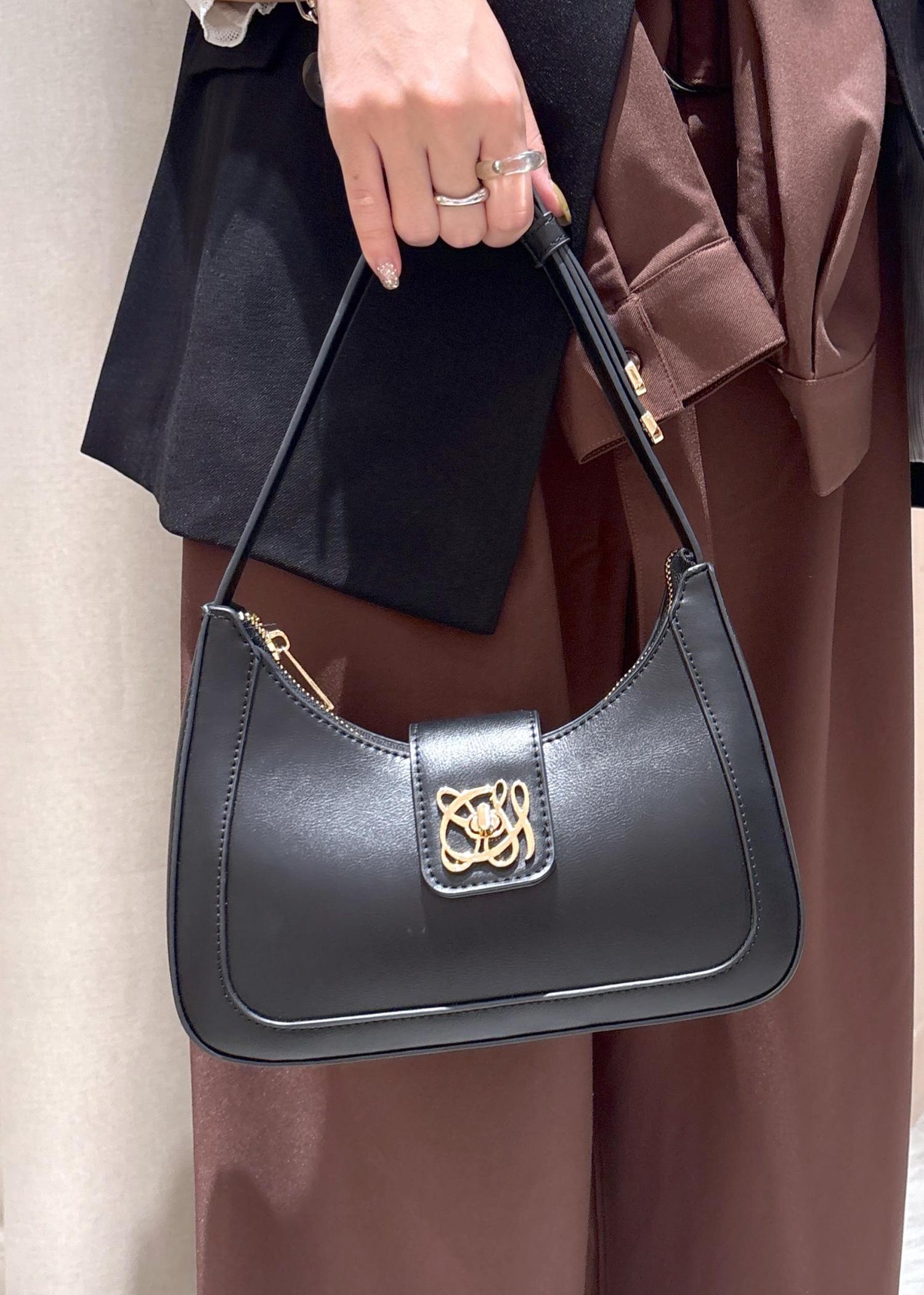 VIS【新色追加】【180℃美人見え】ハンドルリボンワンショルダーバッグブラック / F¥5,929レビューケータイと財布が余裕で入るサイズ感です!