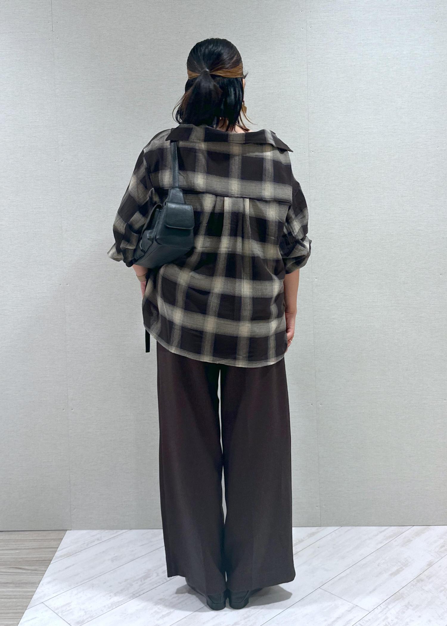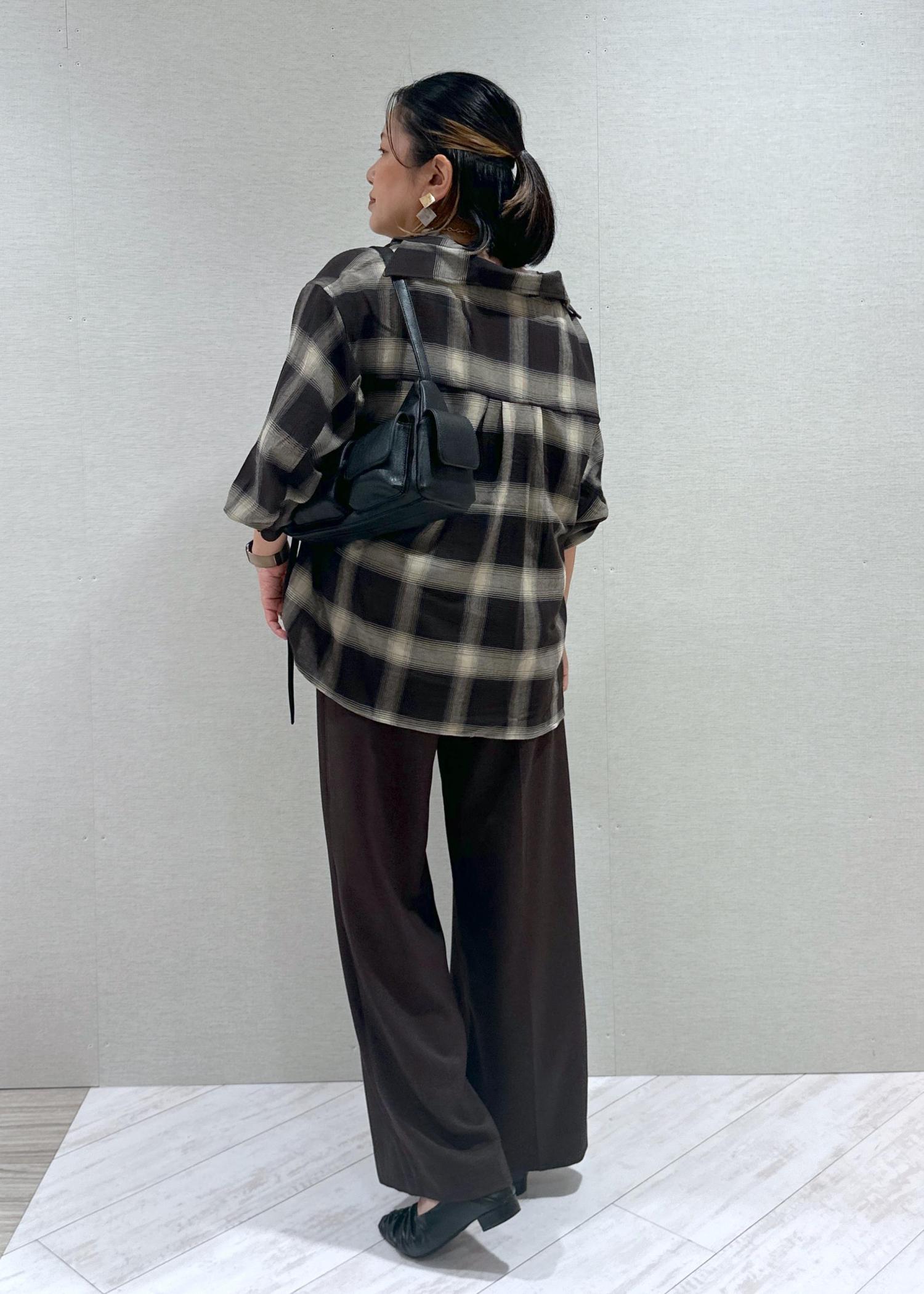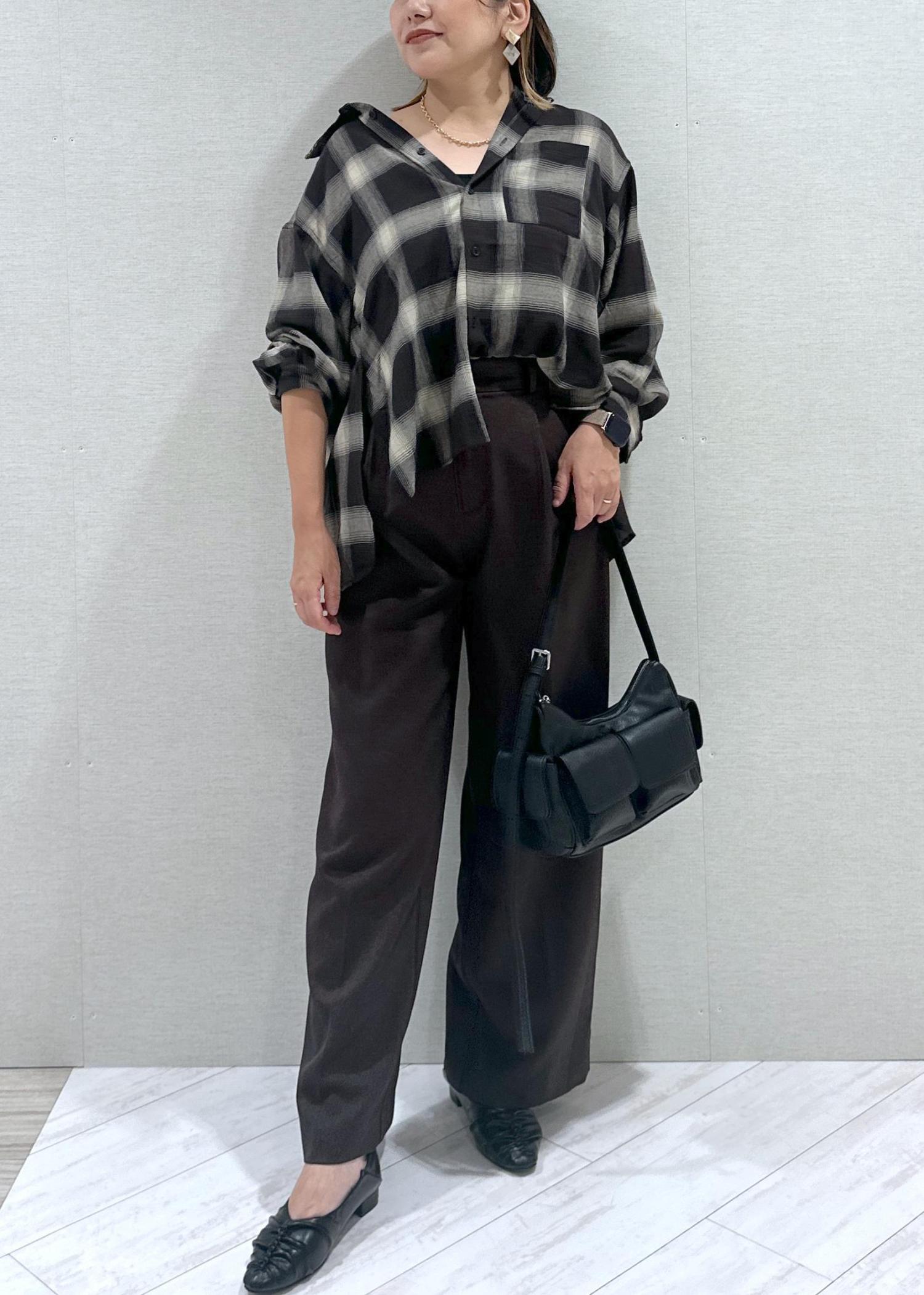 なかなか着回しに悩むチェックシャツもシンプルなワイドパンツで、大人なスタイリングに…♪