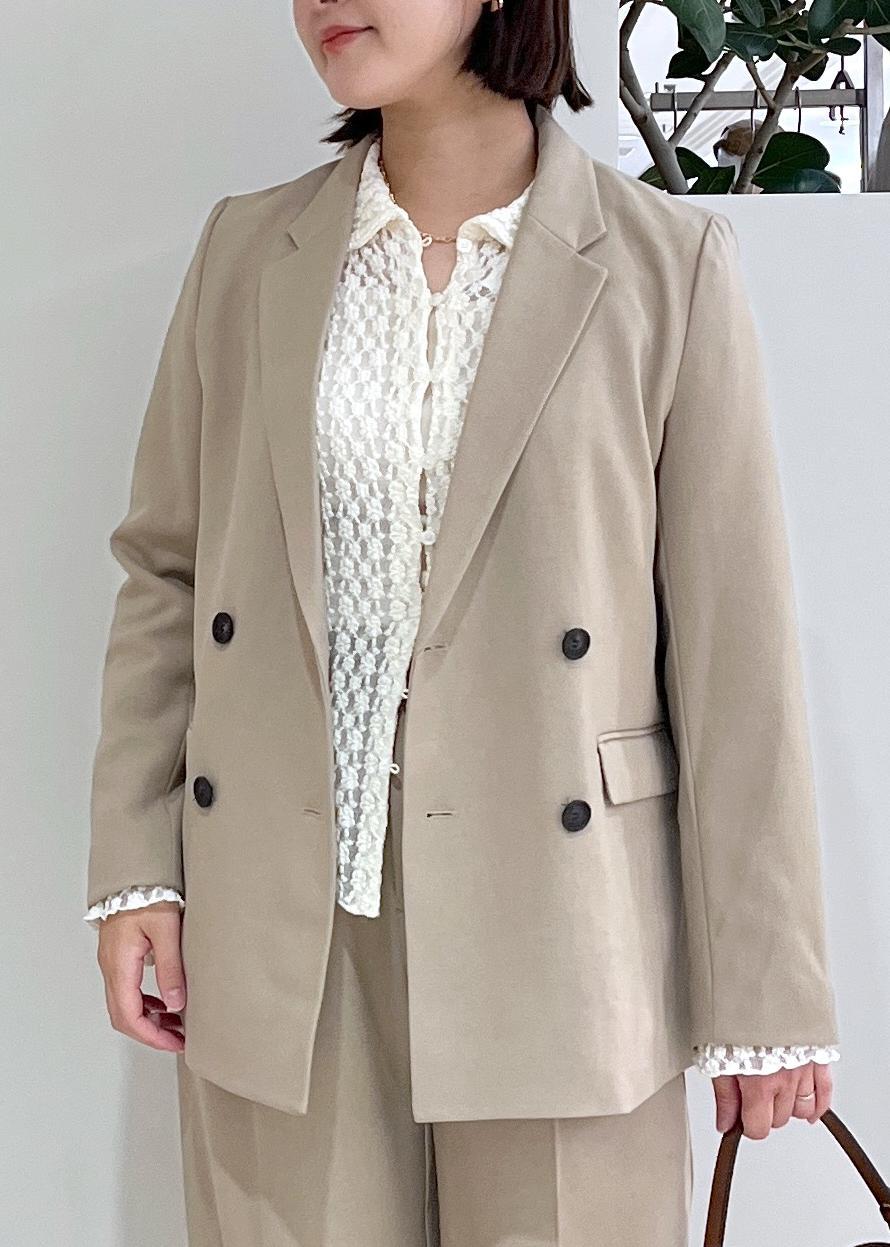 ダブルボタンになっていてカジュアルからきちんしたオフィスニーズにもぴったりです!